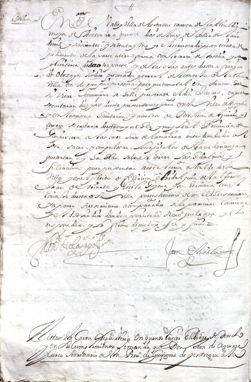 Hidalguias. Hidalguía de Aljerez Juan de Iriarte y Lizola, descendiente de la casa solar de Lizola - goyena de Asteasu.