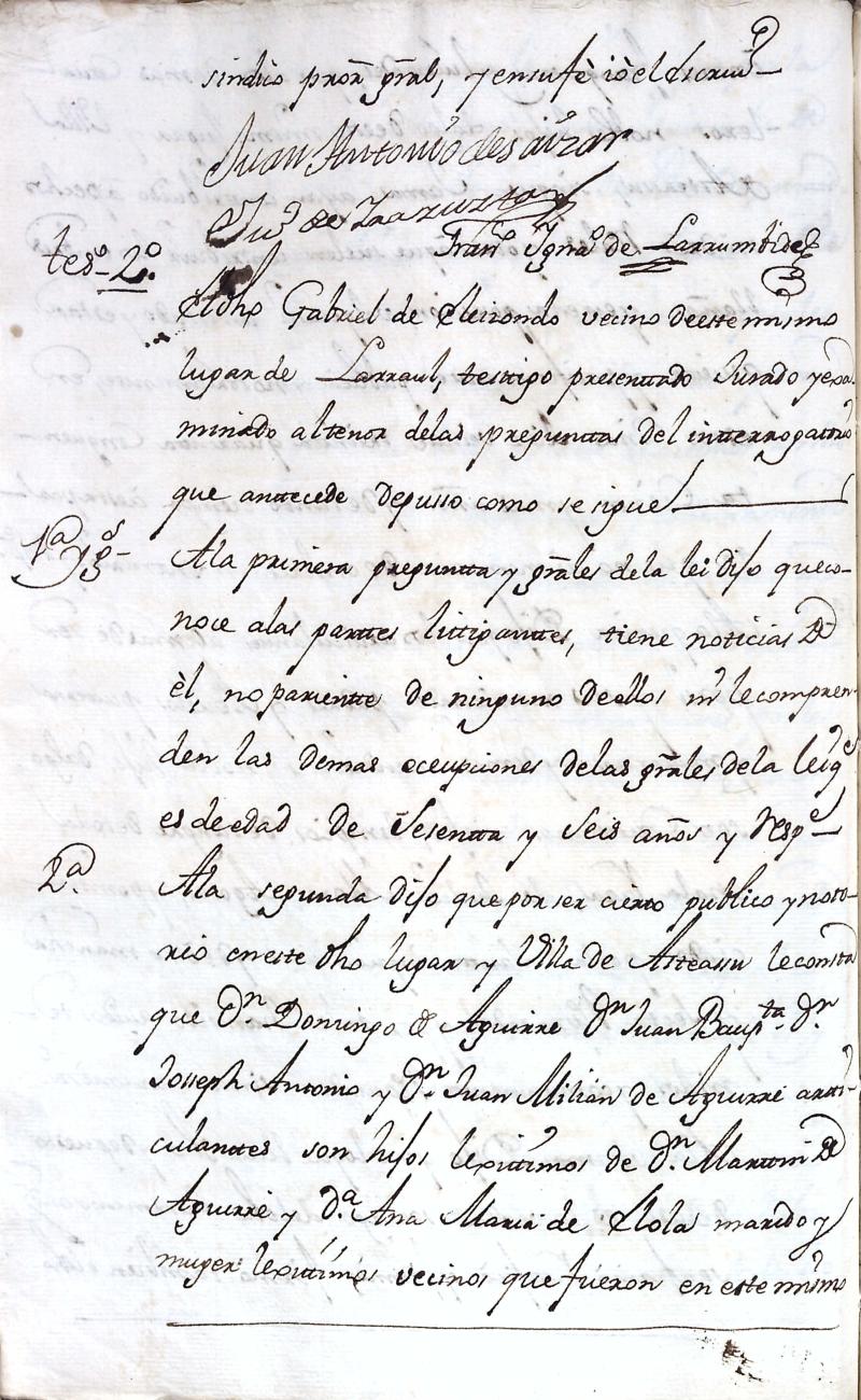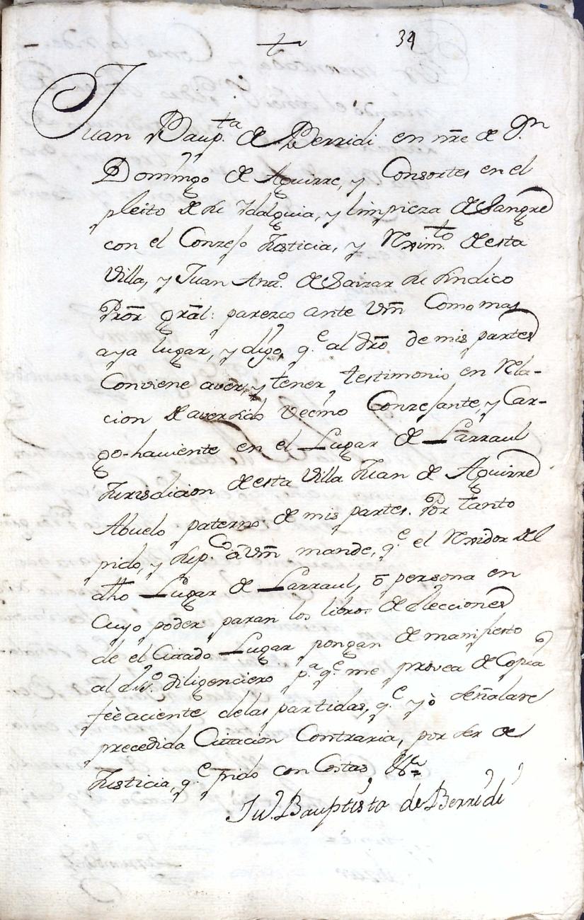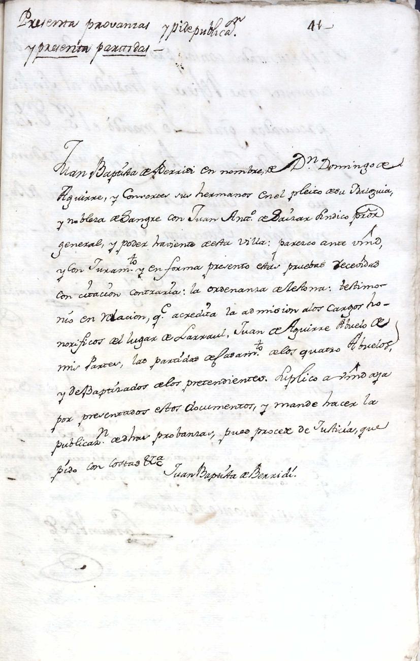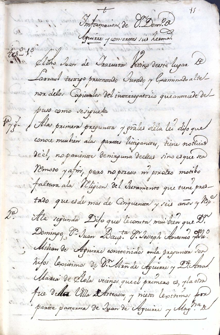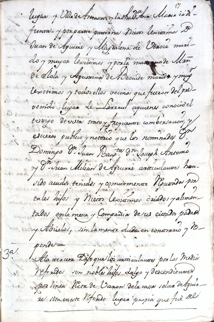 Filiación de Domingo de Aguirre y Elola, descendiente de la casa solar de Aguirre de Larraul.