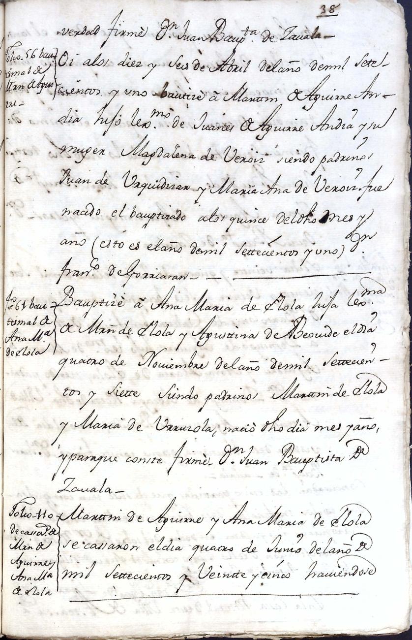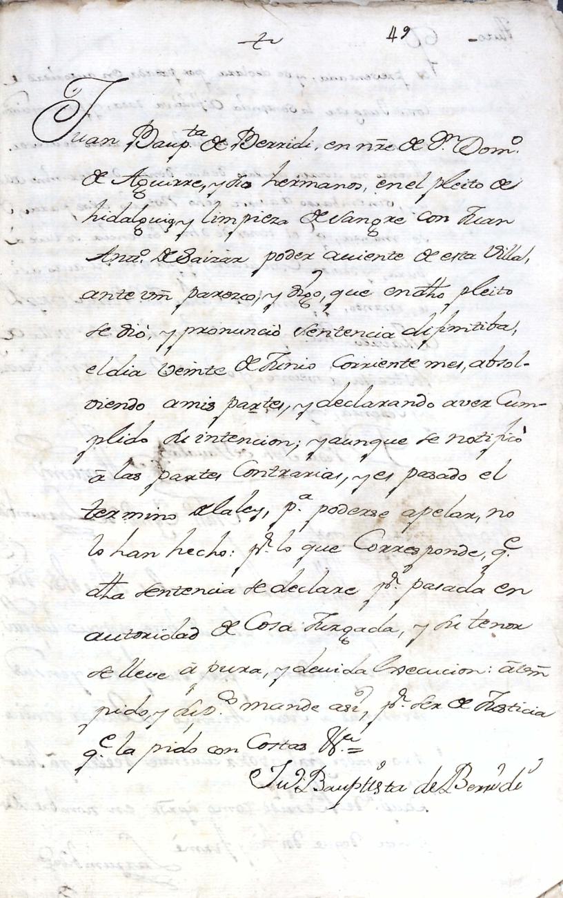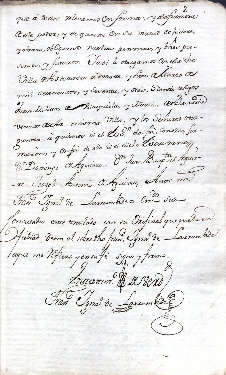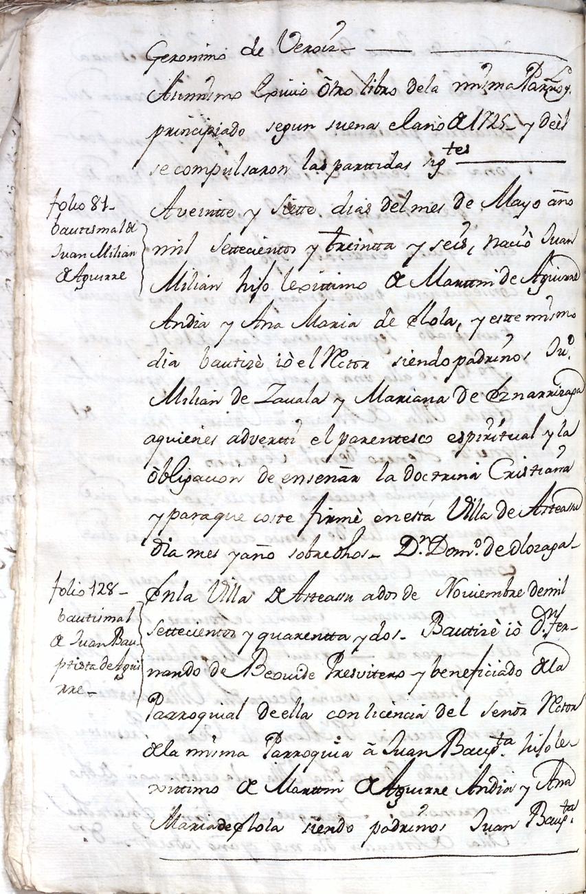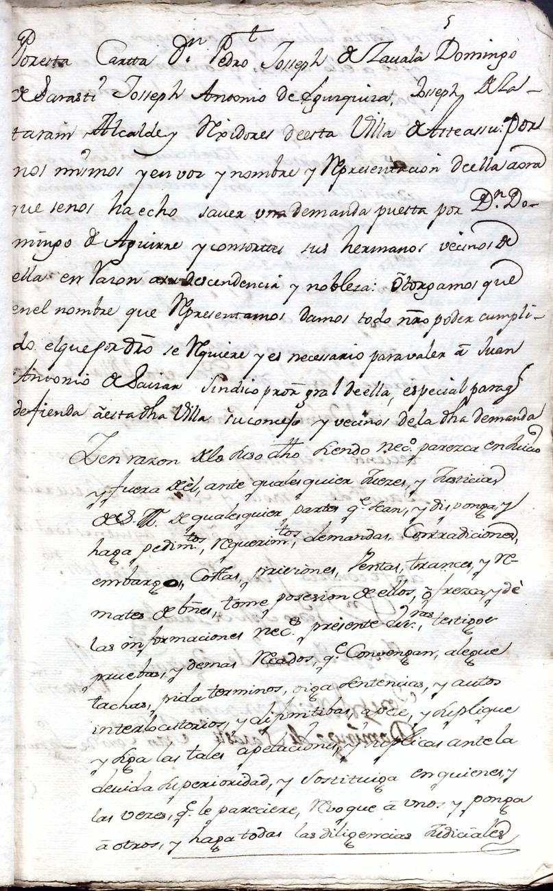 Filiación de Domingo de Aguirre y Elola, descendiente de la casa solar de Aguirre de Larraul.
