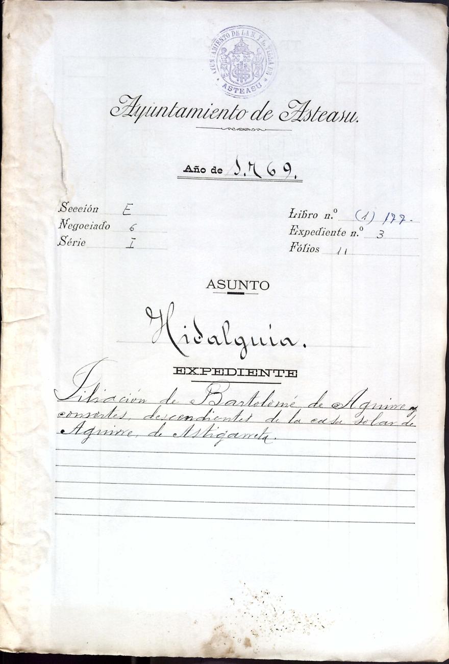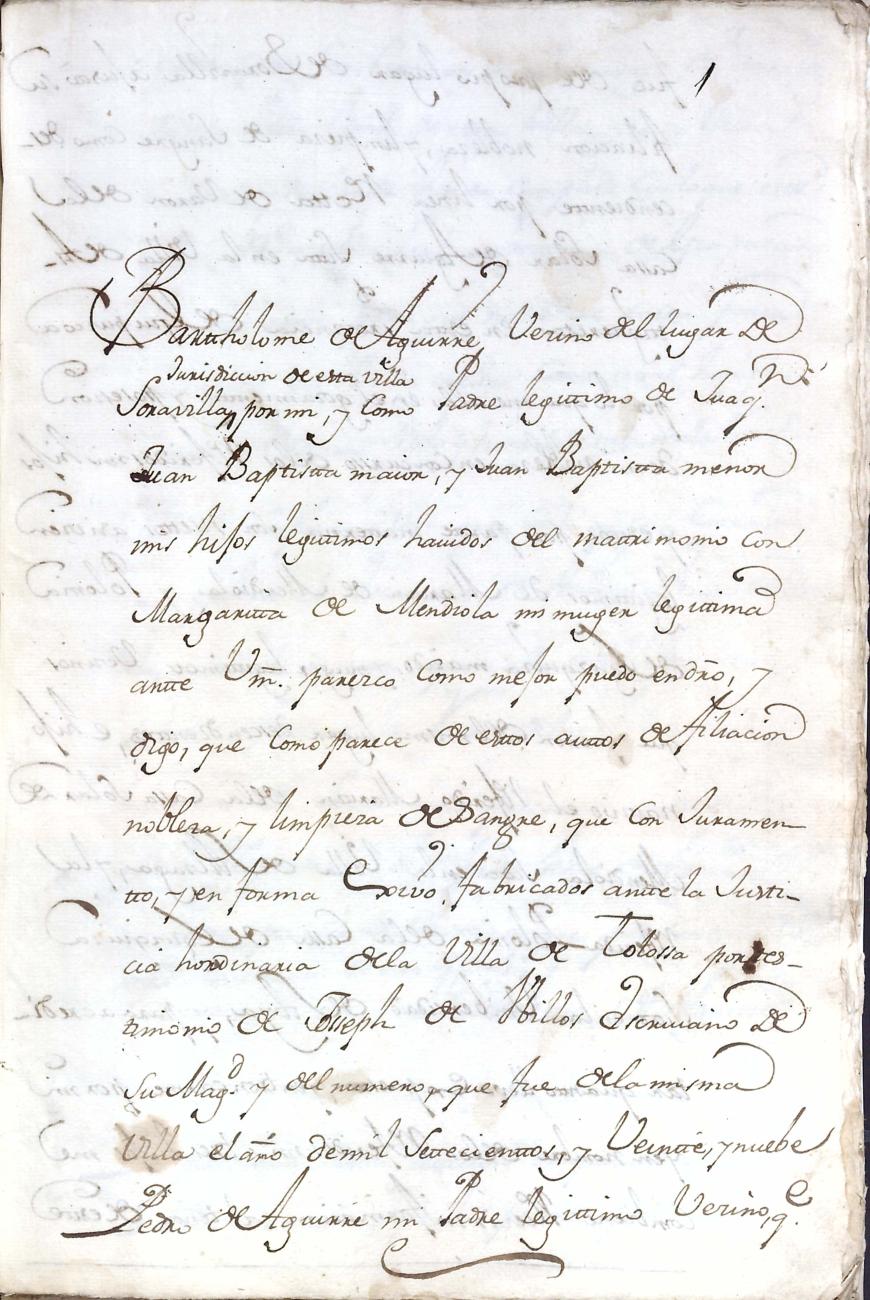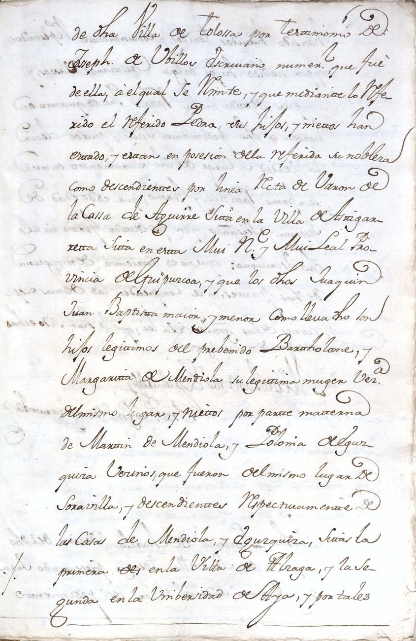 Filiación de Bartolome de Aguirre y consortes, descendientes de la casa solar de Aguirre de Astigarreta