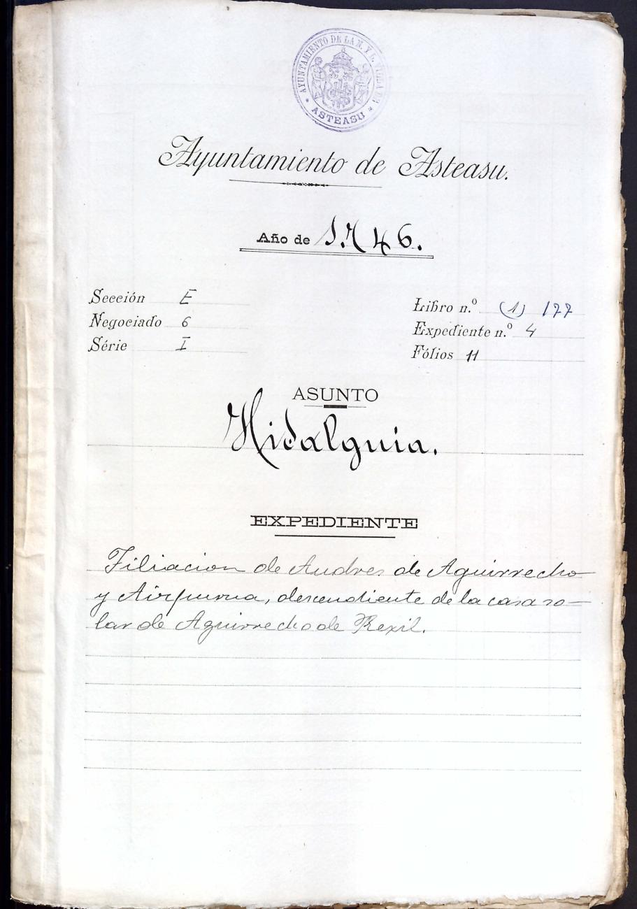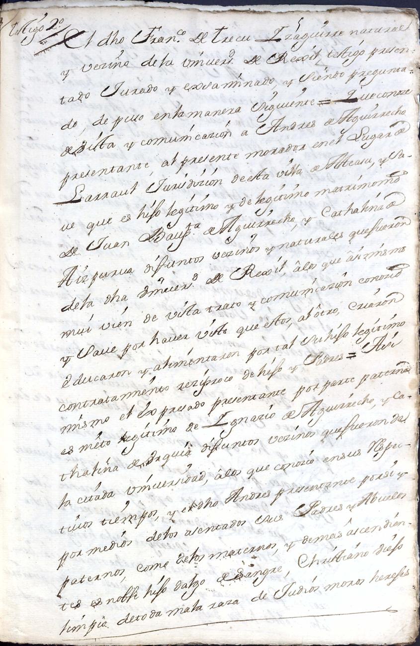 Filiación de Andres de Aguirrecho y Aizpurua, descendiente de la casa solar de Aguirre de Regil.