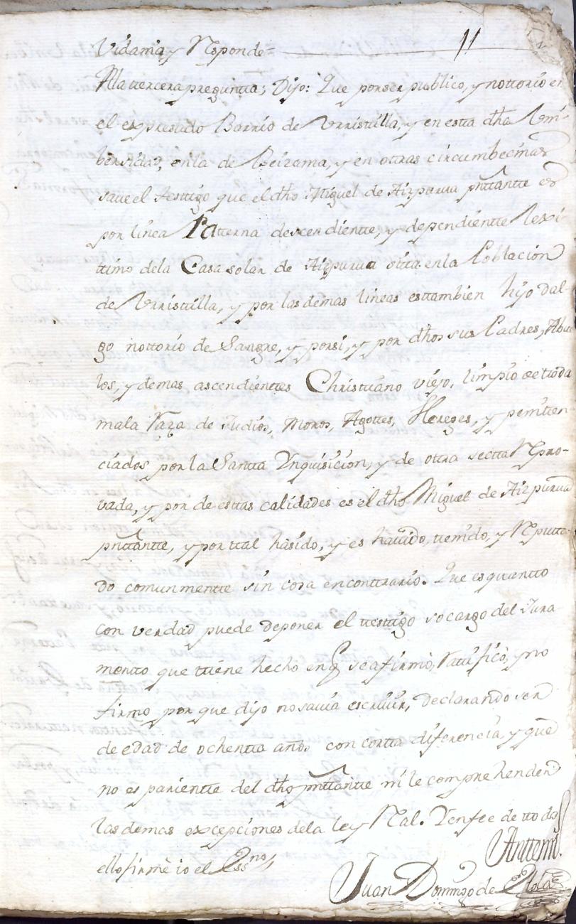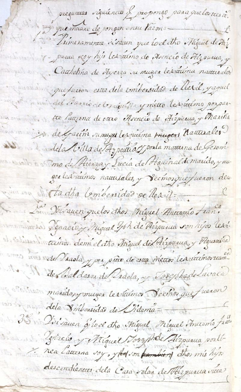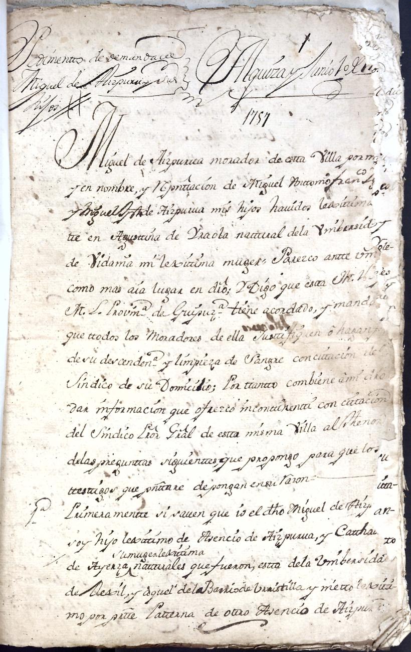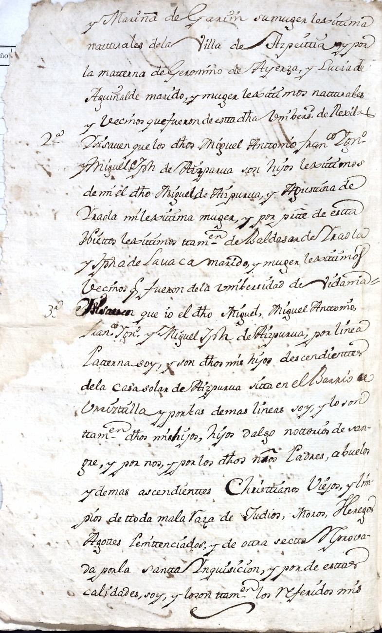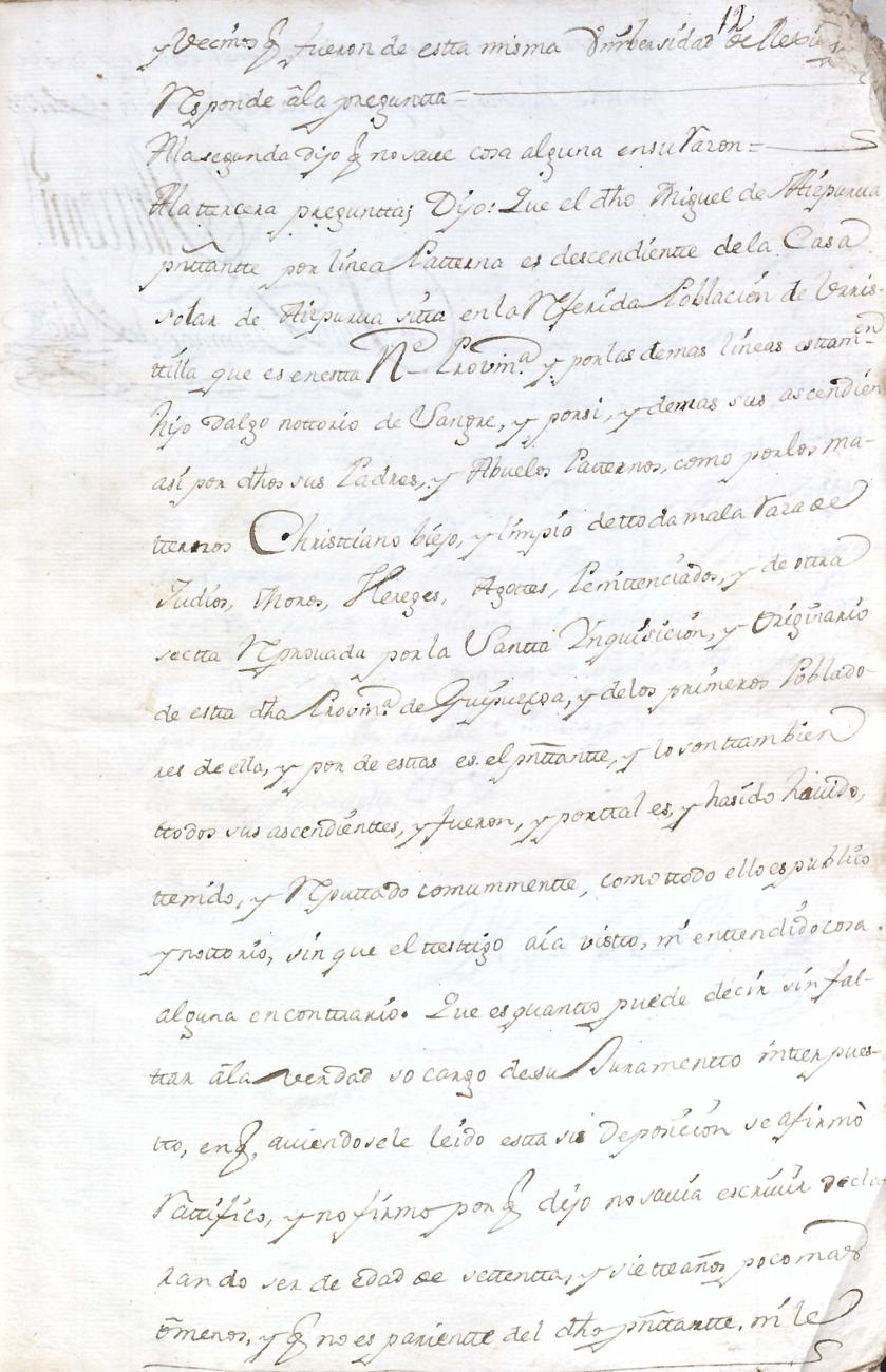 Hidalguias. Limpieza de sangre de Miguel de Aizpurua y Ayerza, descendiente de la casa solar de Aizpurua de Urrestilla.