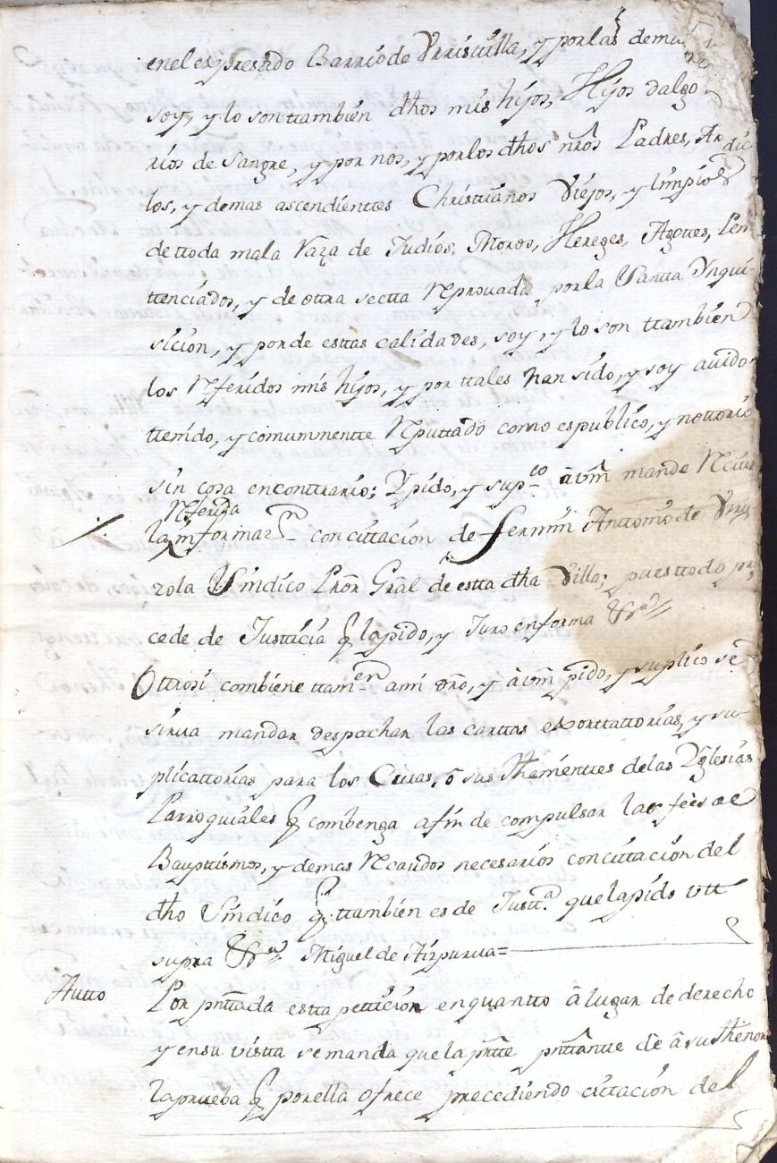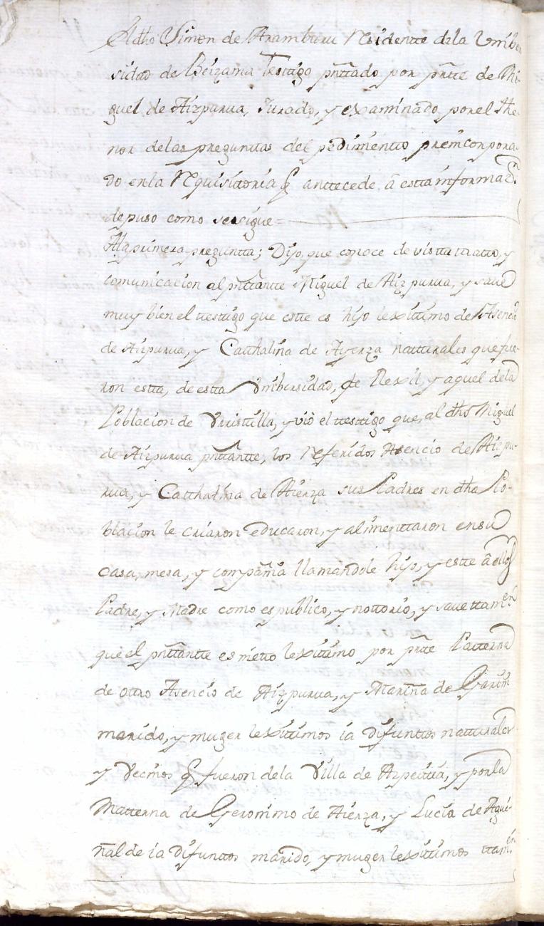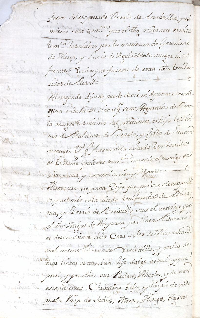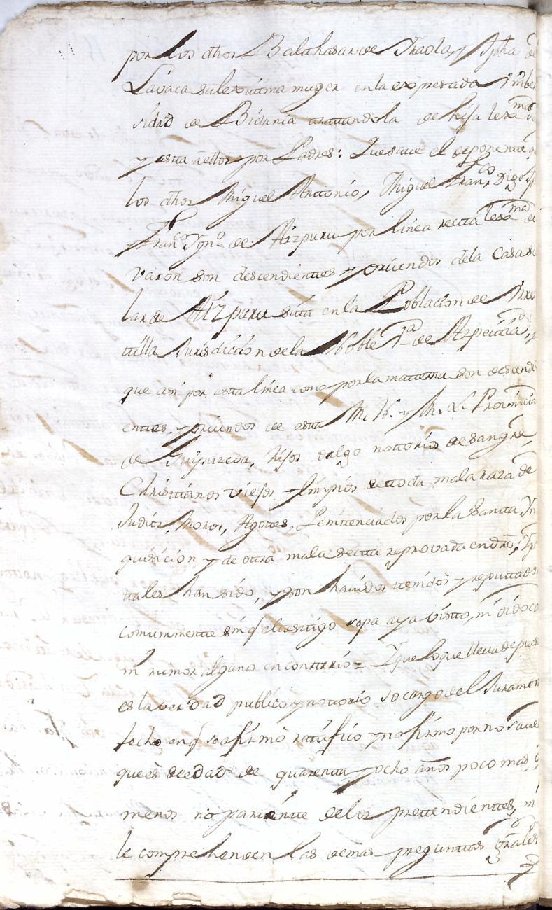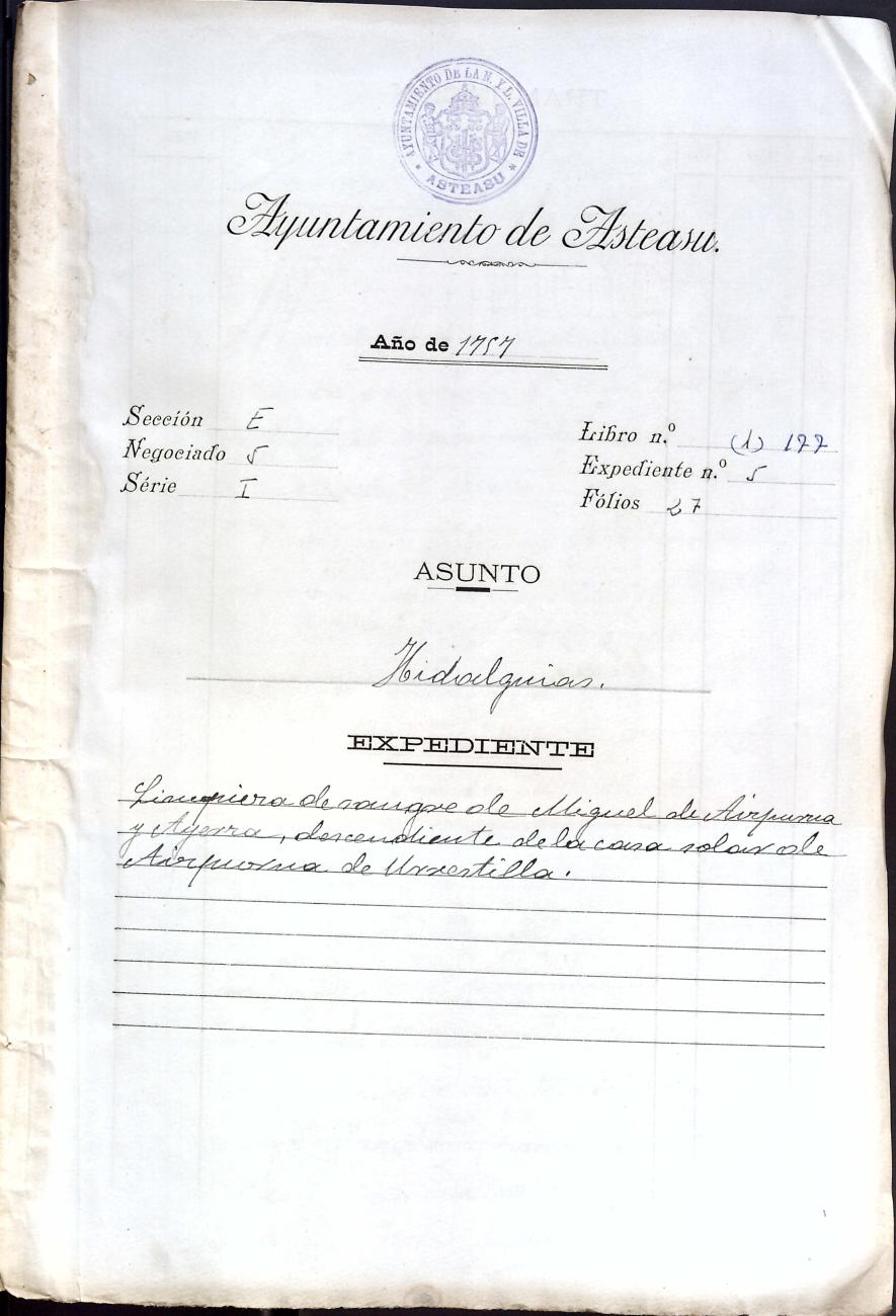 Hidalguias. Limpieza de sangre de Miguel de Aizpurua y Ayerza, descendiente de la casa solar de Aizpurua de Urrestilla.