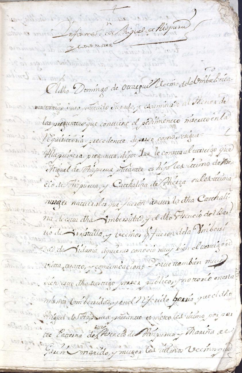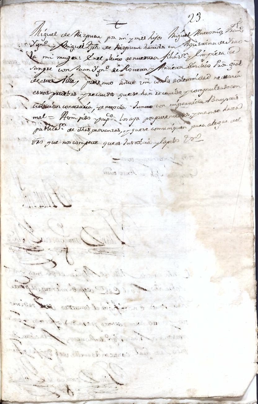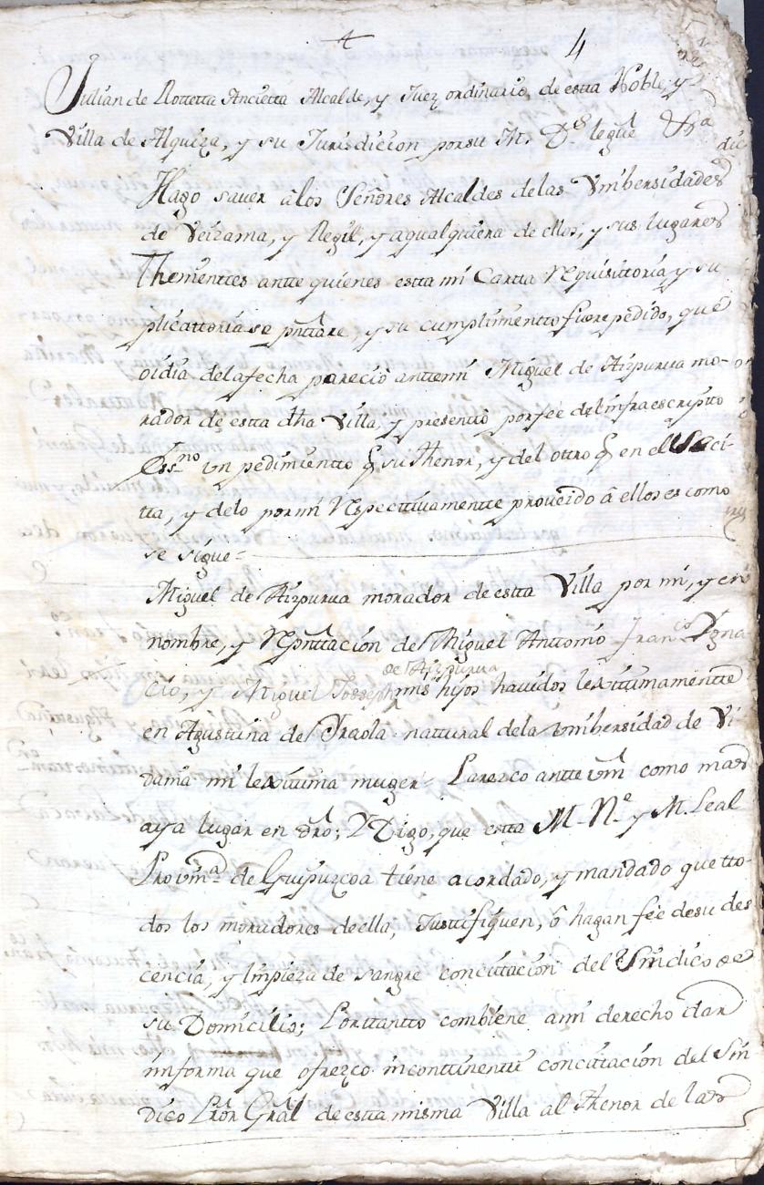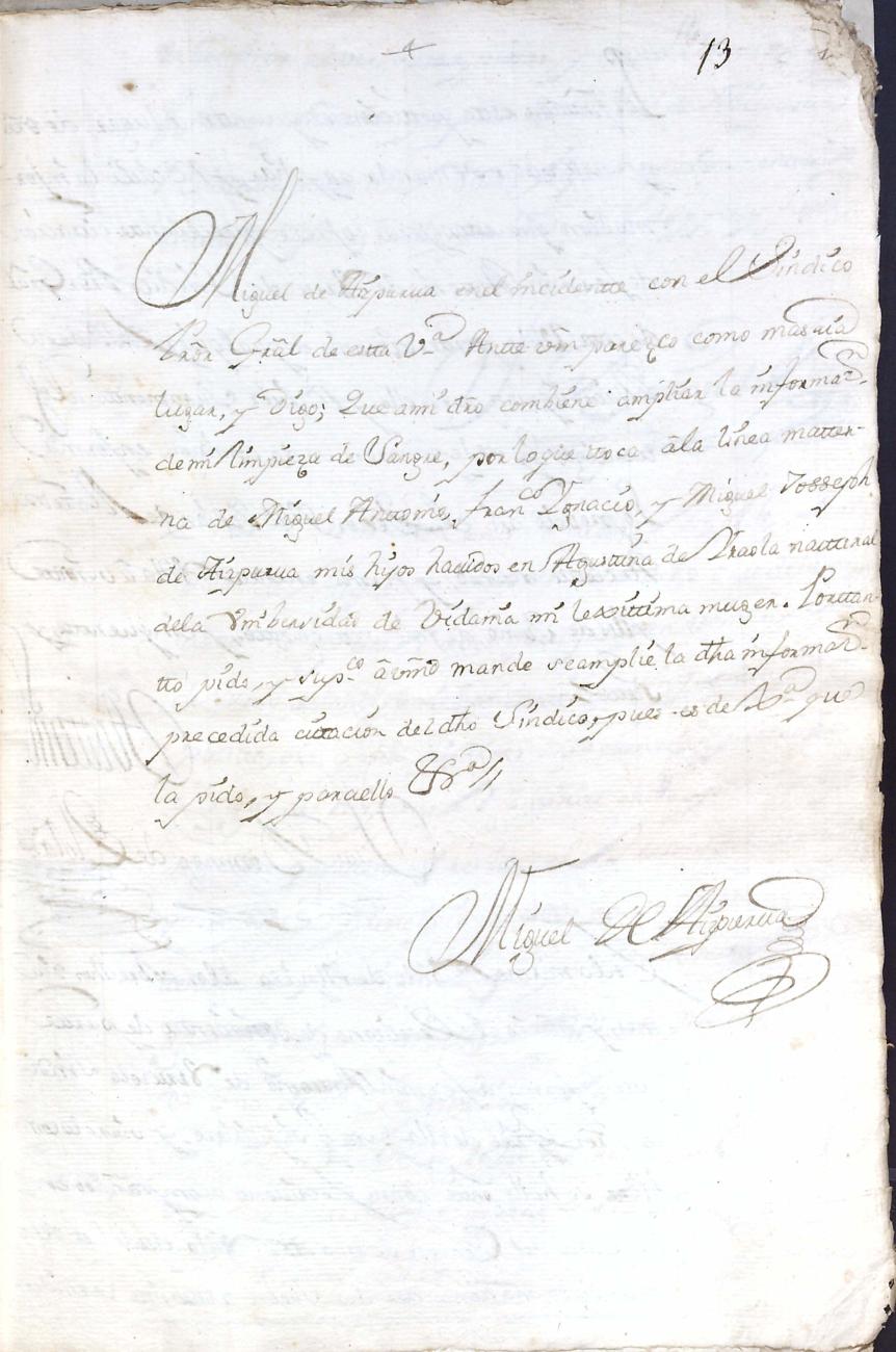 Hidalguias. Limpieza de sangre de Miguel de Aizpurua y Ayerza, descendiente de la casa solar de Aizpurua de Urrestilla.