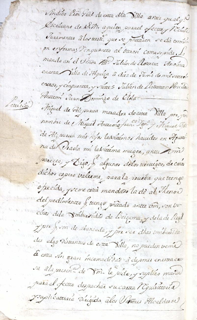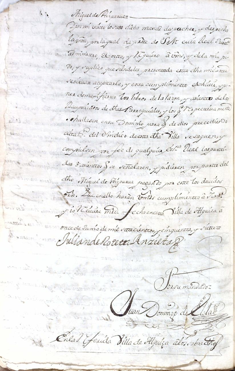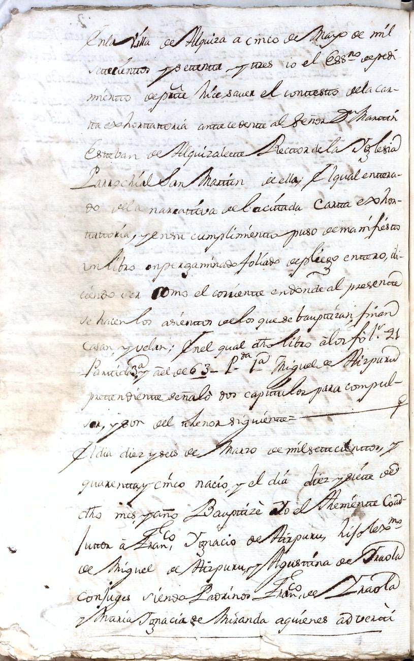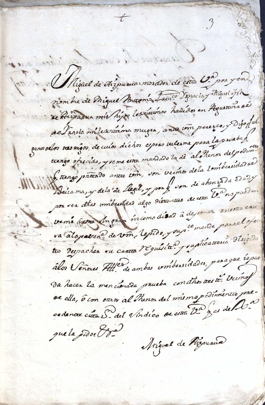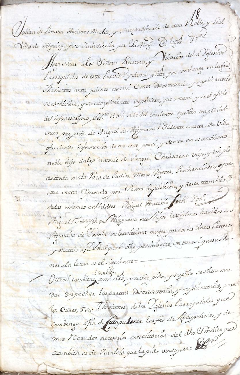 Hidalguias. Limpieza de sangre de Miguel de Aizpurua y Ayerza, descendiente de la casa solar de Aizpurua de Urrestilla.