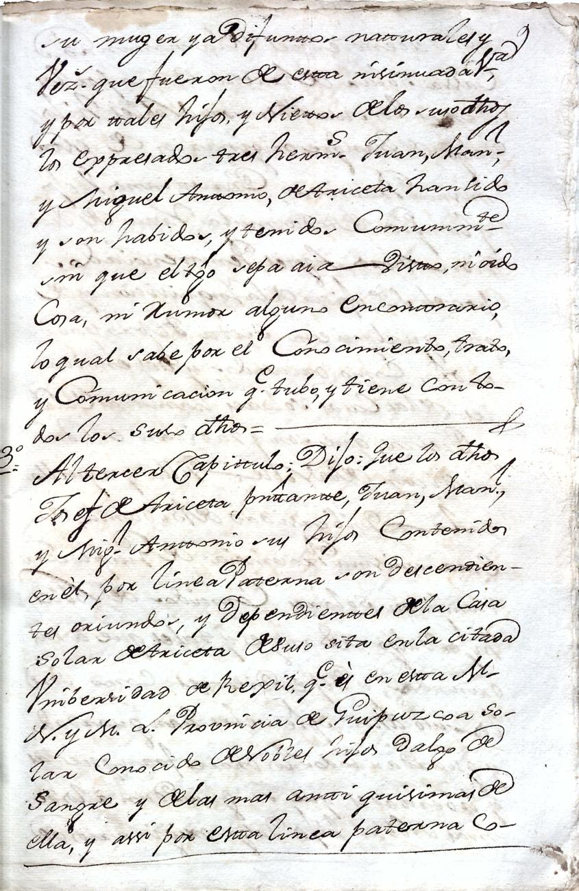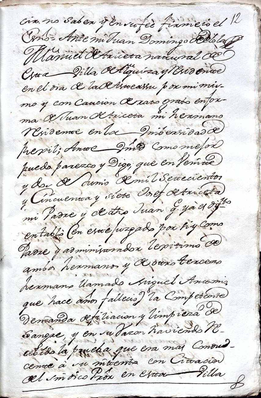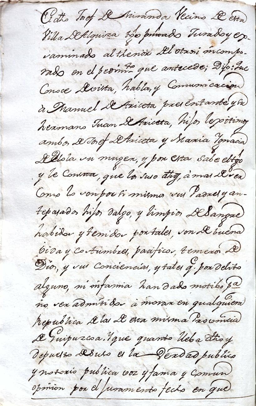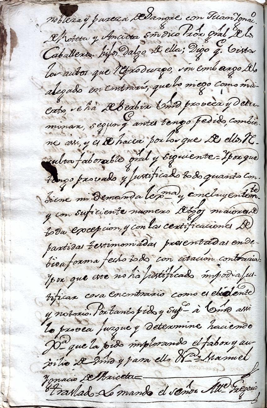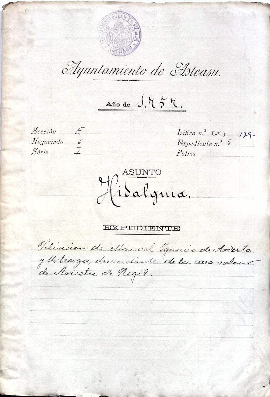 Hidalguias. Filiación de Manuel Ignacio de Arizeta y Urteaga, descendiente de la casa solar de Arizeta de Regil.