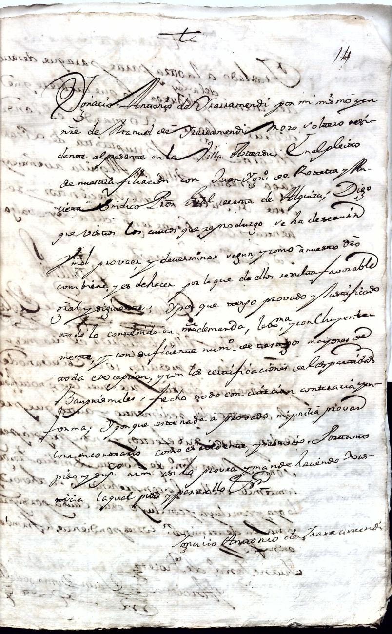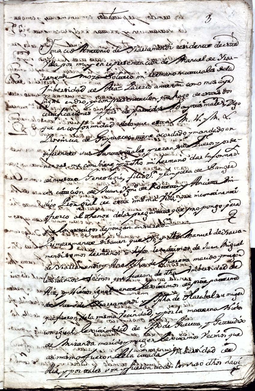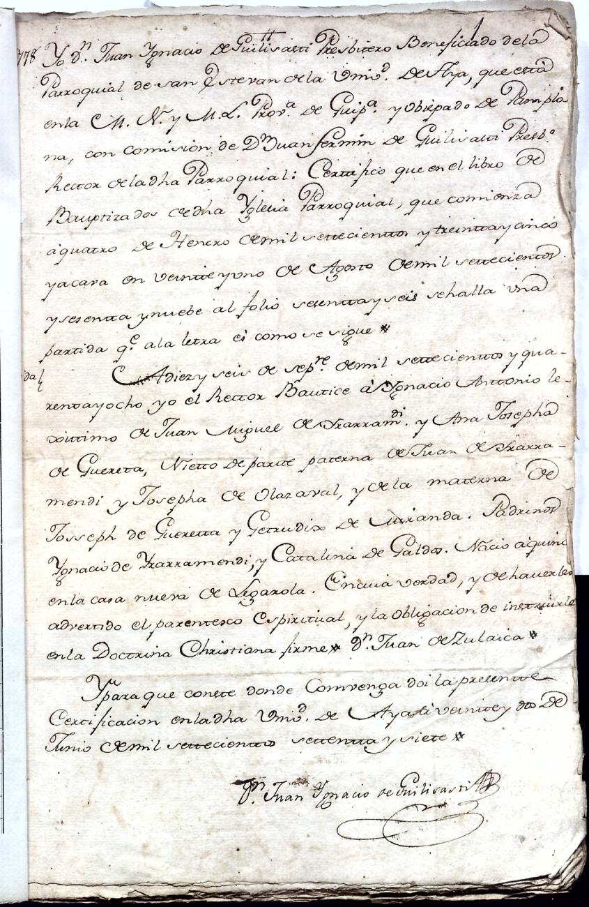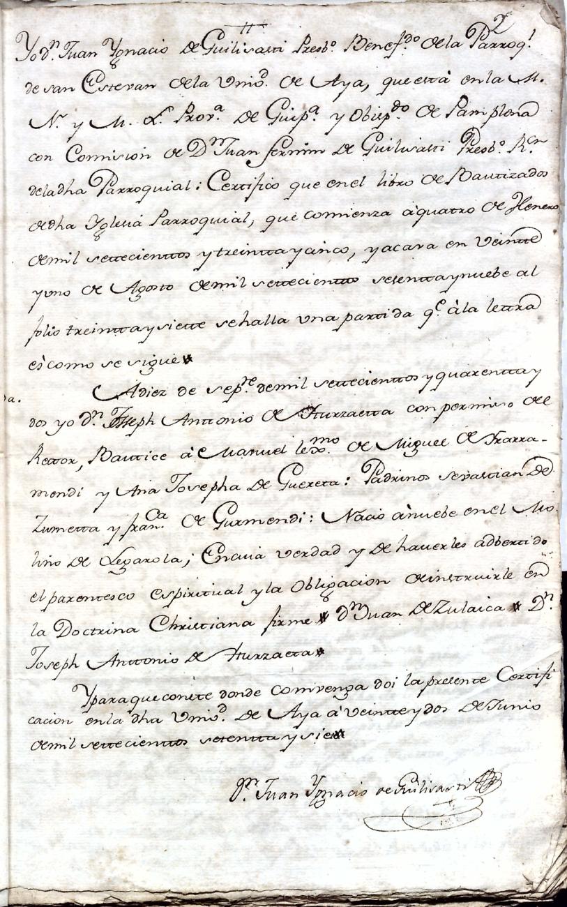 Hidalguias. Filiación de Ignacio Antonio de Irarramendi y Guereta y consortes, descendientes de la casa solar de Irarramendi de Aya.
