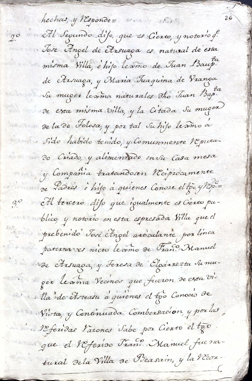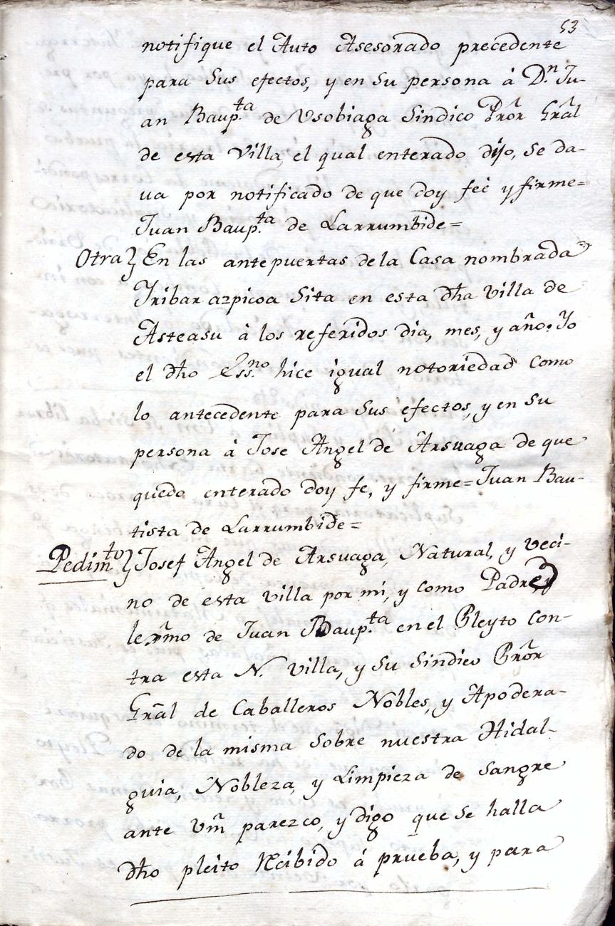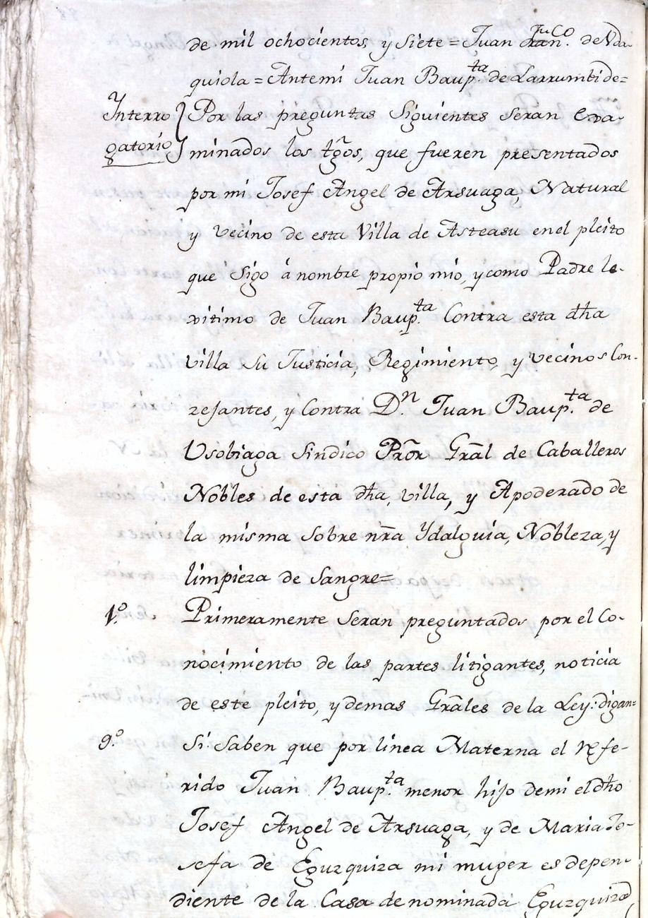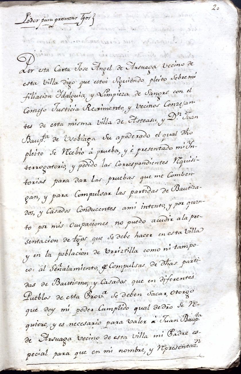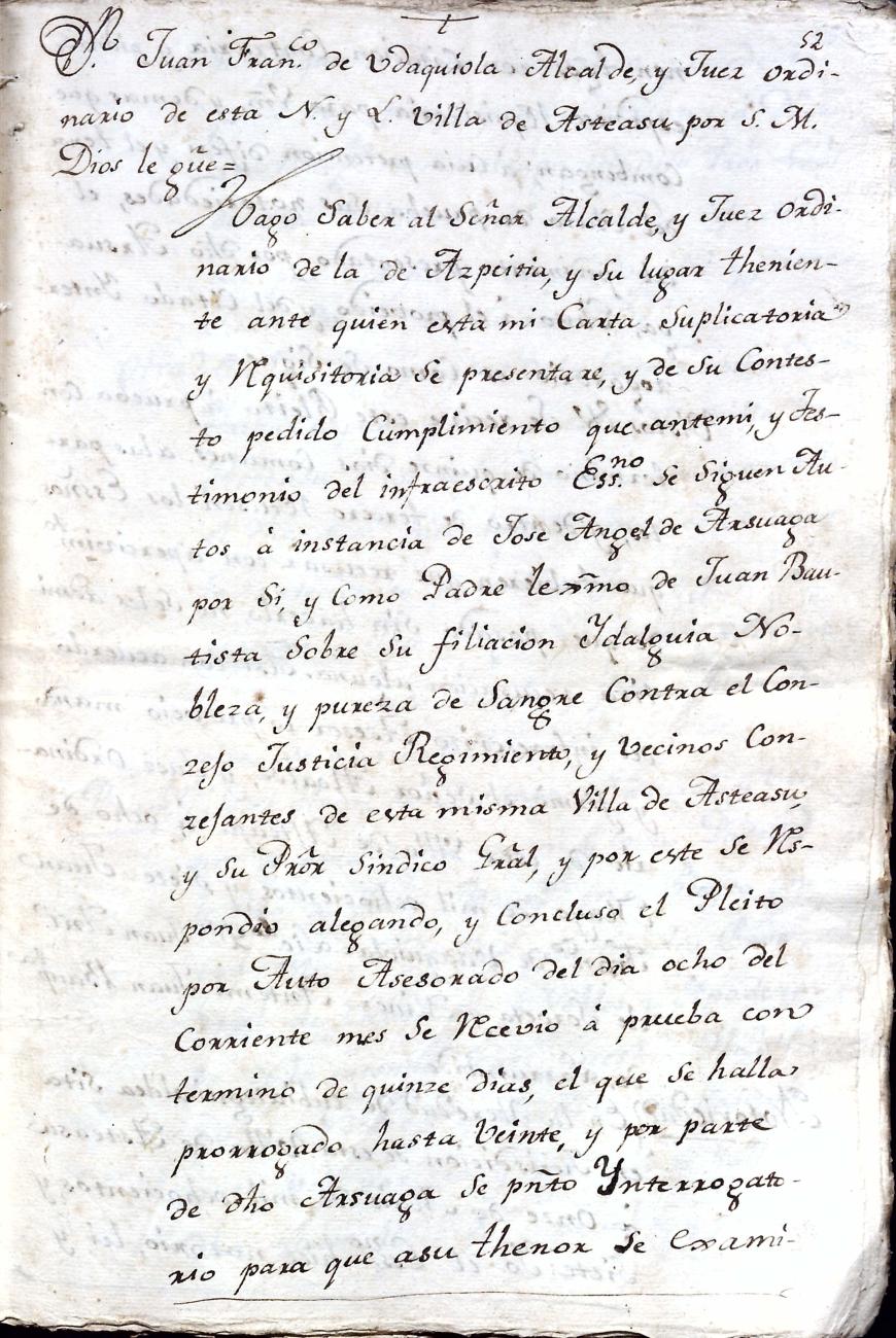 Hidalguias. Hidalguía de José Angel de Arsuaga, descendiente de la casa solar de Arsuaga de abajo de Urrestilla.