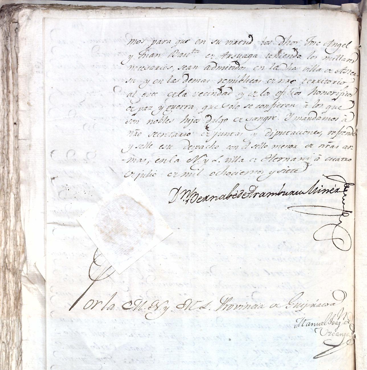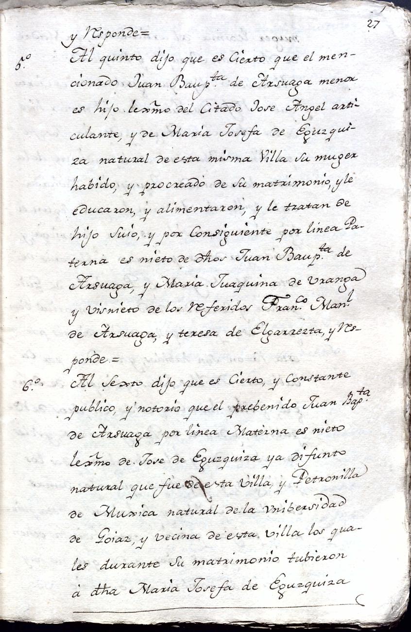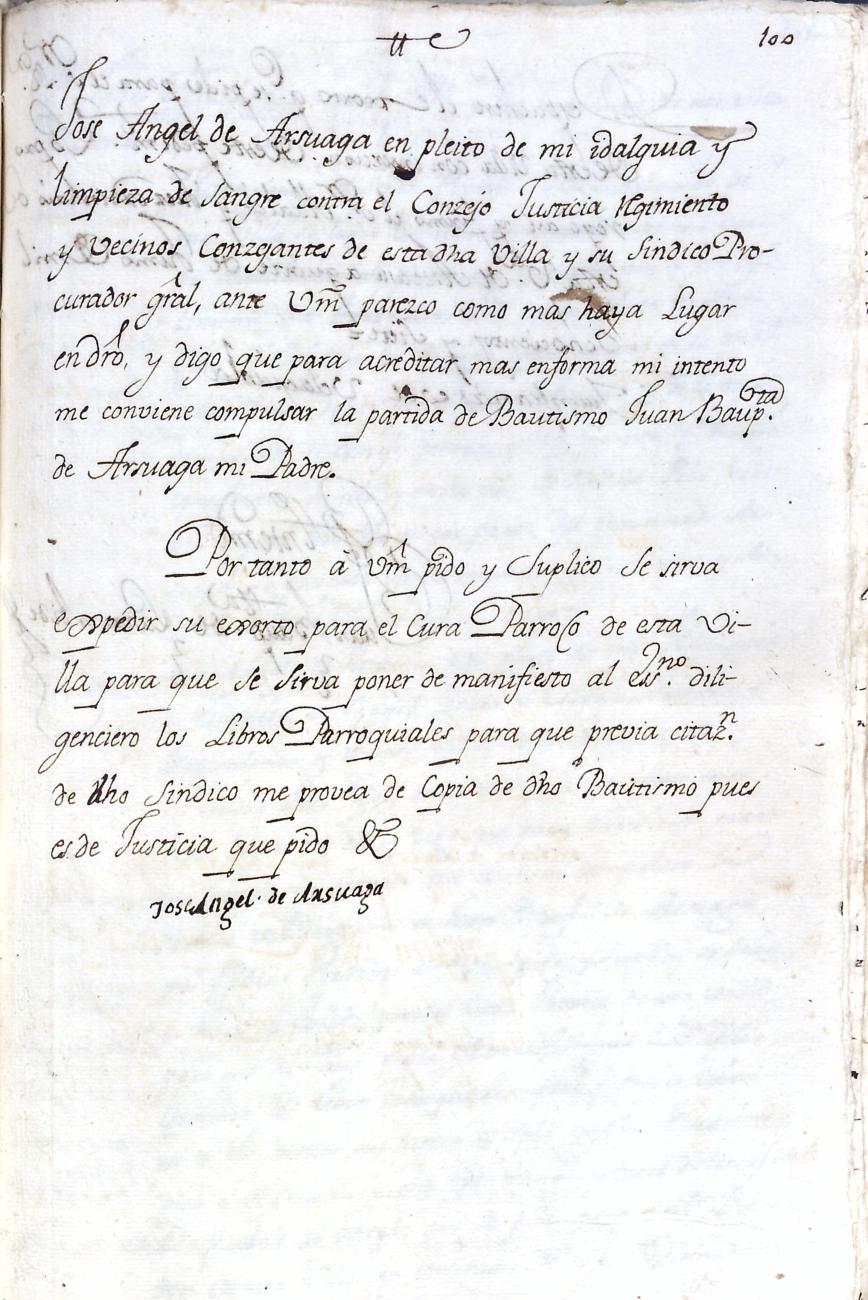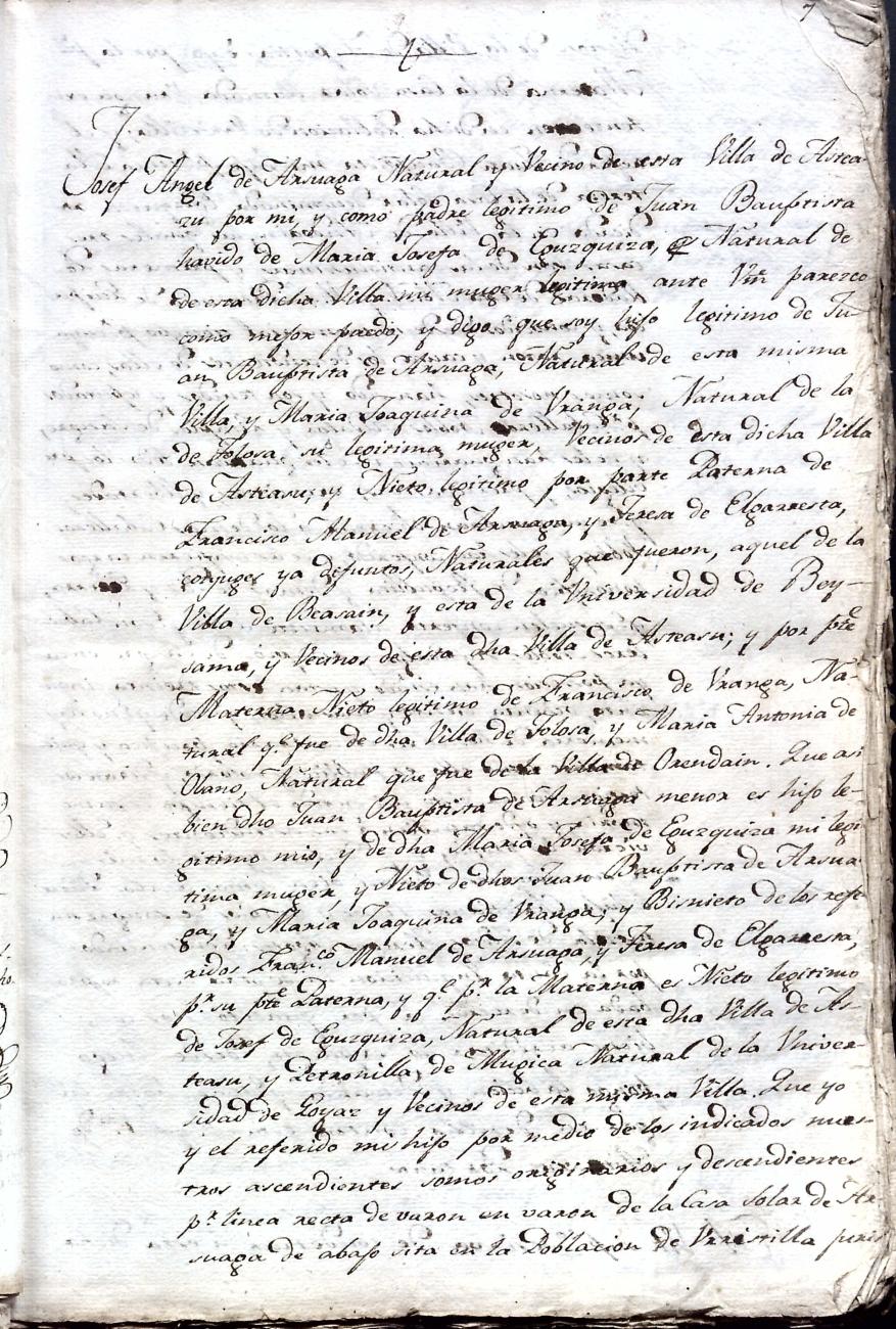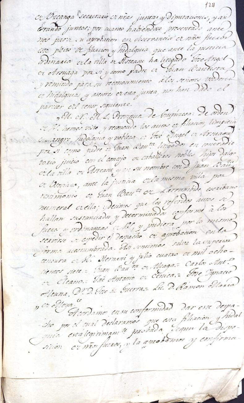 Hidalguias. Hidalguía de José Angel de Arsuaga, descendiente de la casa solar de Arsuaga de abajo de Urrestilla.
