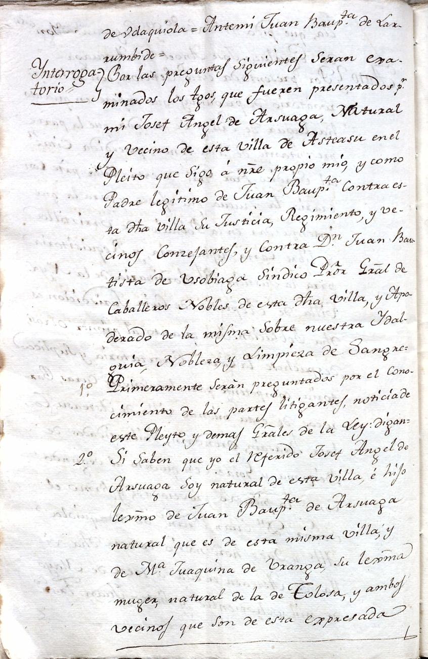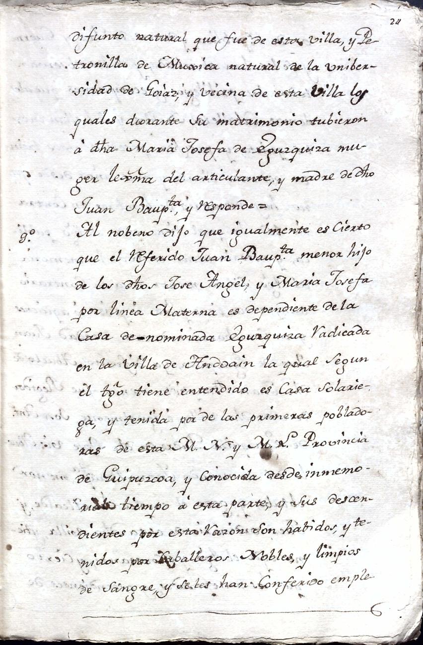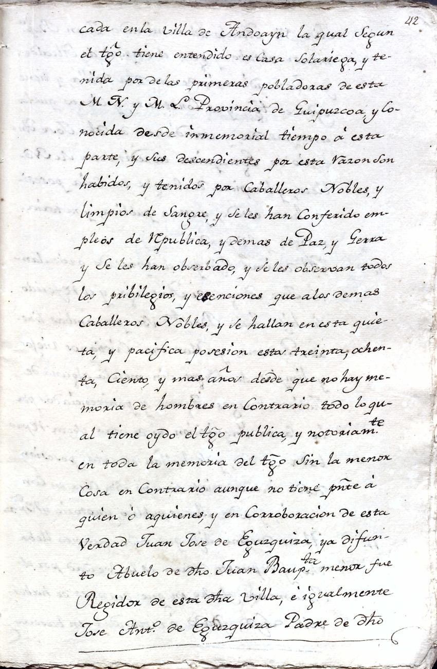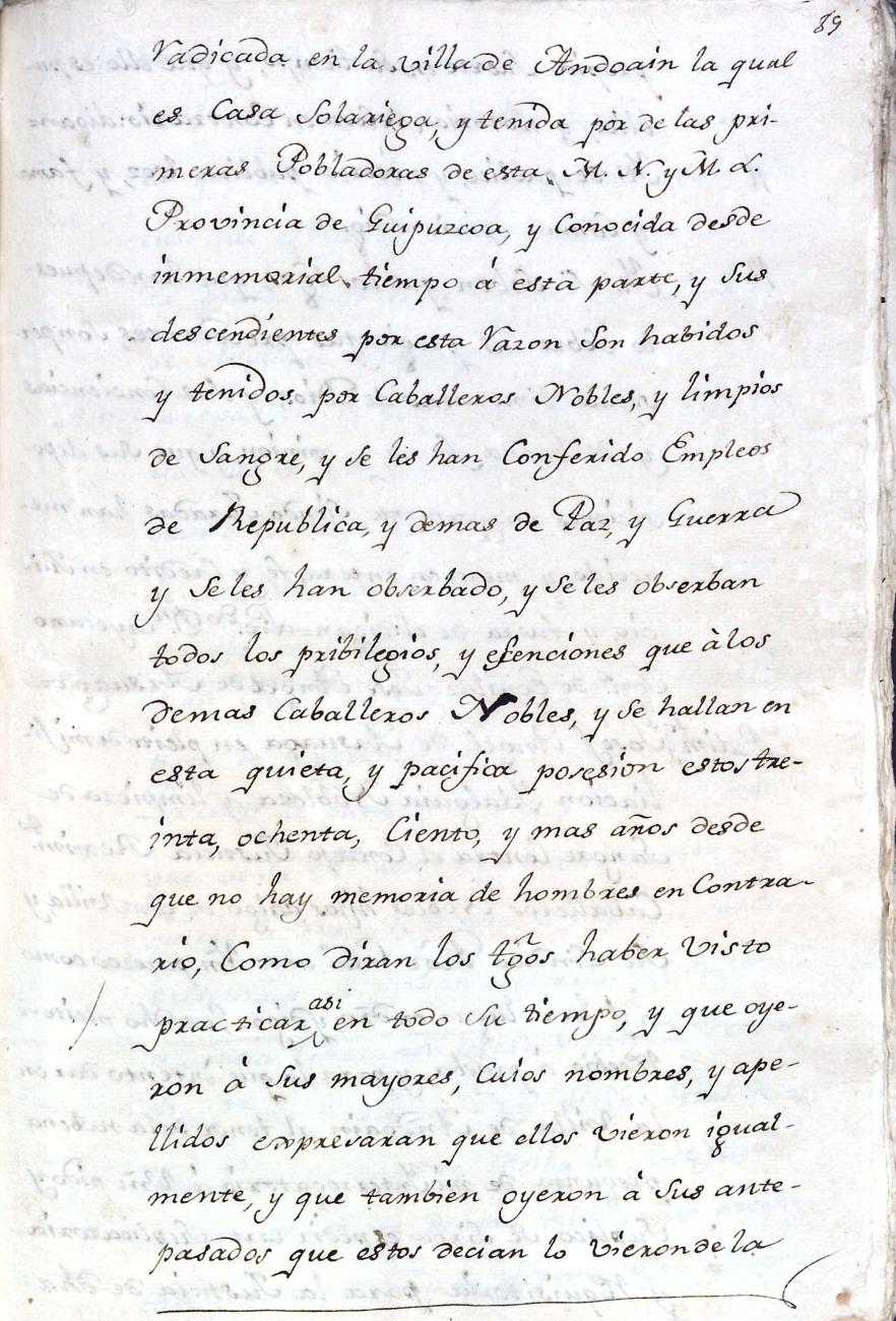 Hidalguias. Hidalguía de José Angel de Arsuaga, descendiente de la casa solar de Arsuaga de abajo de Urrestilla.