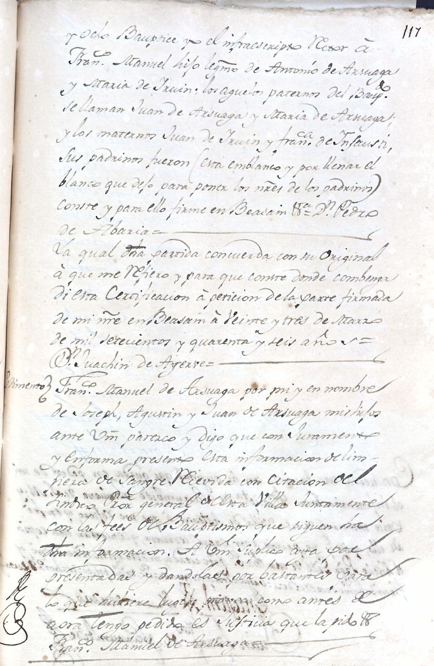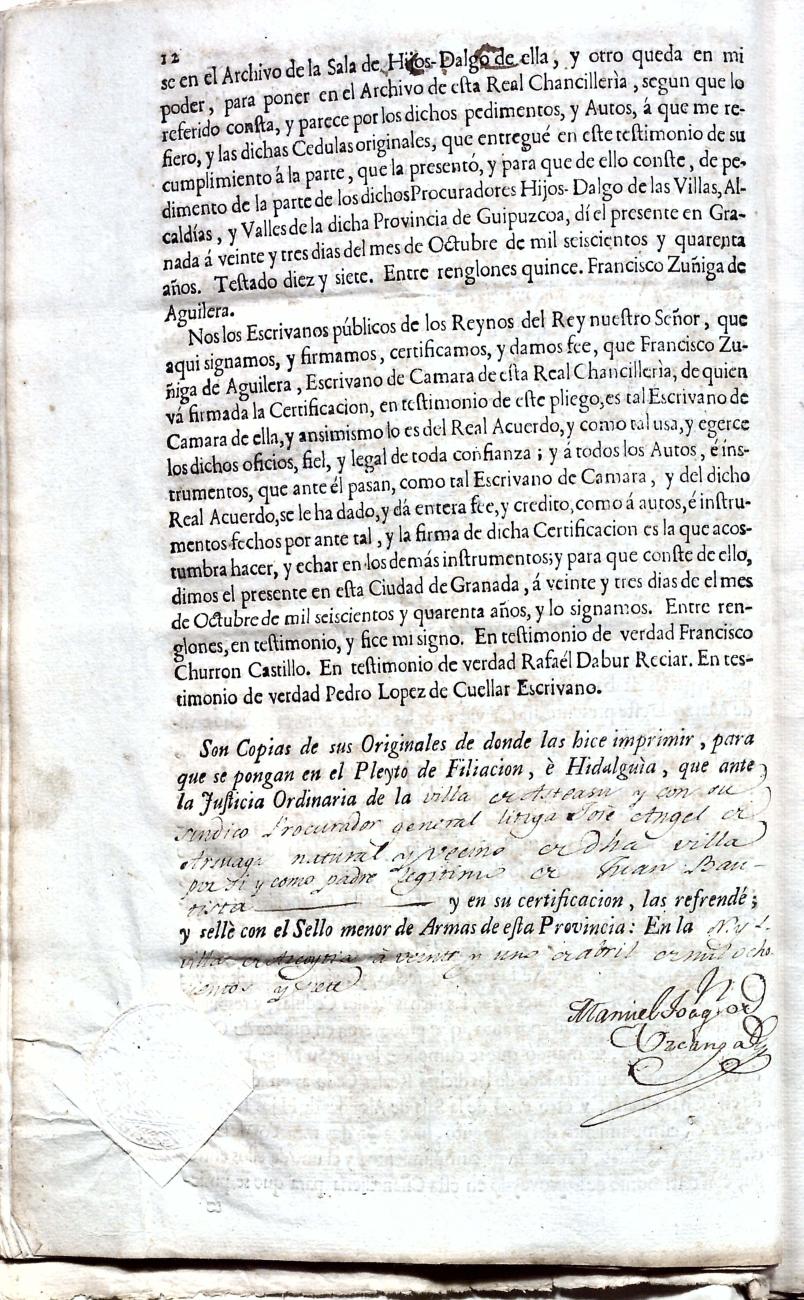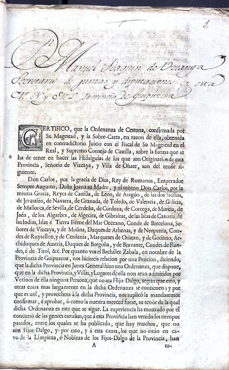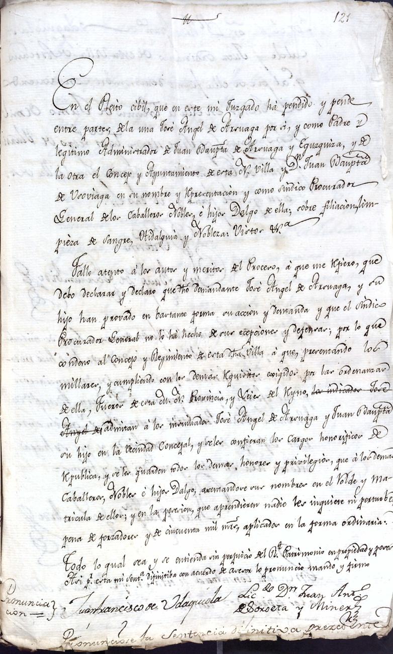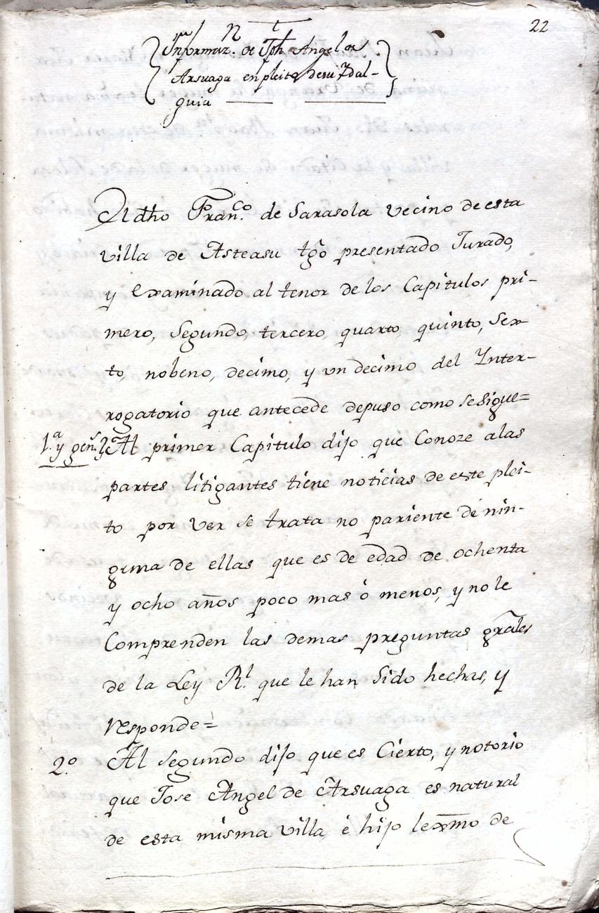 Hidalguias. Hidalguía de José Angel de Arsuaga, descendiente de la casa solar de Arsuaga de abajo de Urrestilla.
