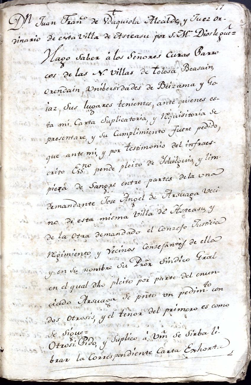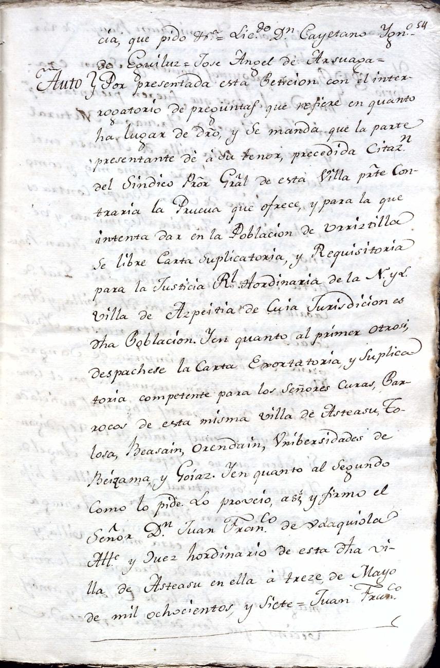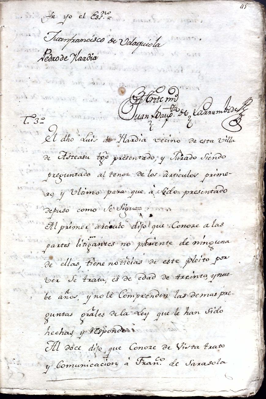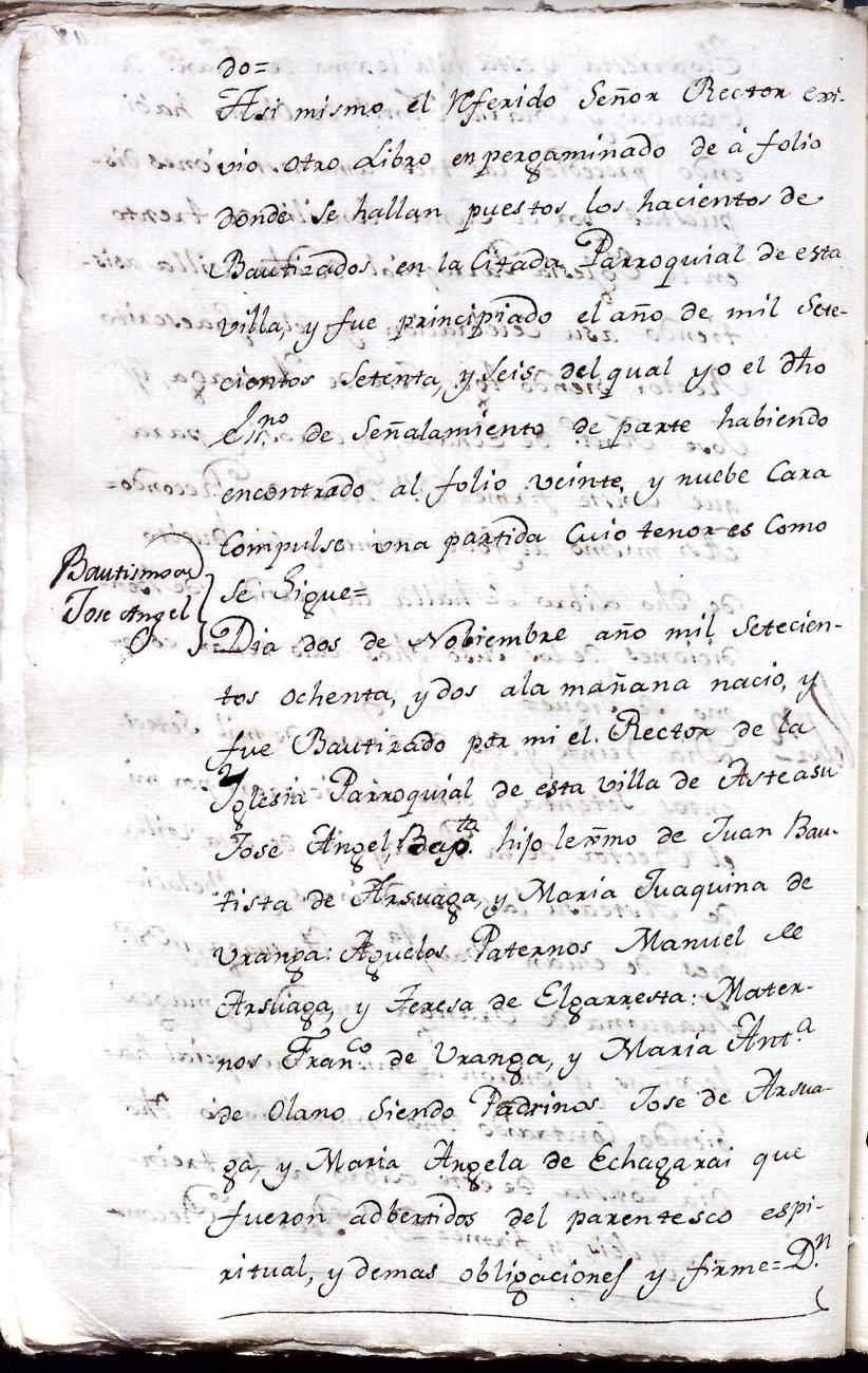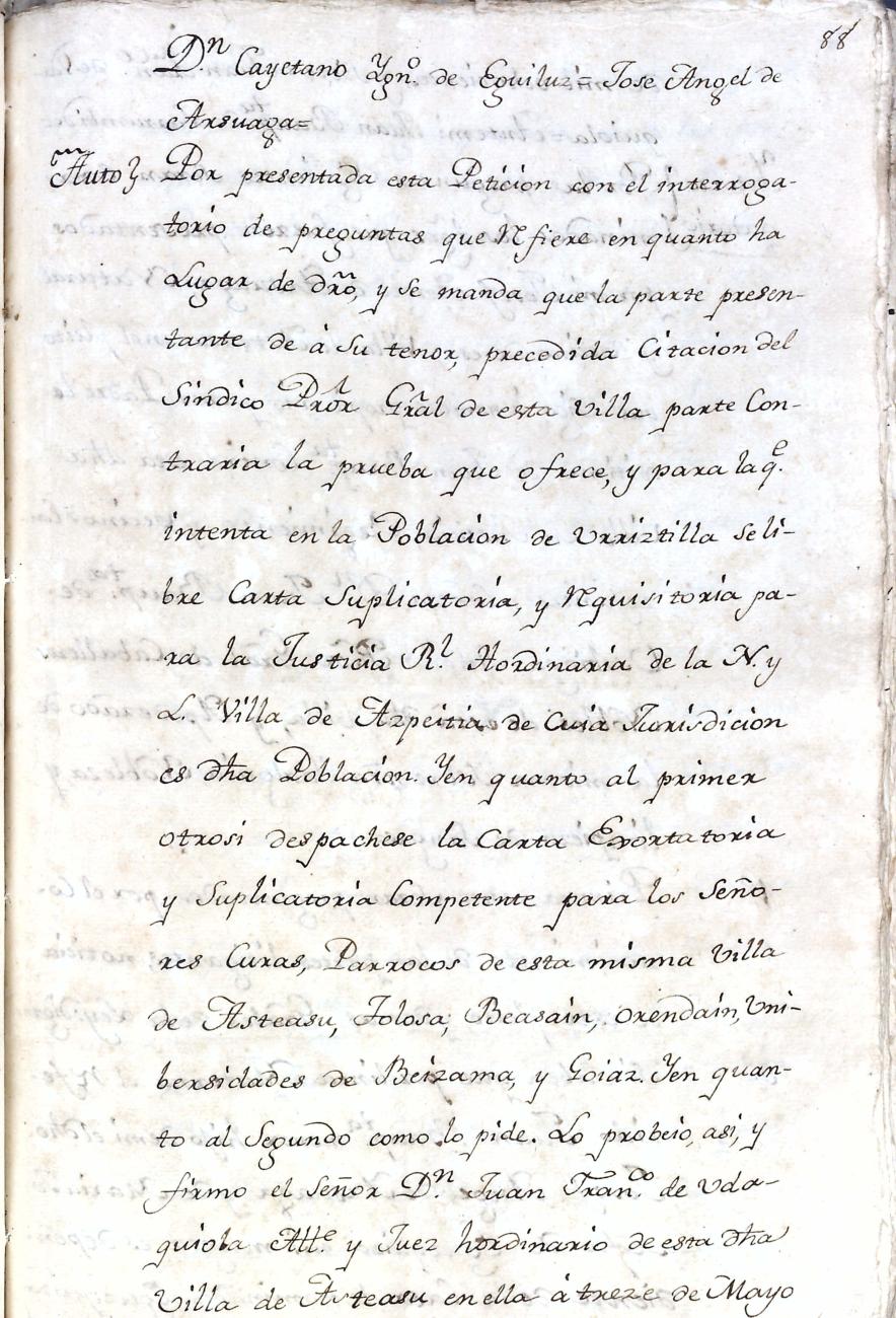 Hidalguias. Hidalguía de José Angel de Arsuaga, descendiente de la casa solar de Arsuaga de abajo de Urrestilla.