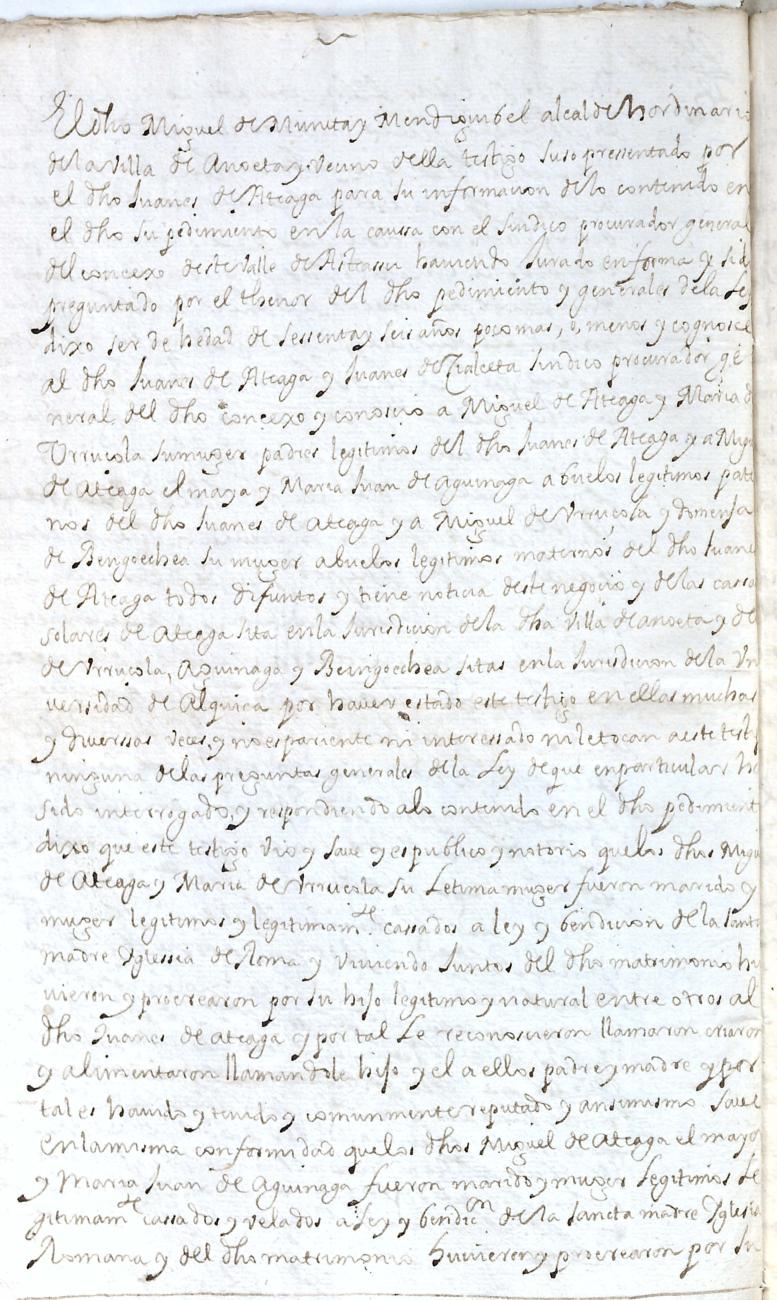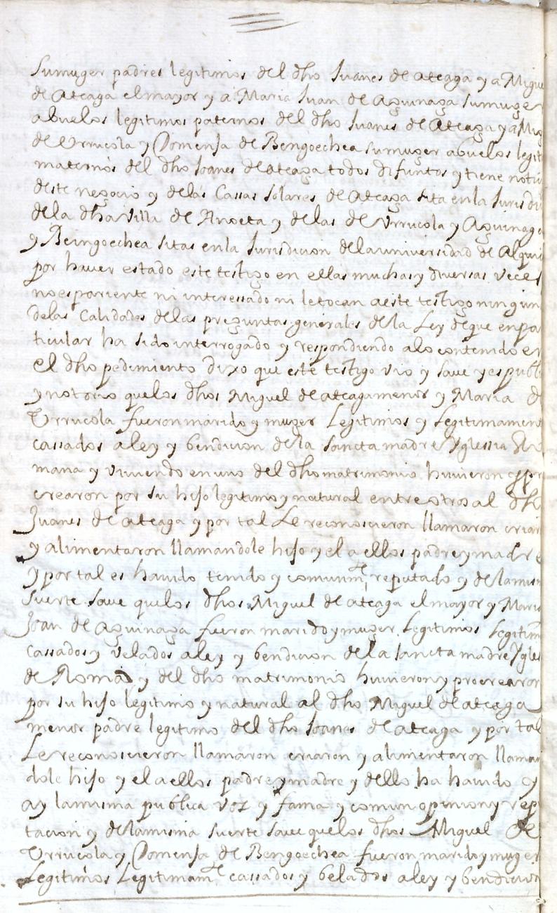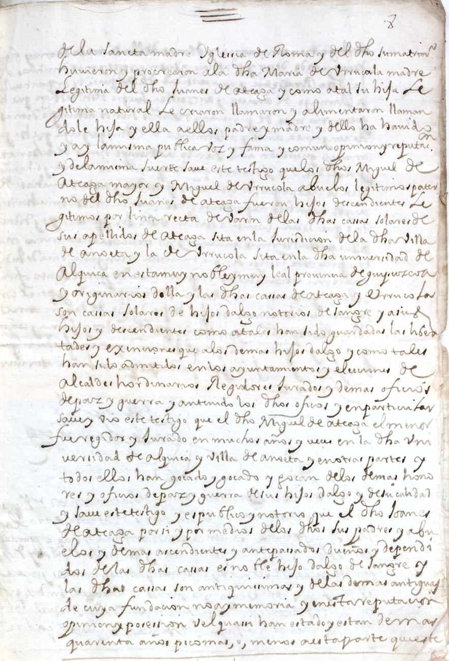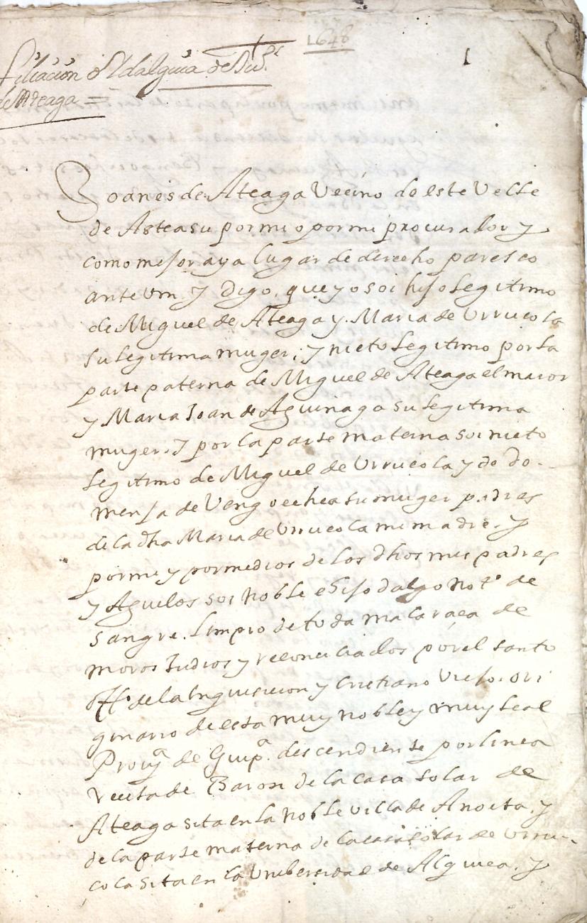 Hidalguias. Filiación de Joanes de Ateaga y de Urruzola, descendiente de la casa solar de Ateaga de Anoeta.