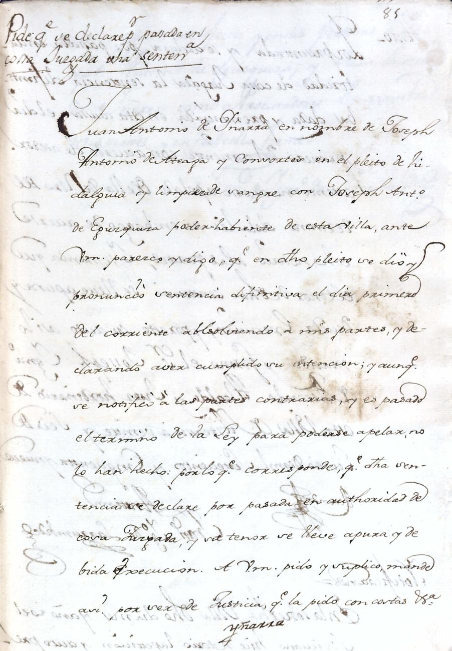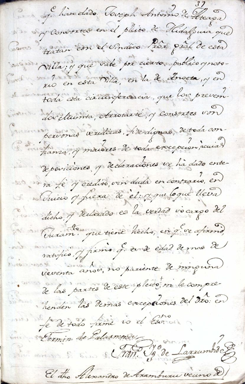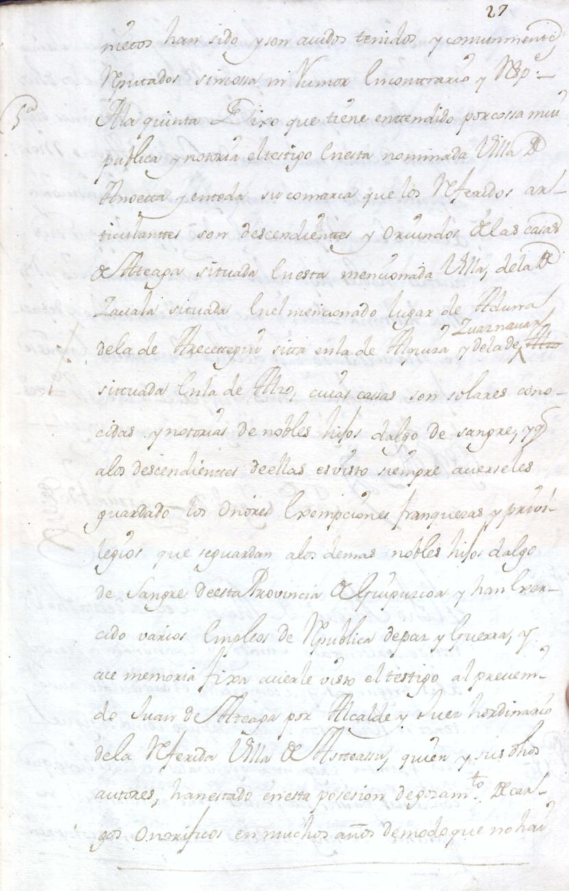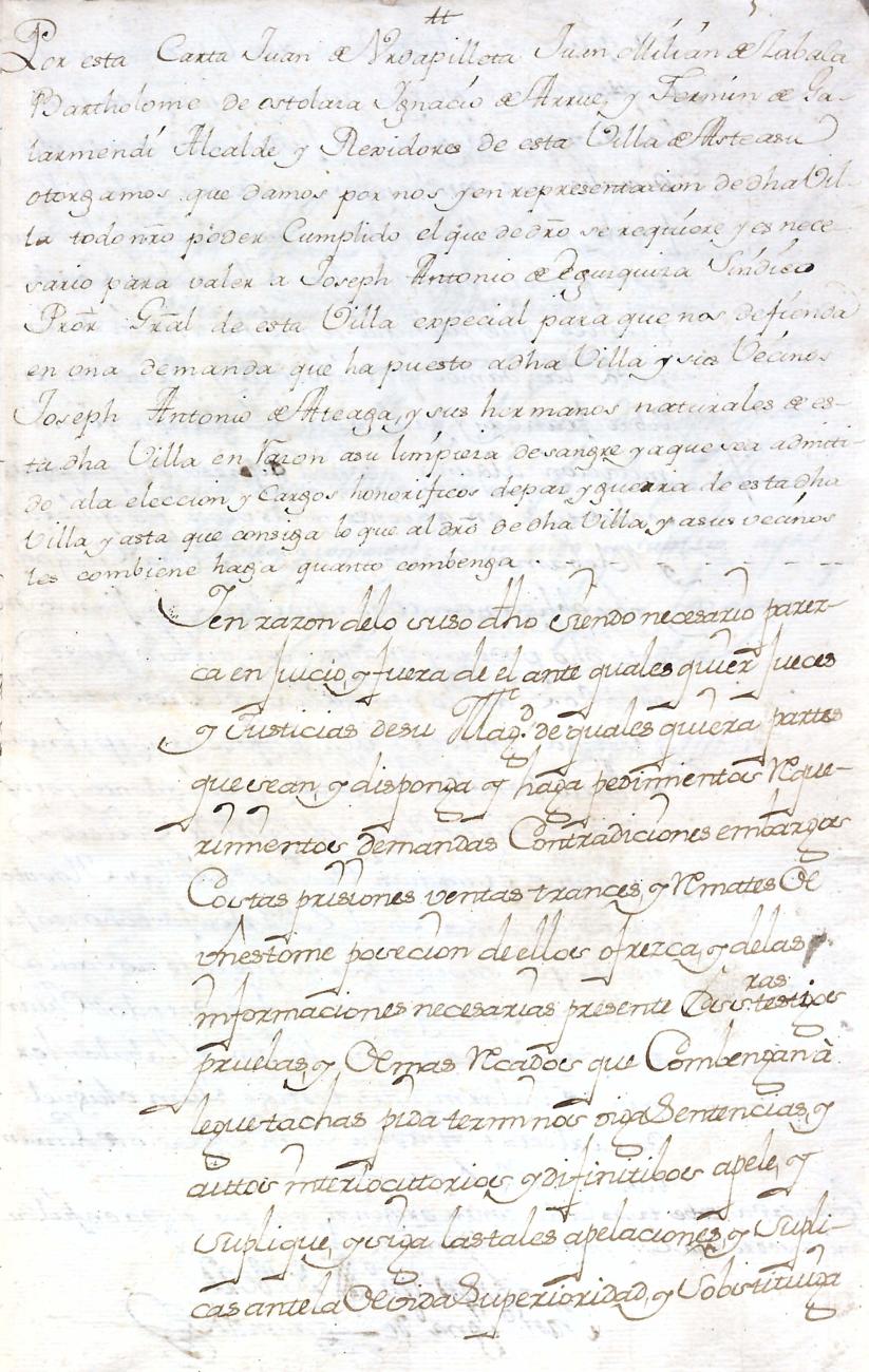 Hidalguias. Hidalguía de José Antonio de Ateaga y Zavala y consortes descendiente de las casas solares de Ateaga y Zavala de Anoeta y Aduna respectivamente.