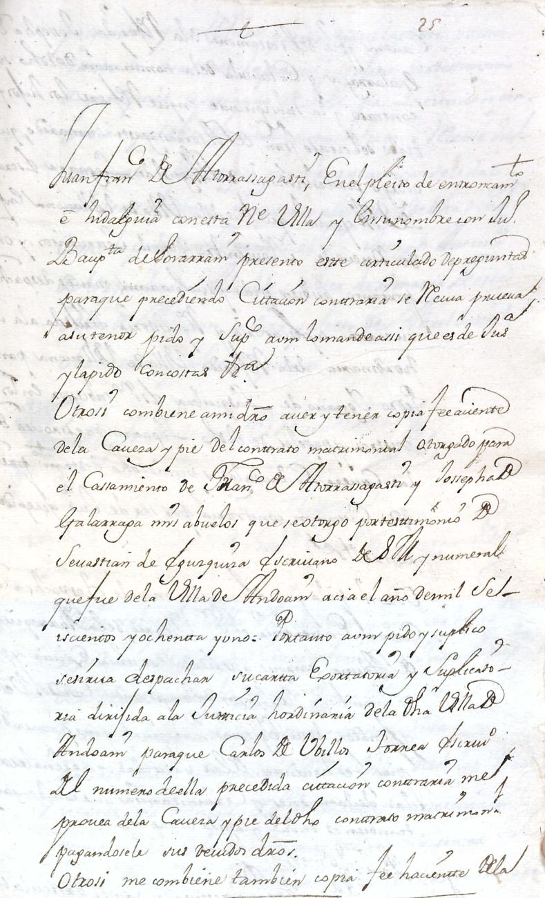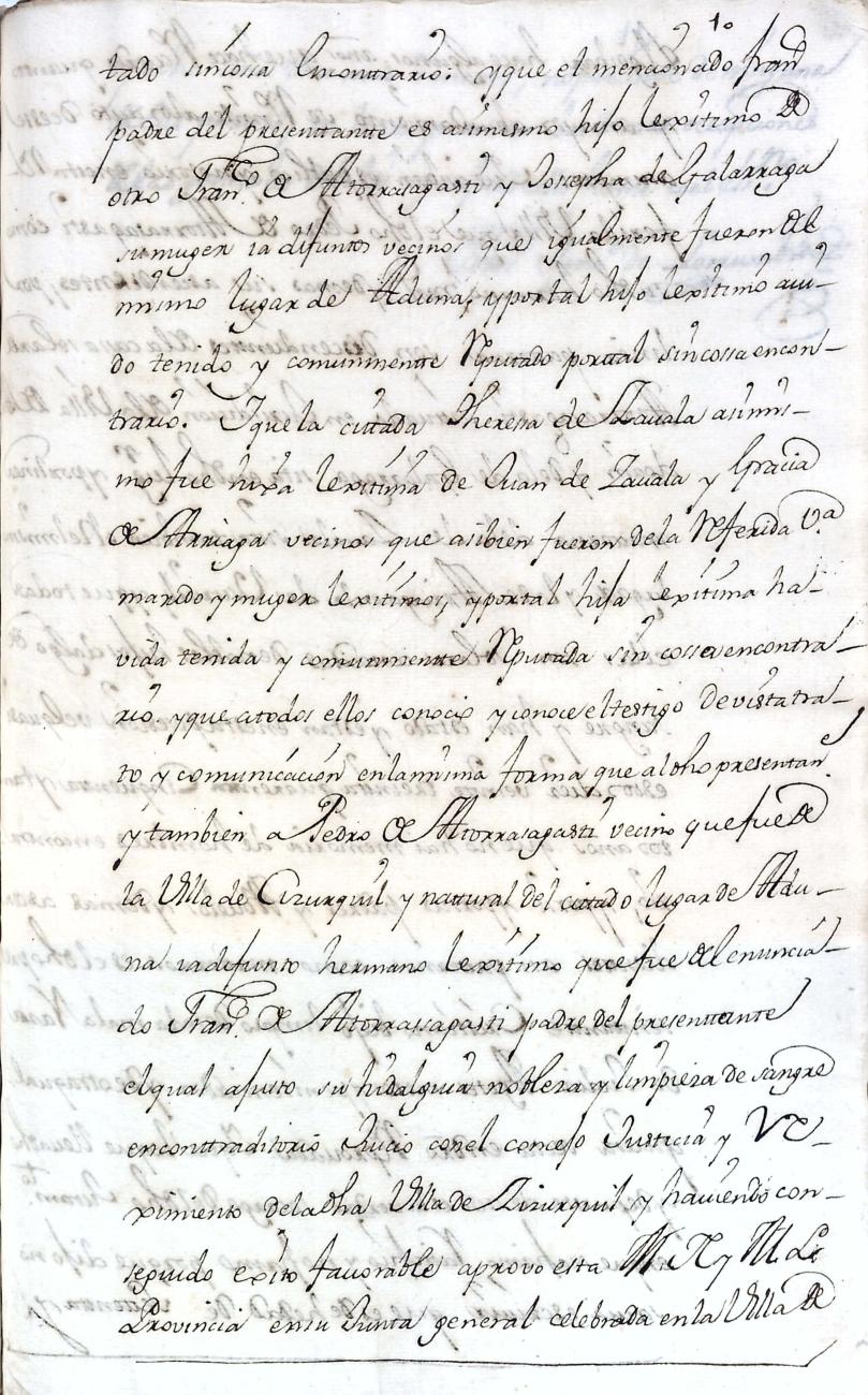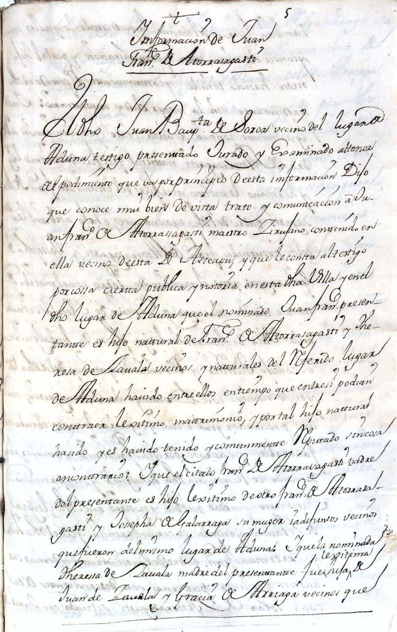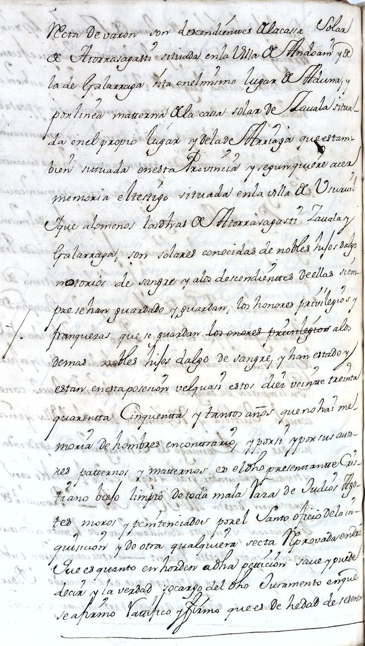 Hidalguias. Filiación de Atorrasagasti y Galarraga, descendiente de la casa solar de Atorrasagasti de Andoain.