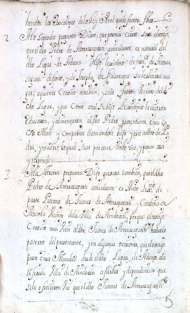 Hidalguias. Filiación de Pedro de Atorrasagasti y Galarraga, descendiente de la casa solar de Atorrasagasti de Andoain.