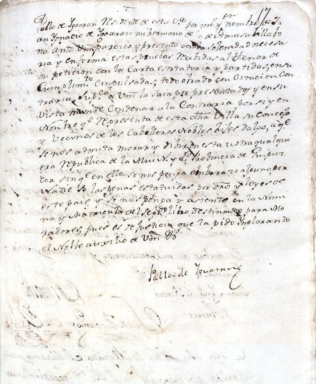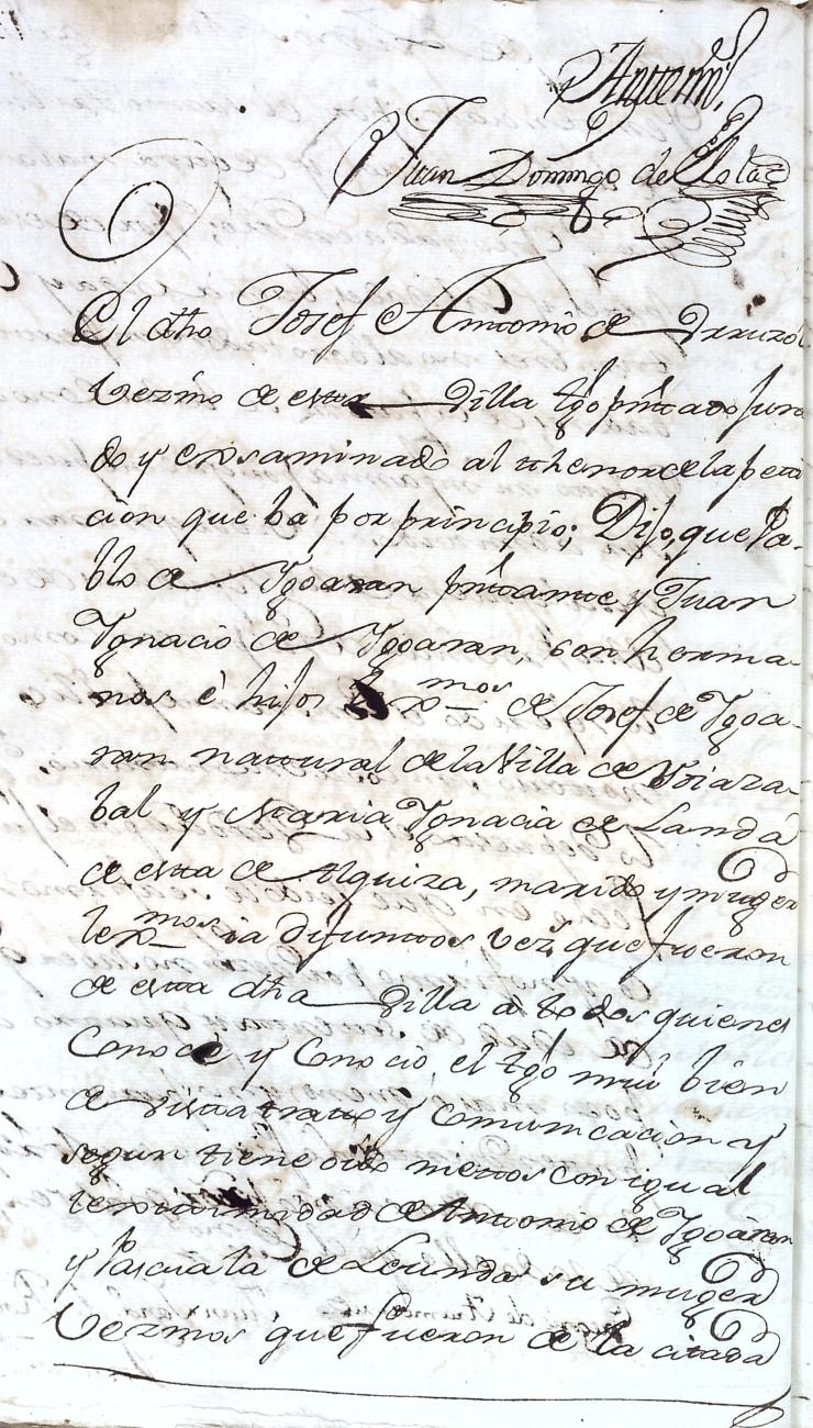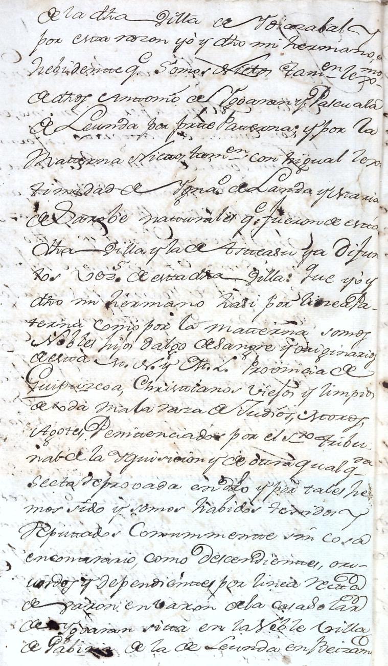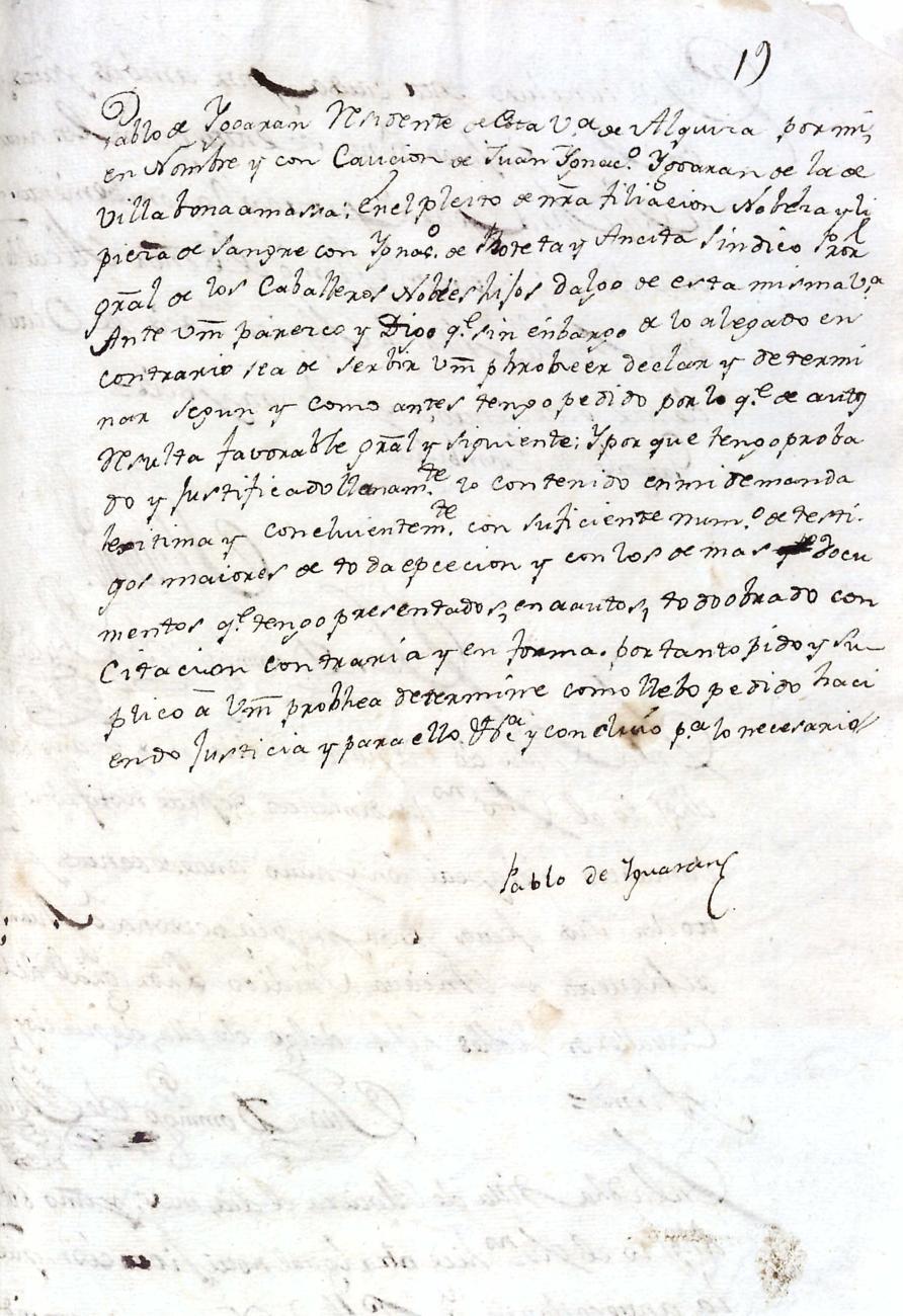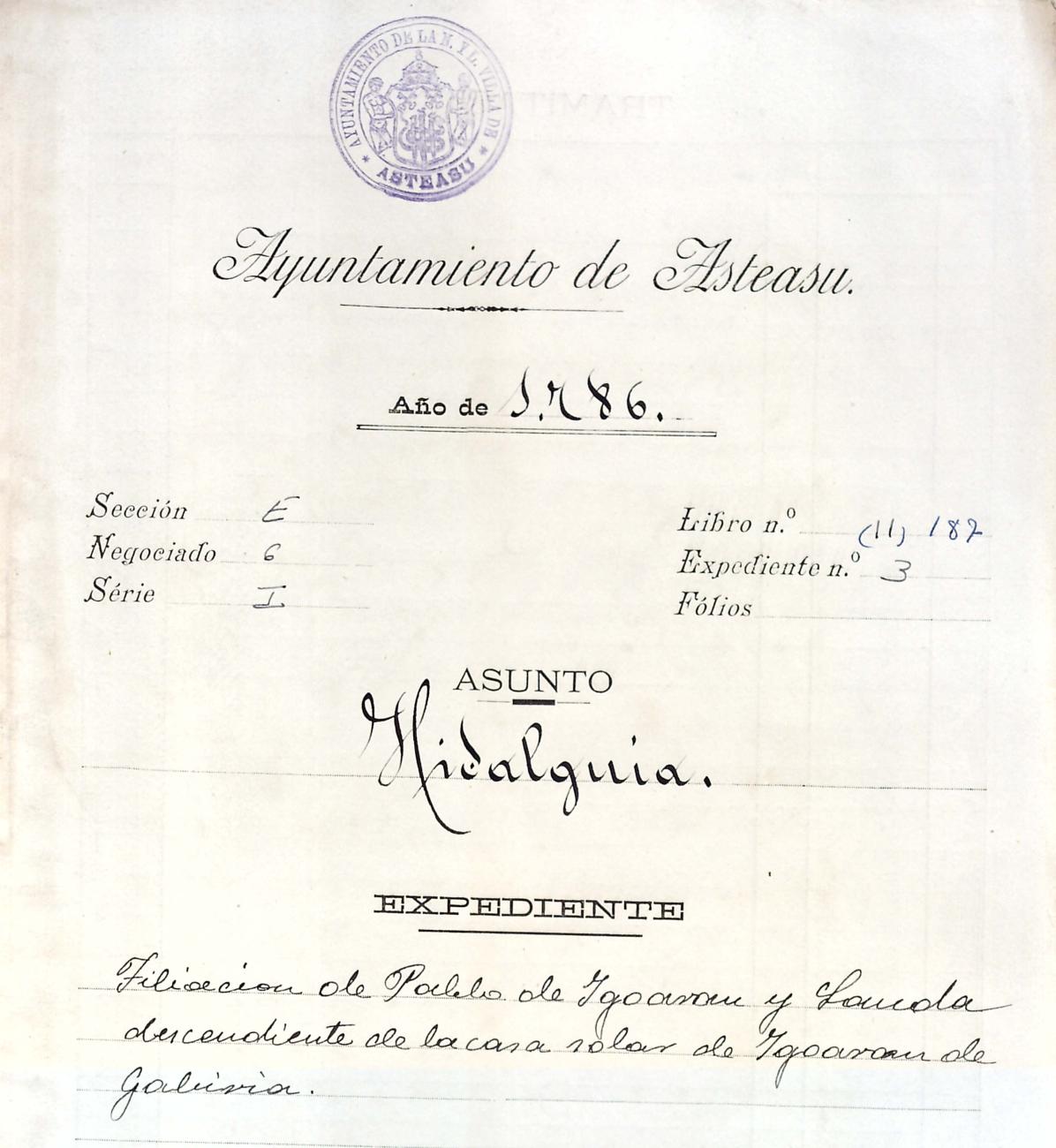 Hidalguias. Filiación de Pablo de Igoaran y Landa, descendiente de la casa solar de Igoaran de Gabiria.