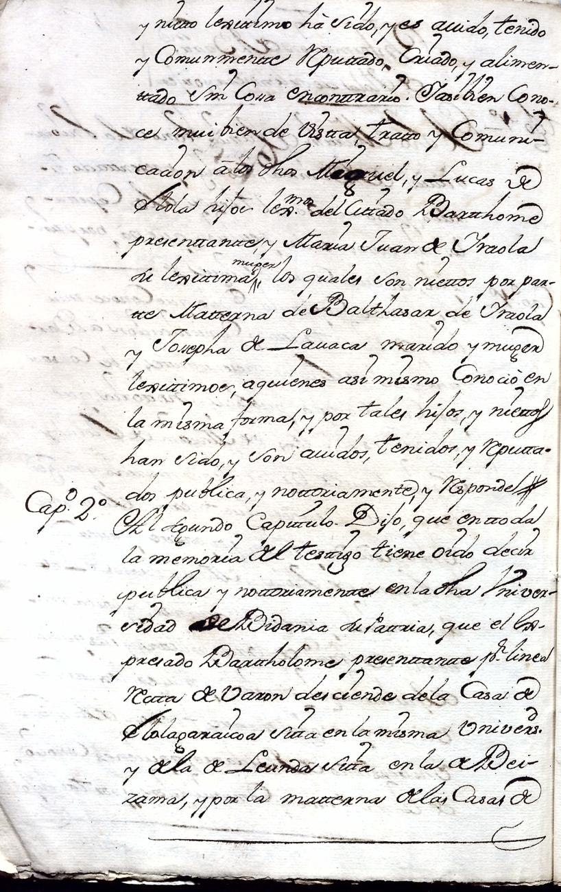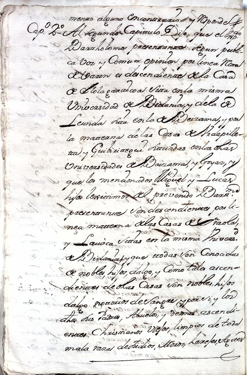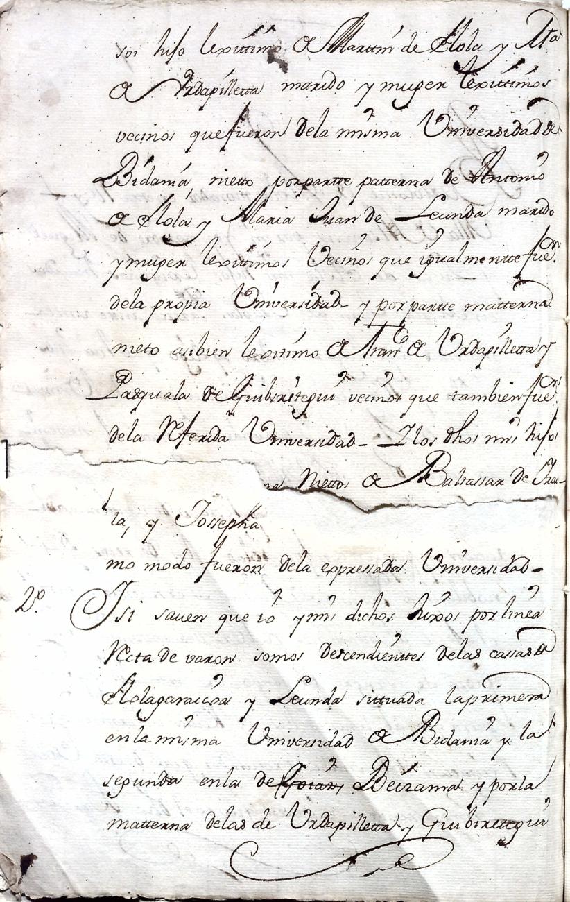 Hidalguias. Filiación de Bartolomé de Elola y Urdapilleta, descendiente de la casa solar de Elola de Vidania.