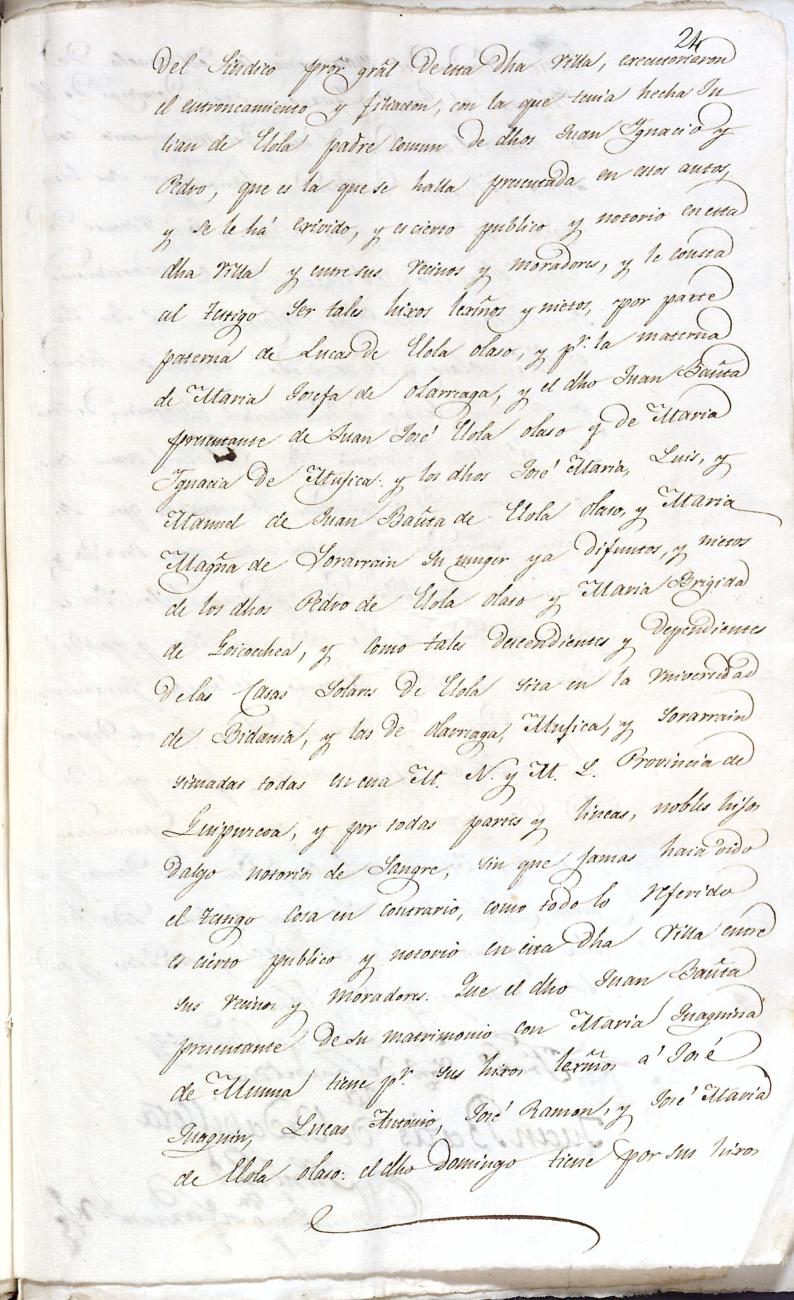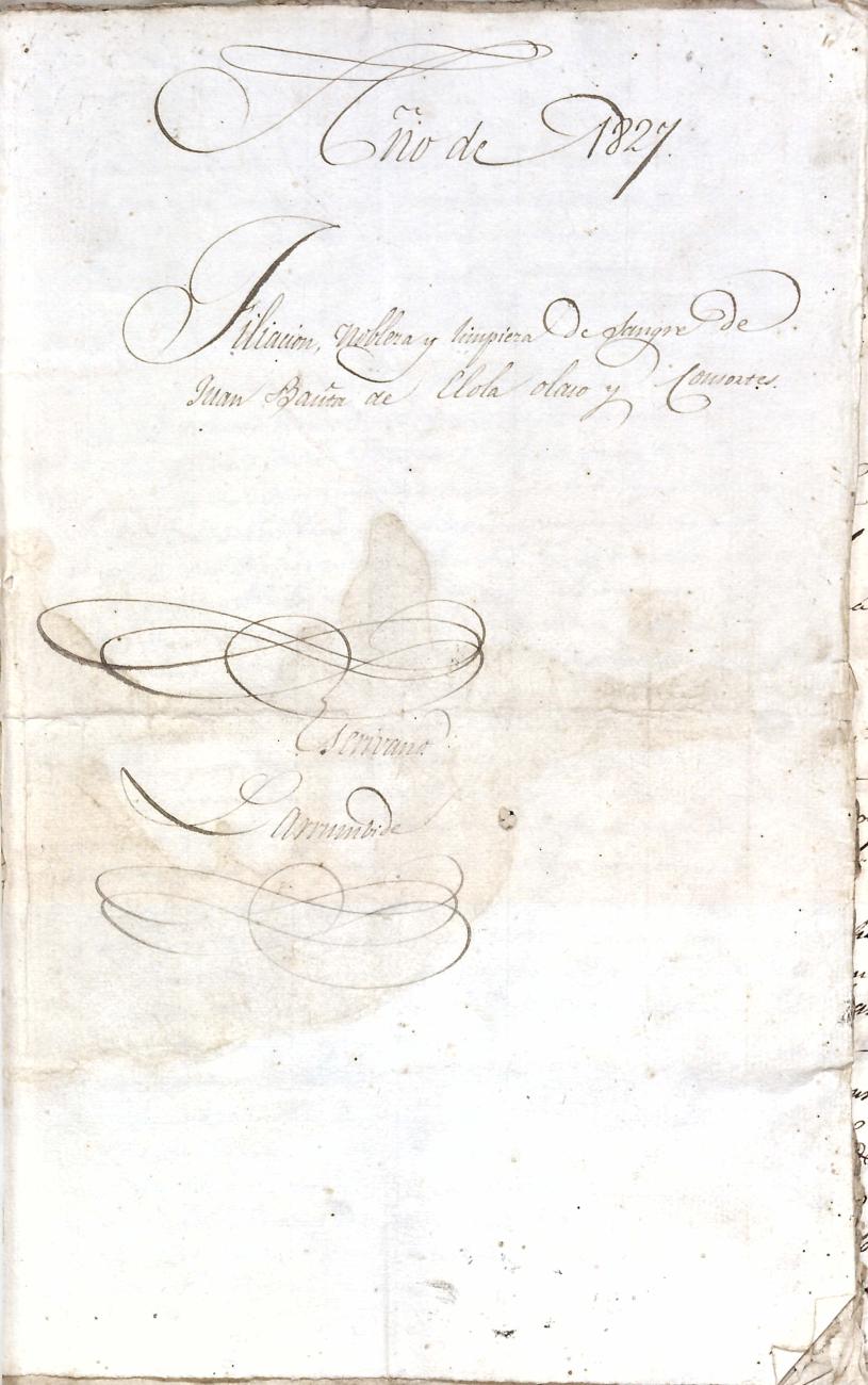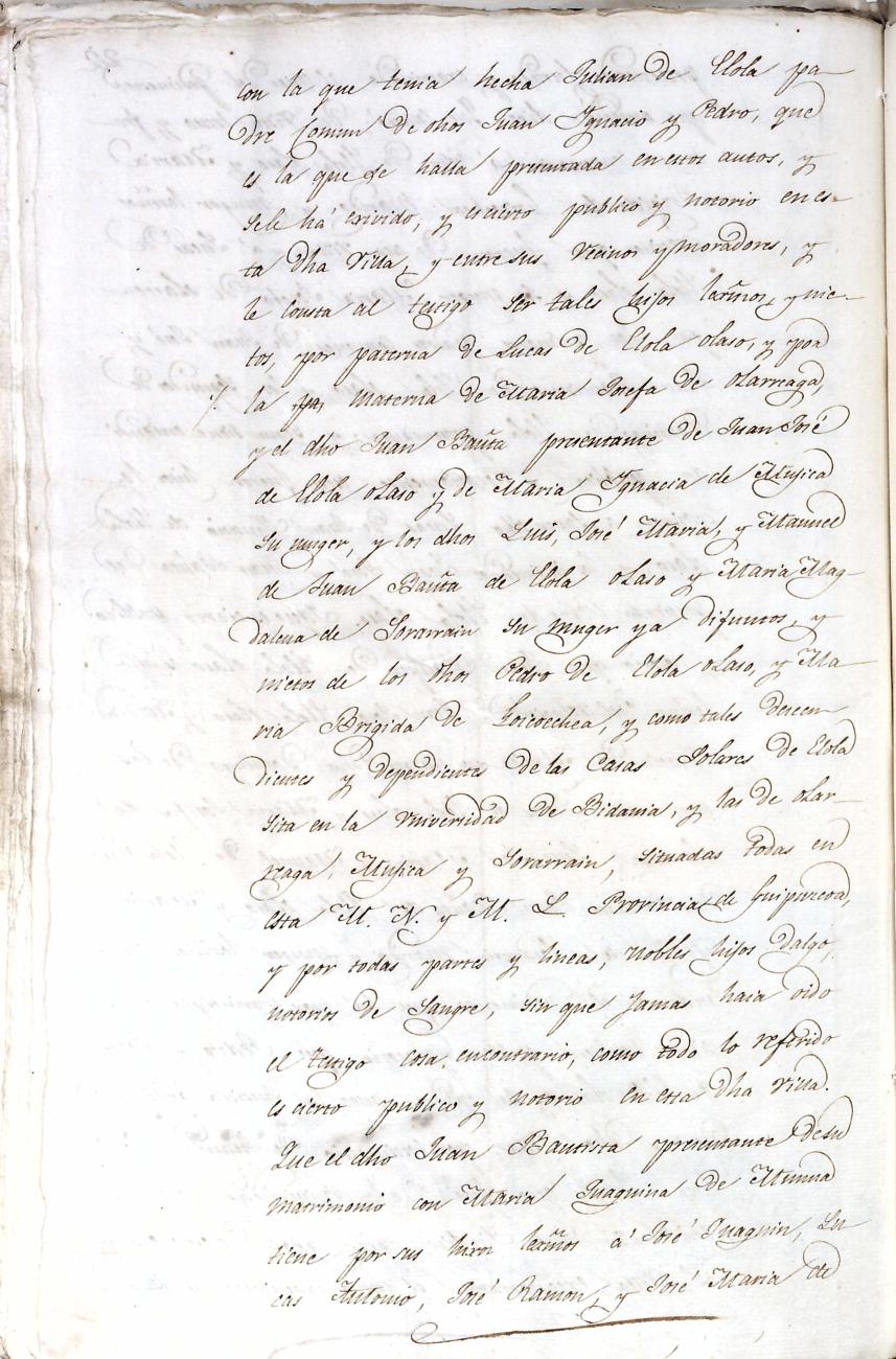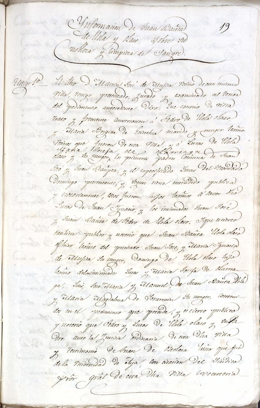 Hidalguias. Filiación de Juan Bautista de Elola y Olaso y consortes descendientes de la casa solar de Elola de Vidania.