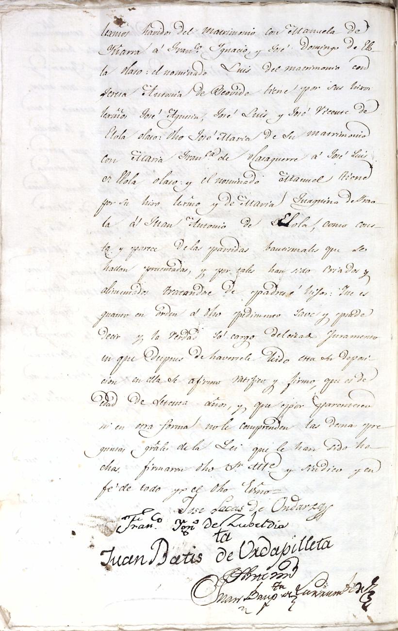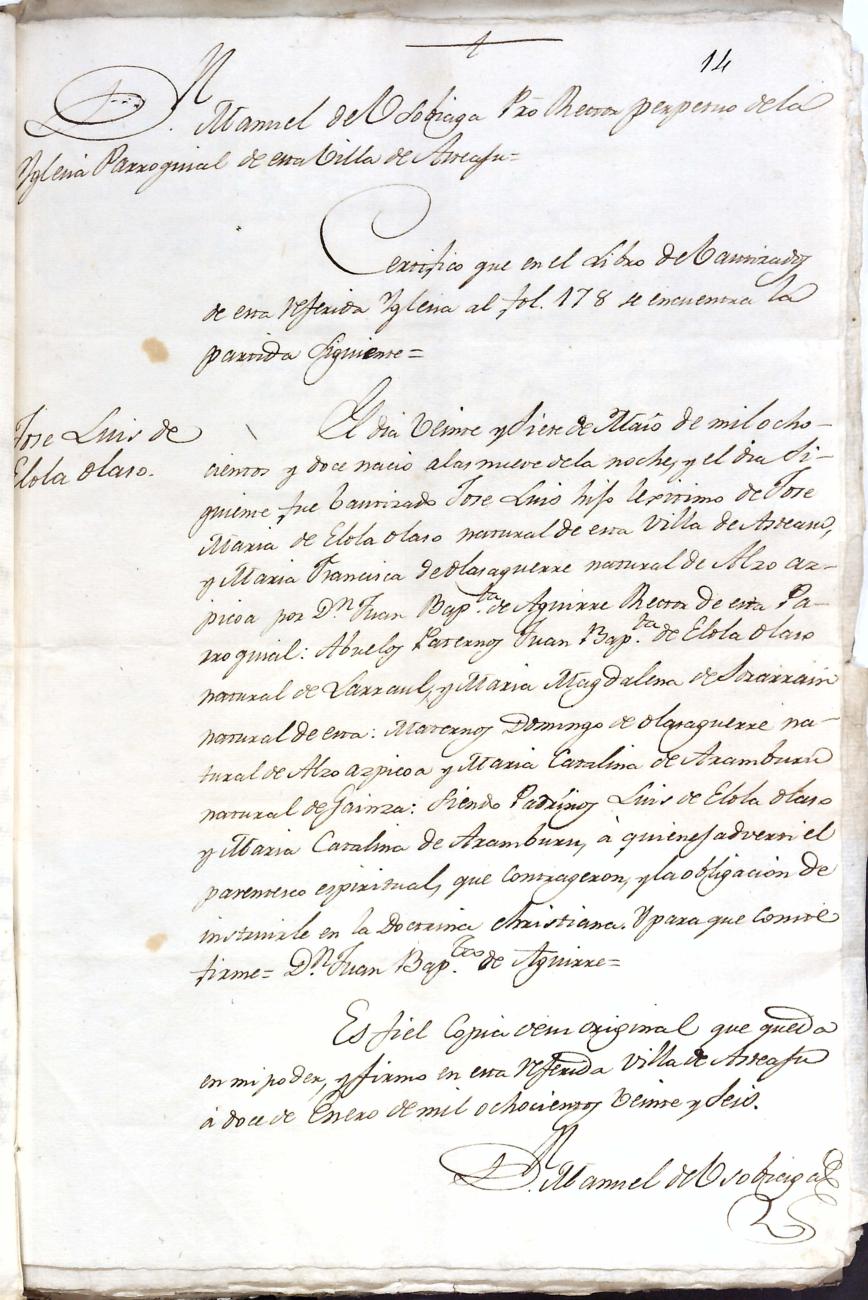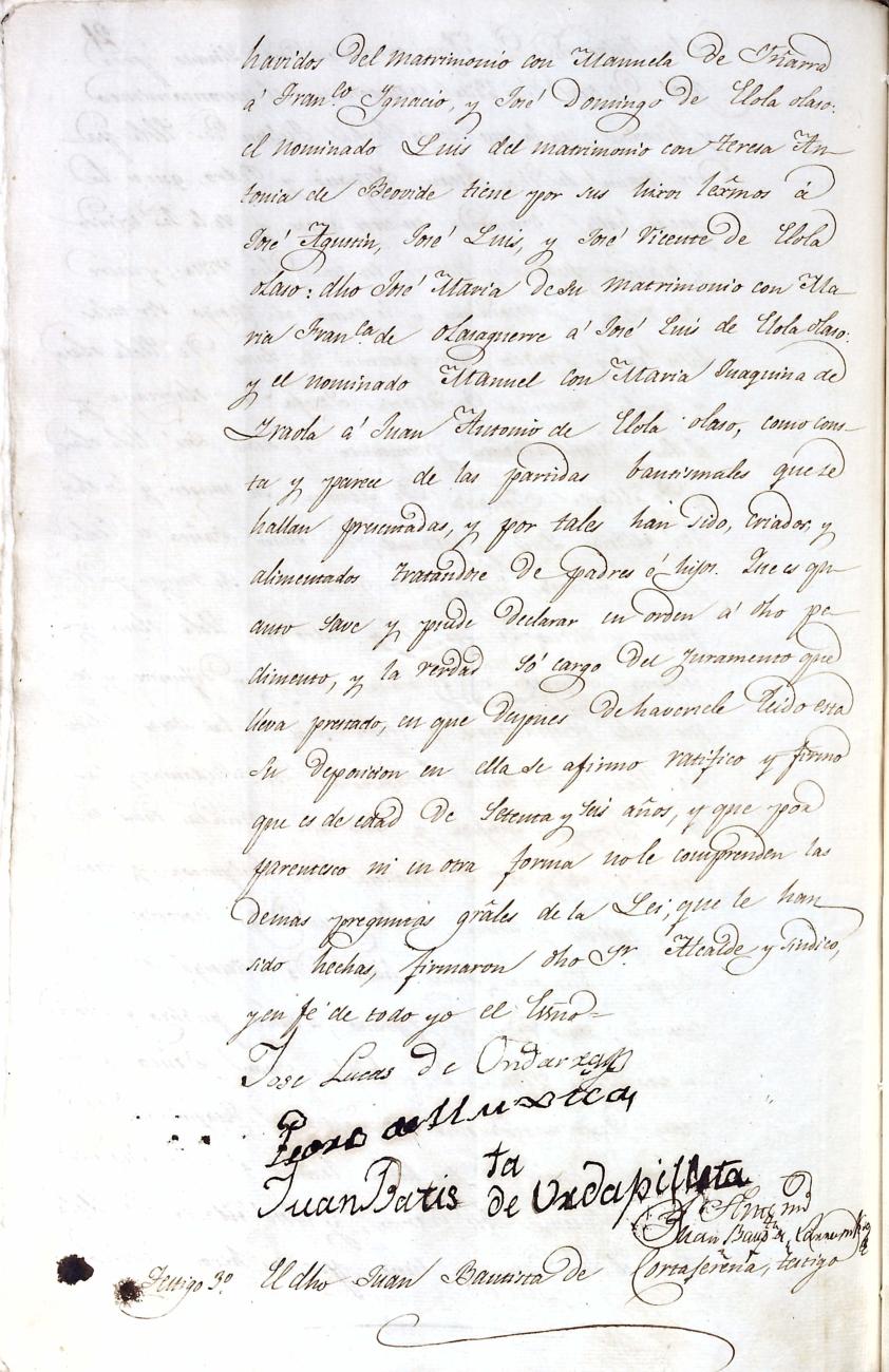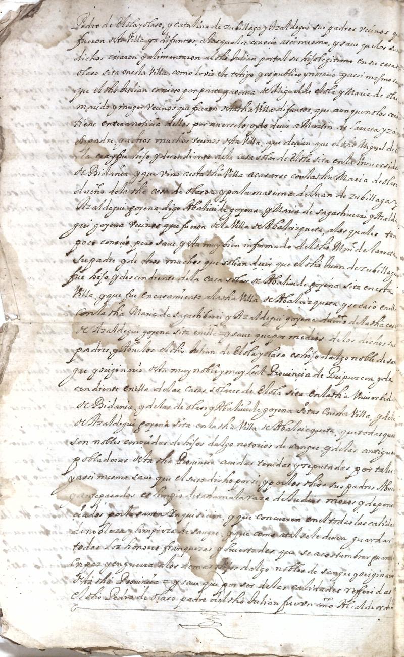 Hidalguias. Filiación de Juan Bautista de Elola y Olaso y consortes descendientes de la casa solar de Elola de Vidania.