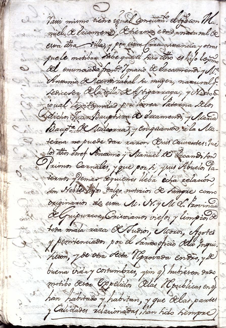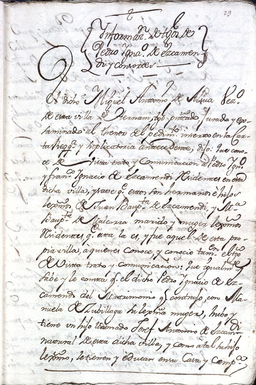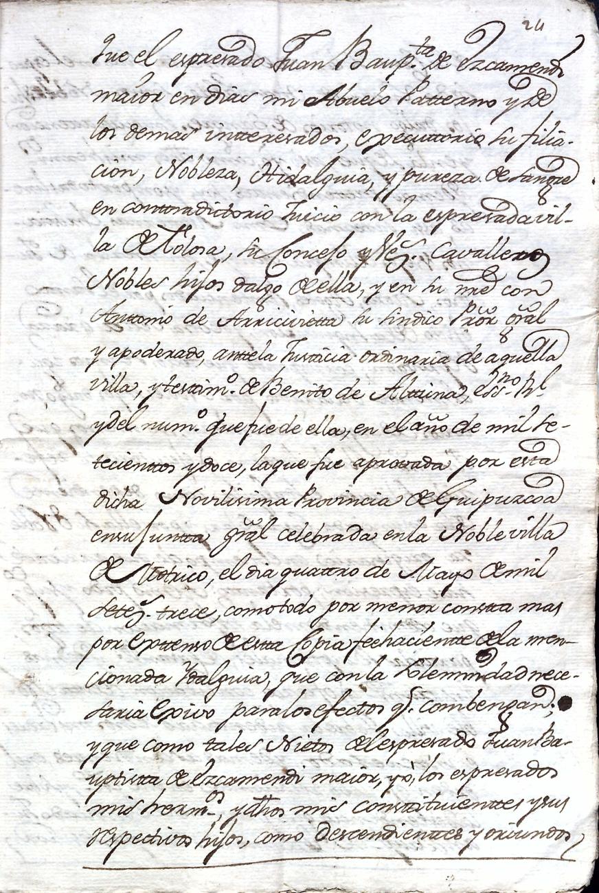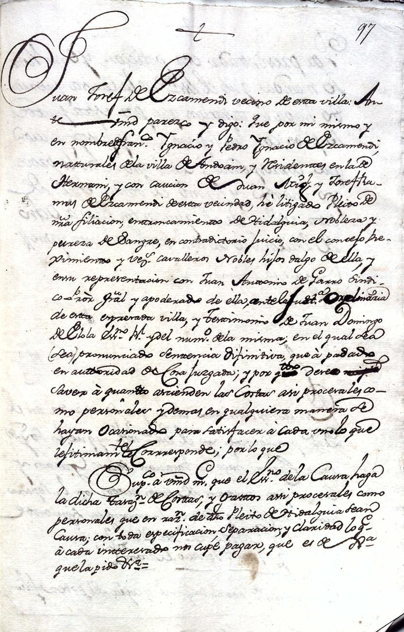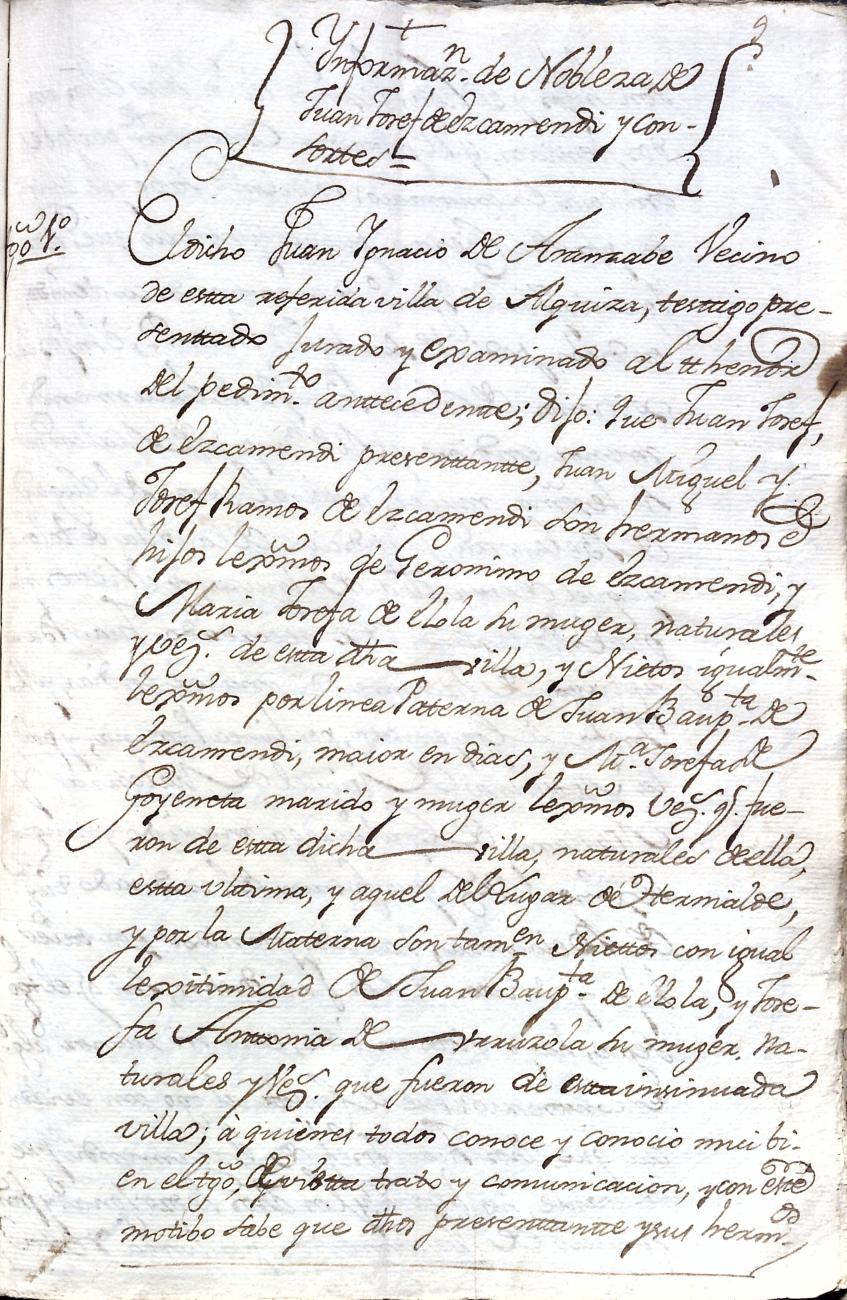 Hidalguias. Hidalguía de Juan José de Ezcamendi y Elola, descendiente de la casa solar de Ezcamendi de Hernialde.