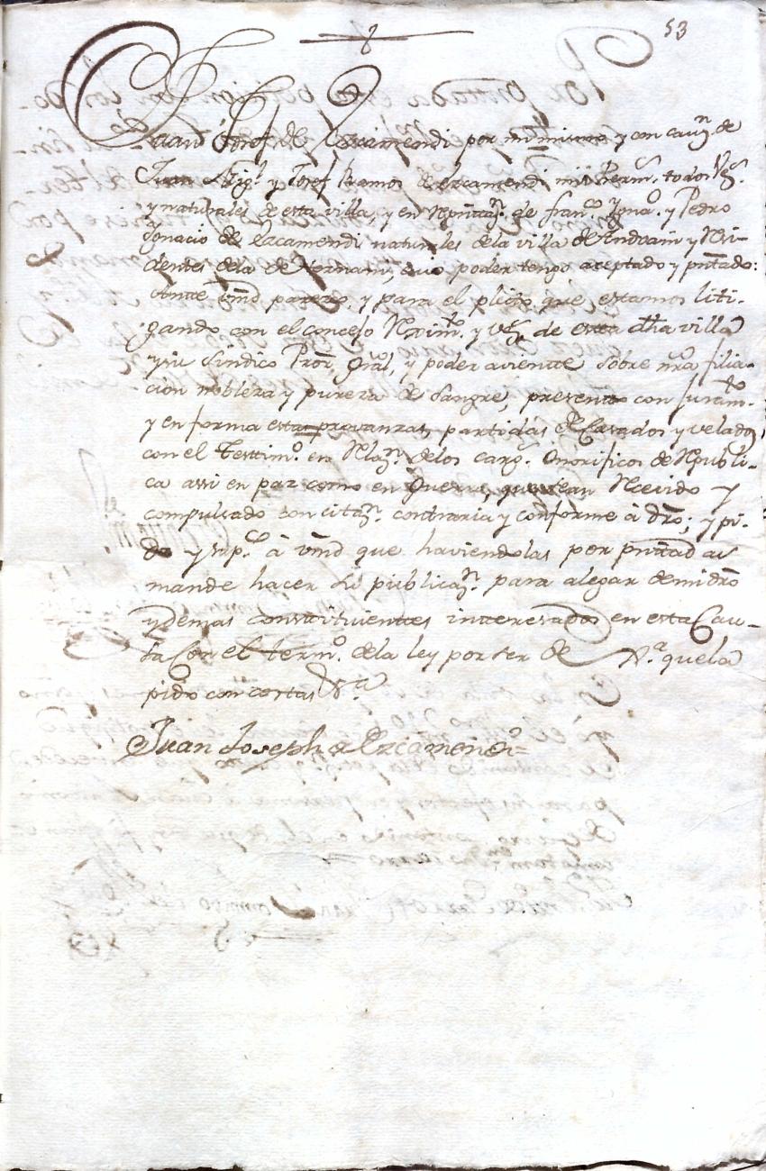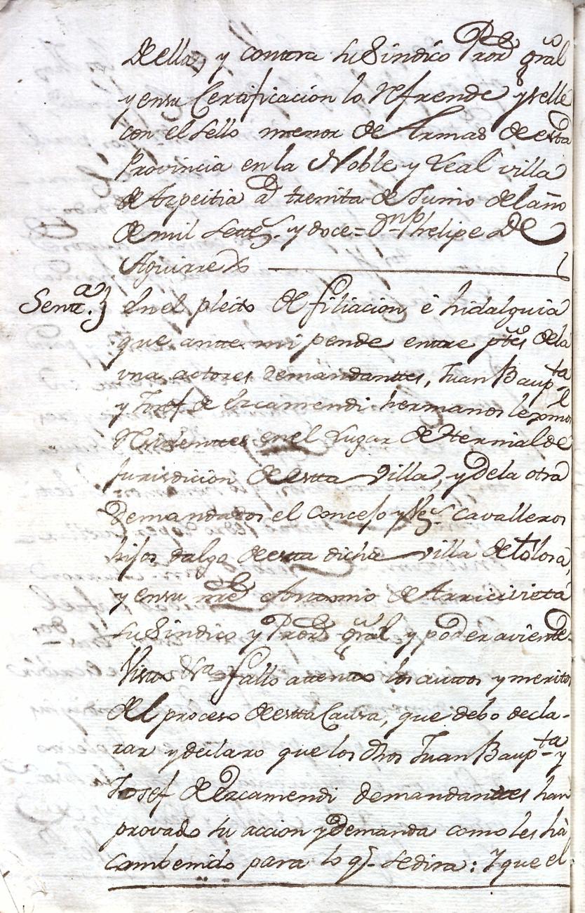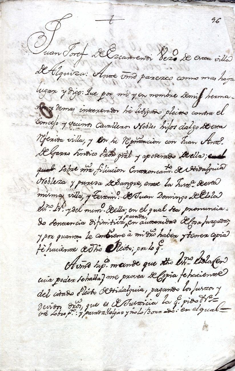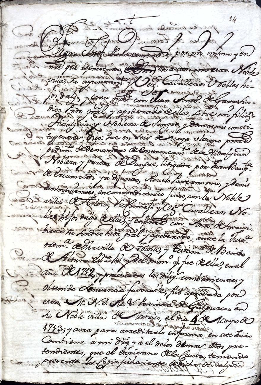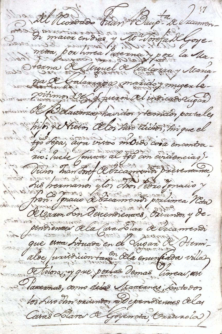 Hidalguias. Hidalguía de Juan José de Ezcamendi y Elola, descendiente de la casa solar de Ezcamendi de Hernialde.