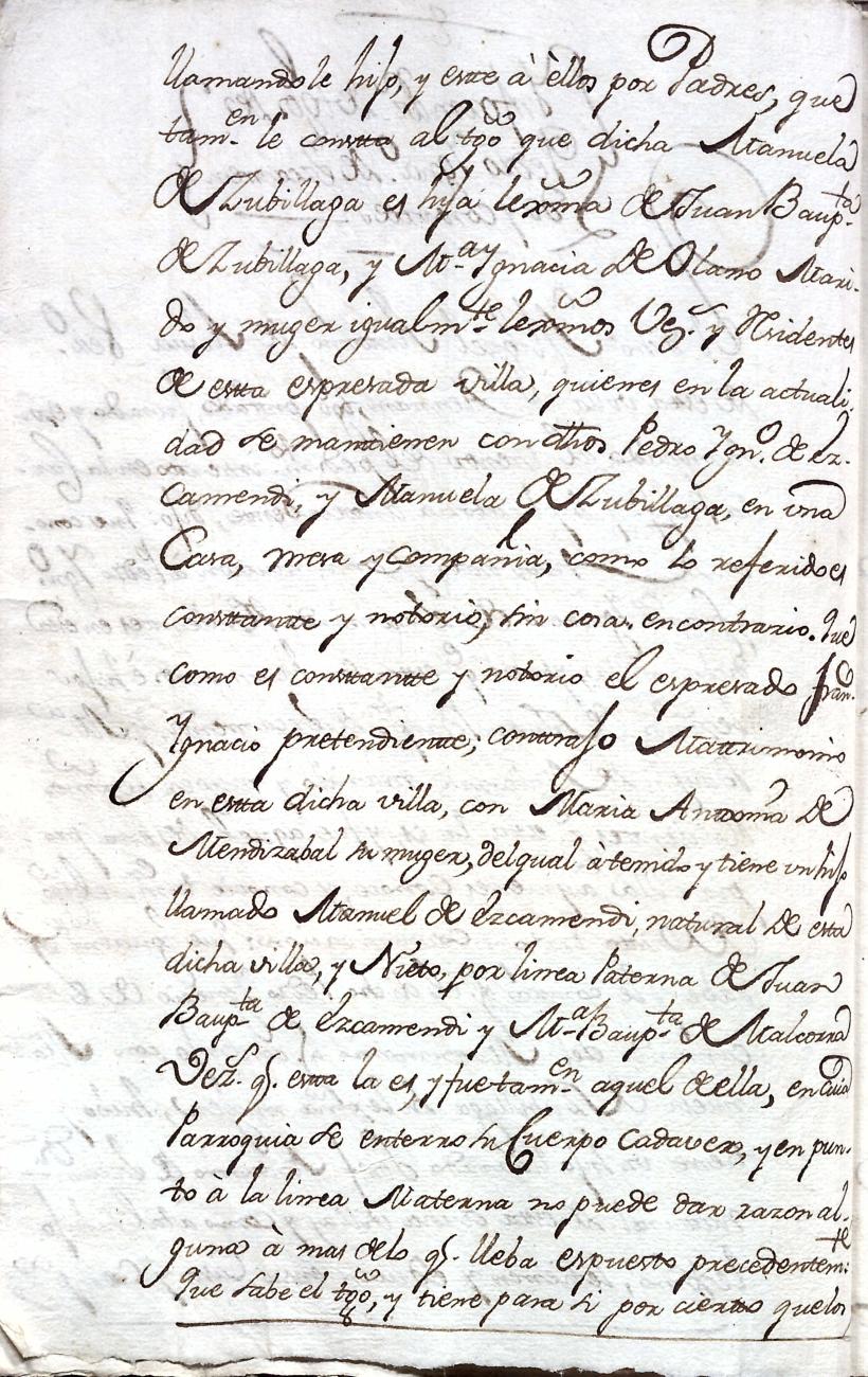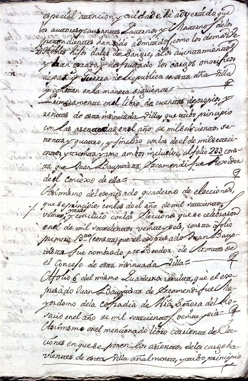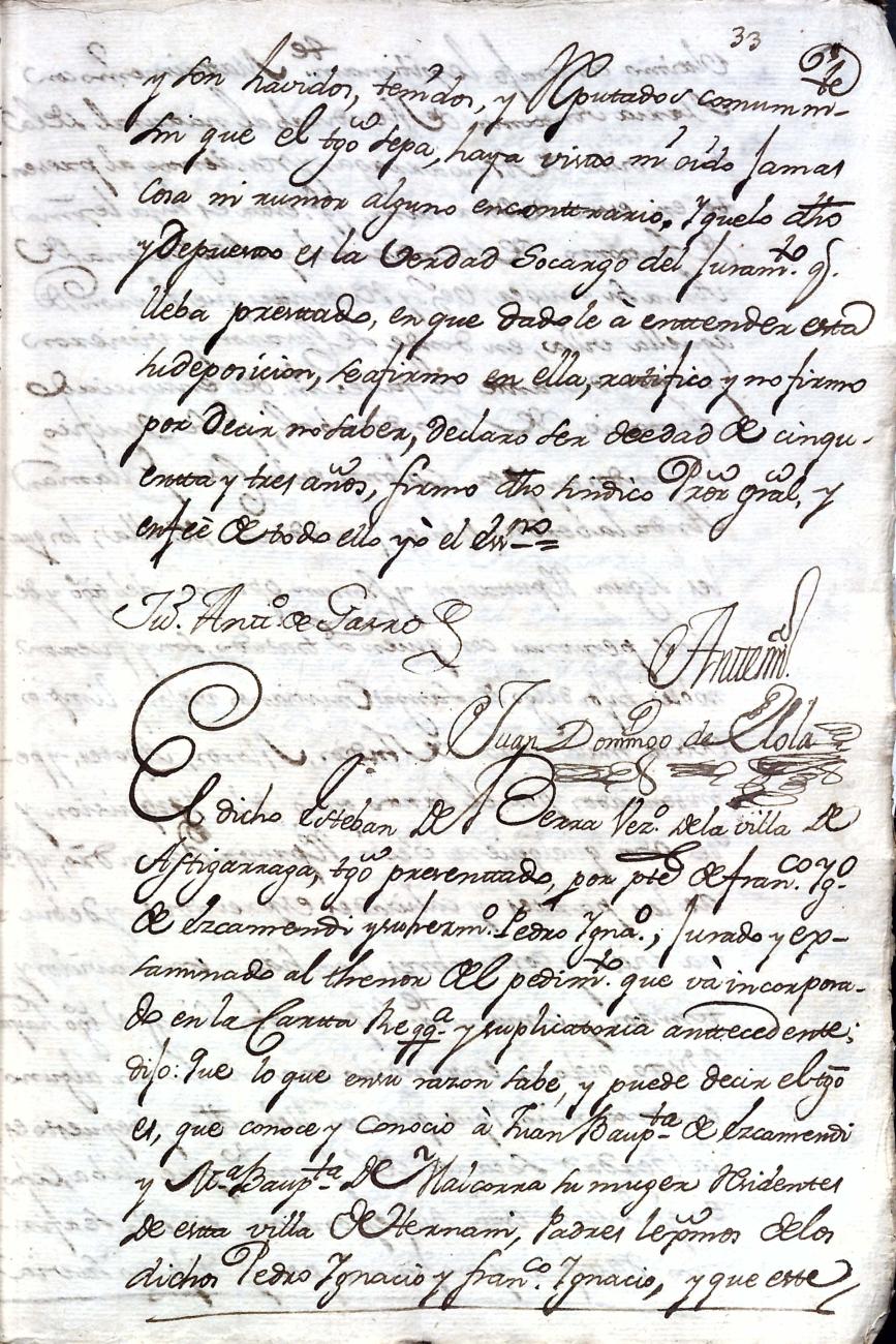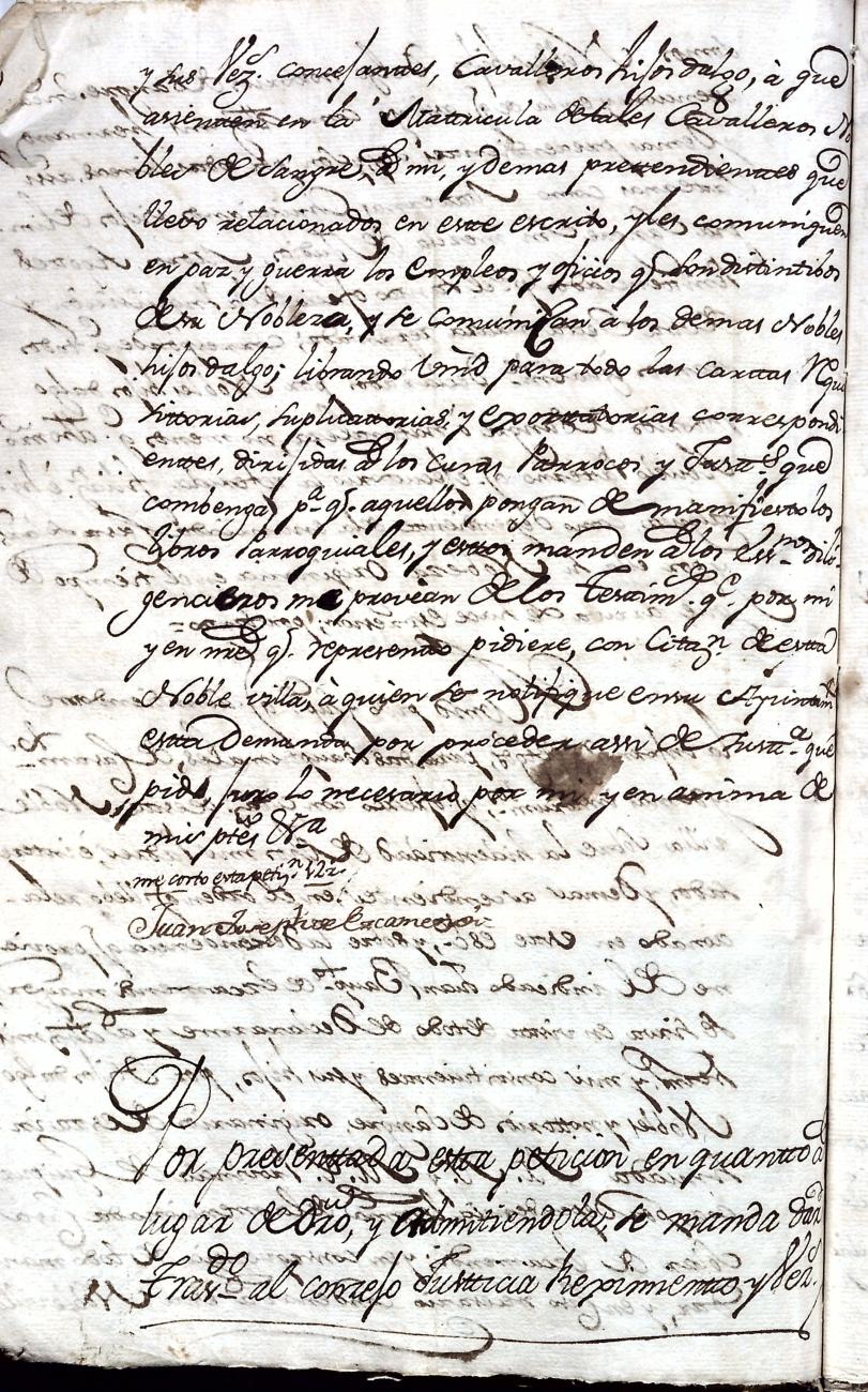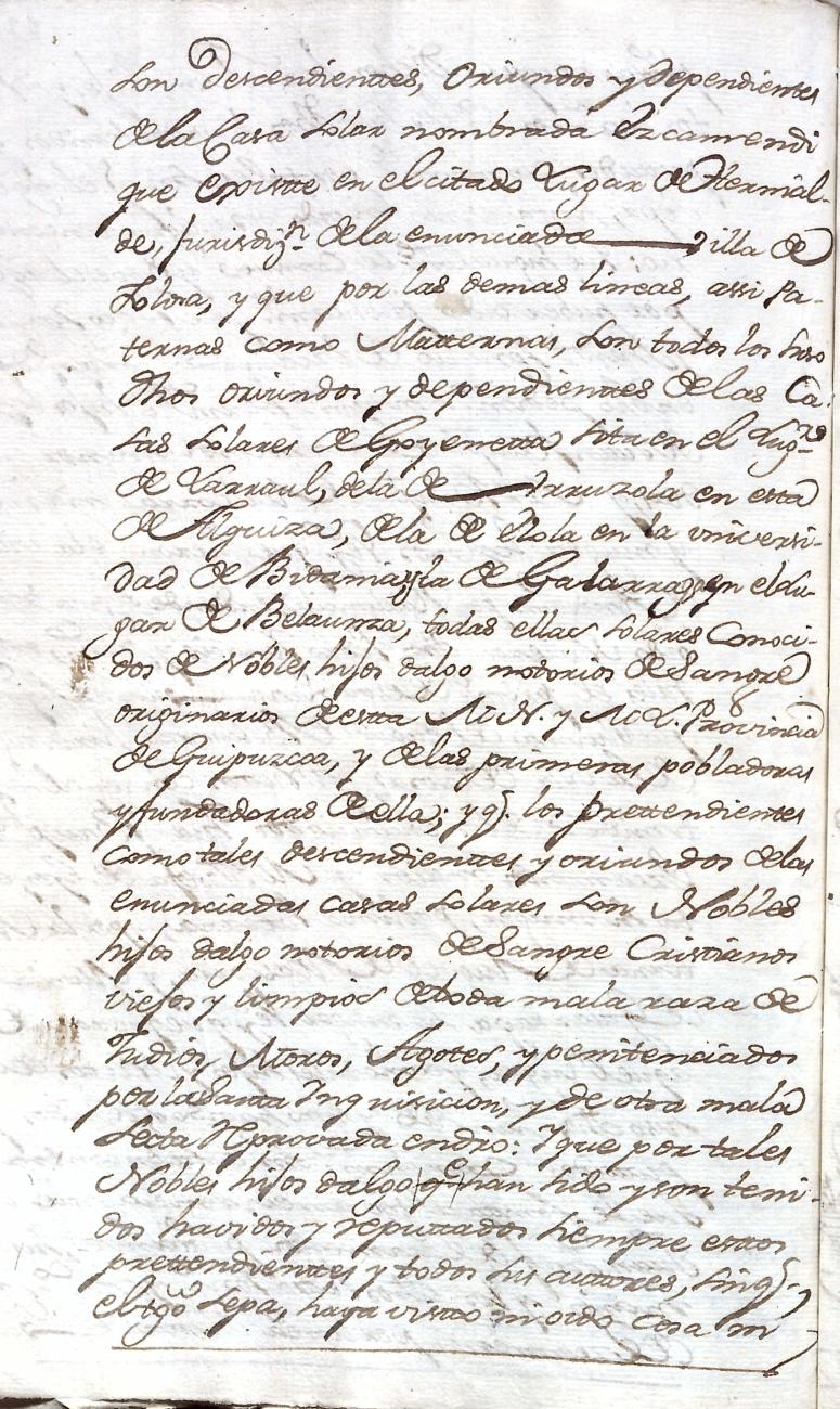 Hidalguias. Hidalguía de Juan José de Ezcamendi y Elola, descendiente de la casa solar de Ezcamendi de Hernialde.