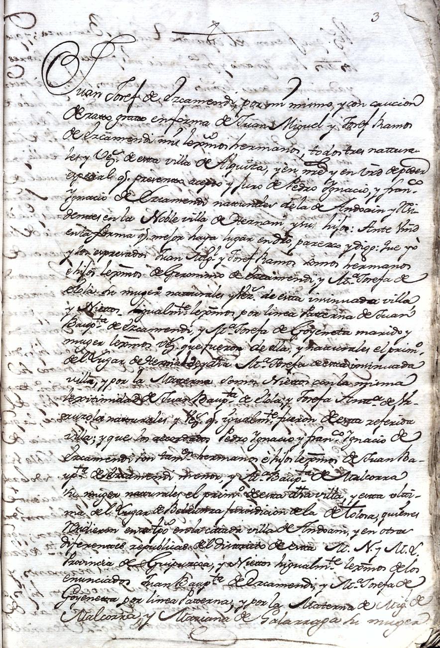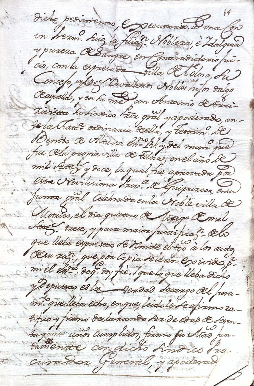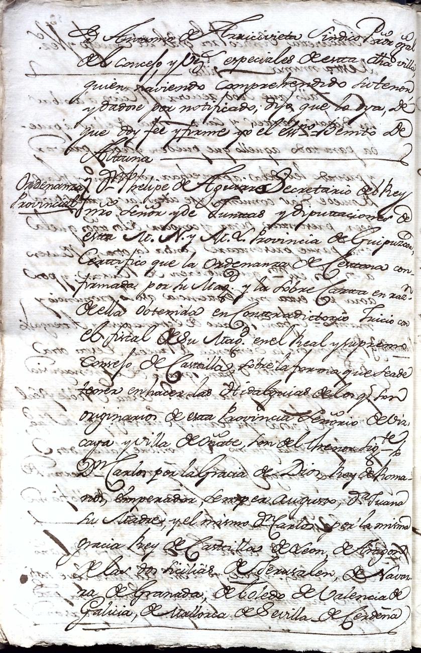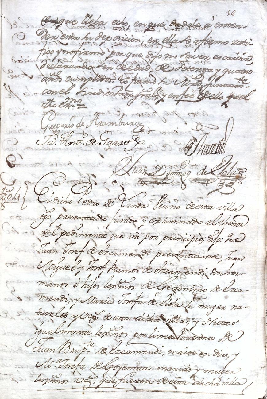 Hidalguias. Hidalguía de Juan José de Ezcamendi y Elola, descendiente de la casa solar de Ezcamendi de Hernialde.
