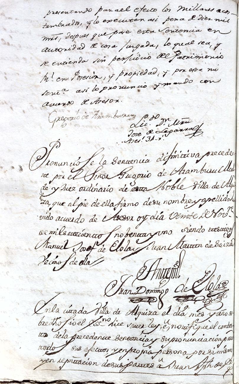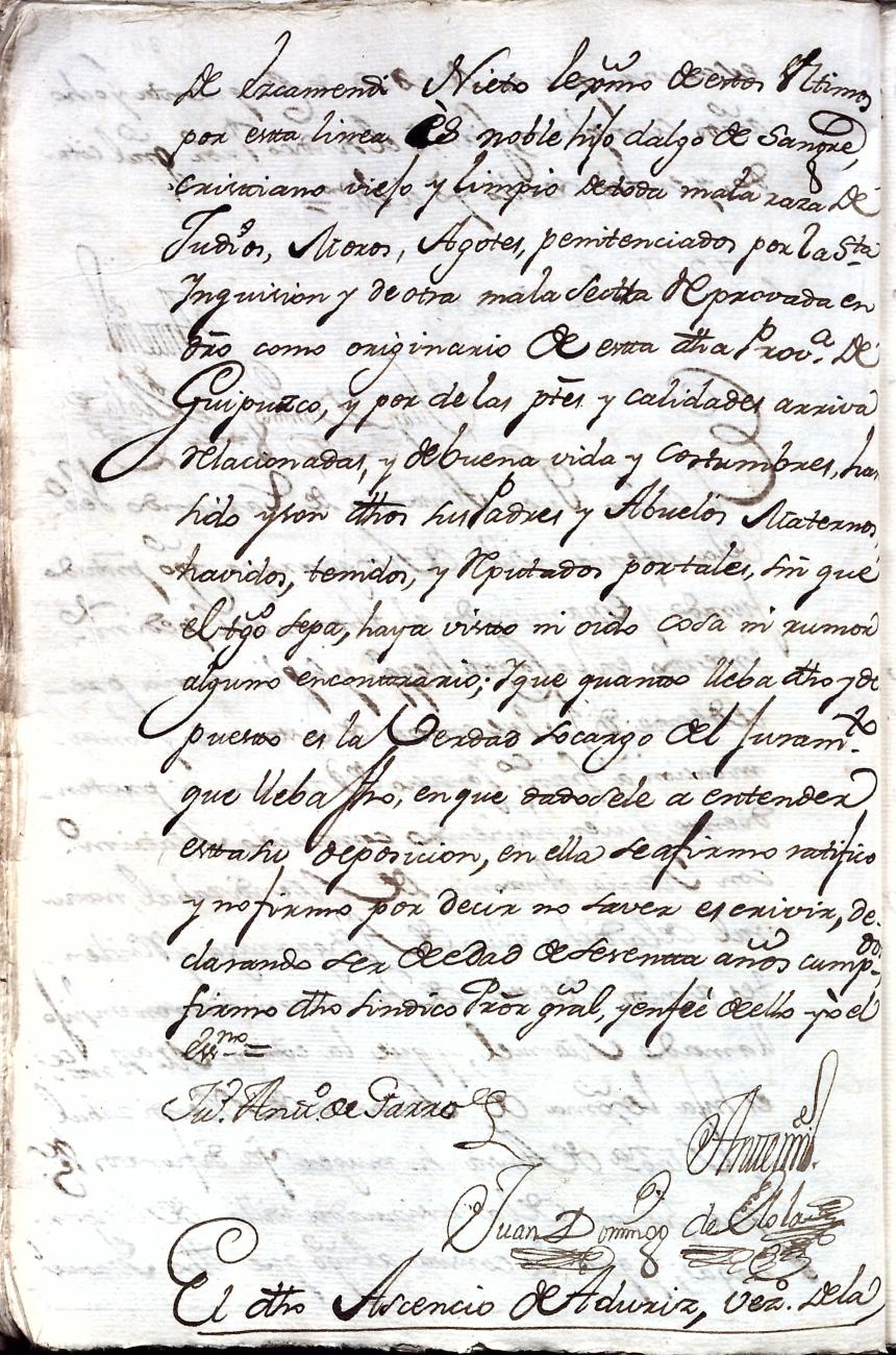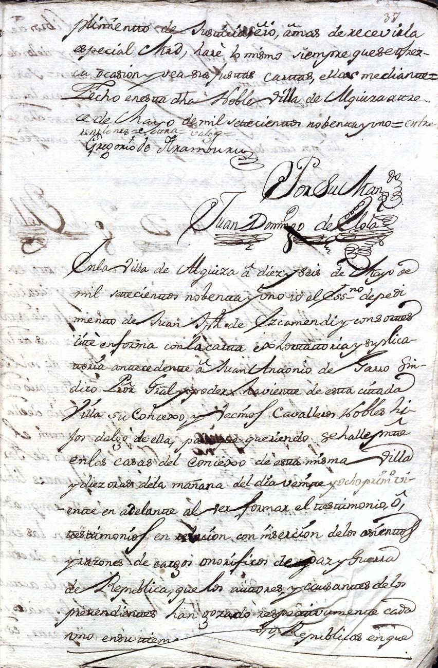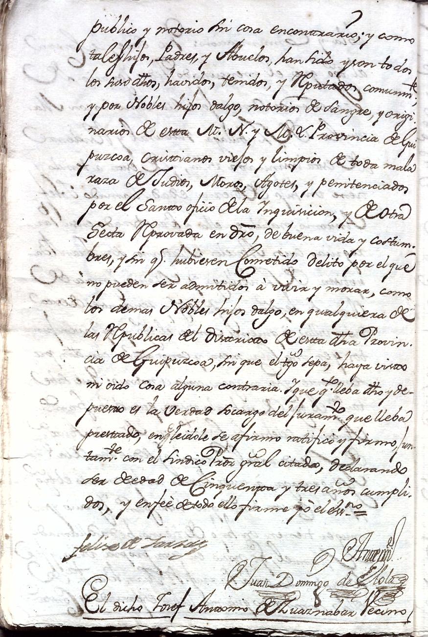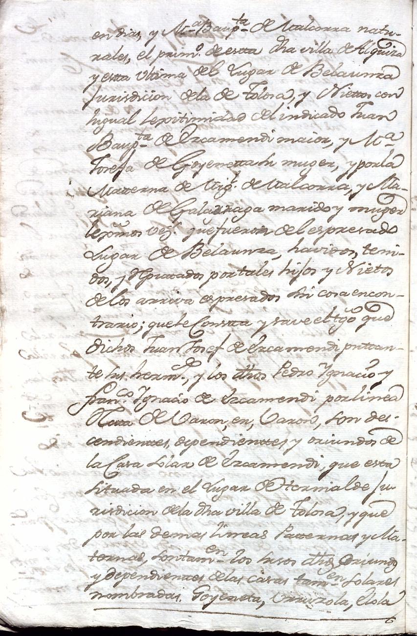 Hidalguias. Hidalguía de Juan José de Ezcamendi y Elola, descendiente de la casa solar de Ezcamendi de Hernialde.