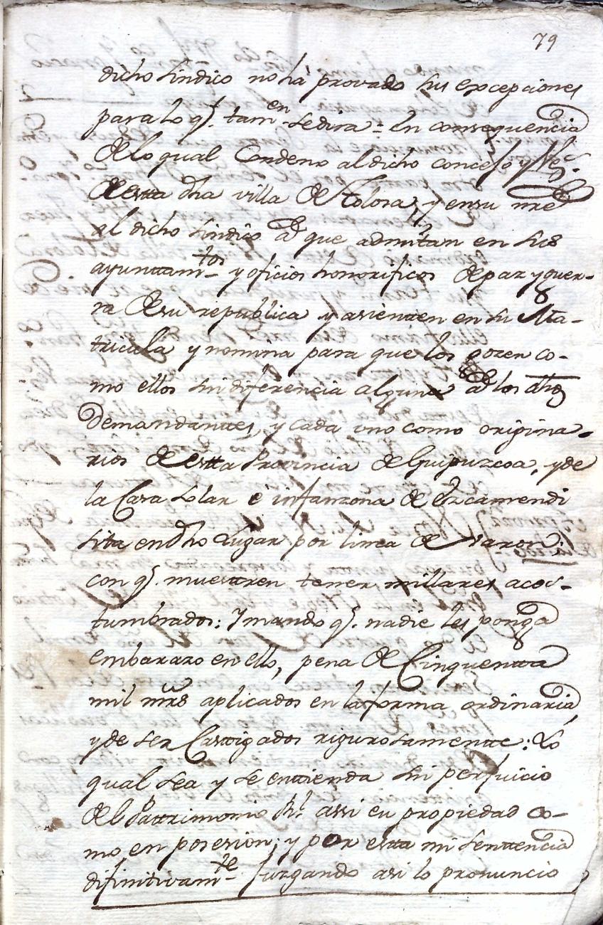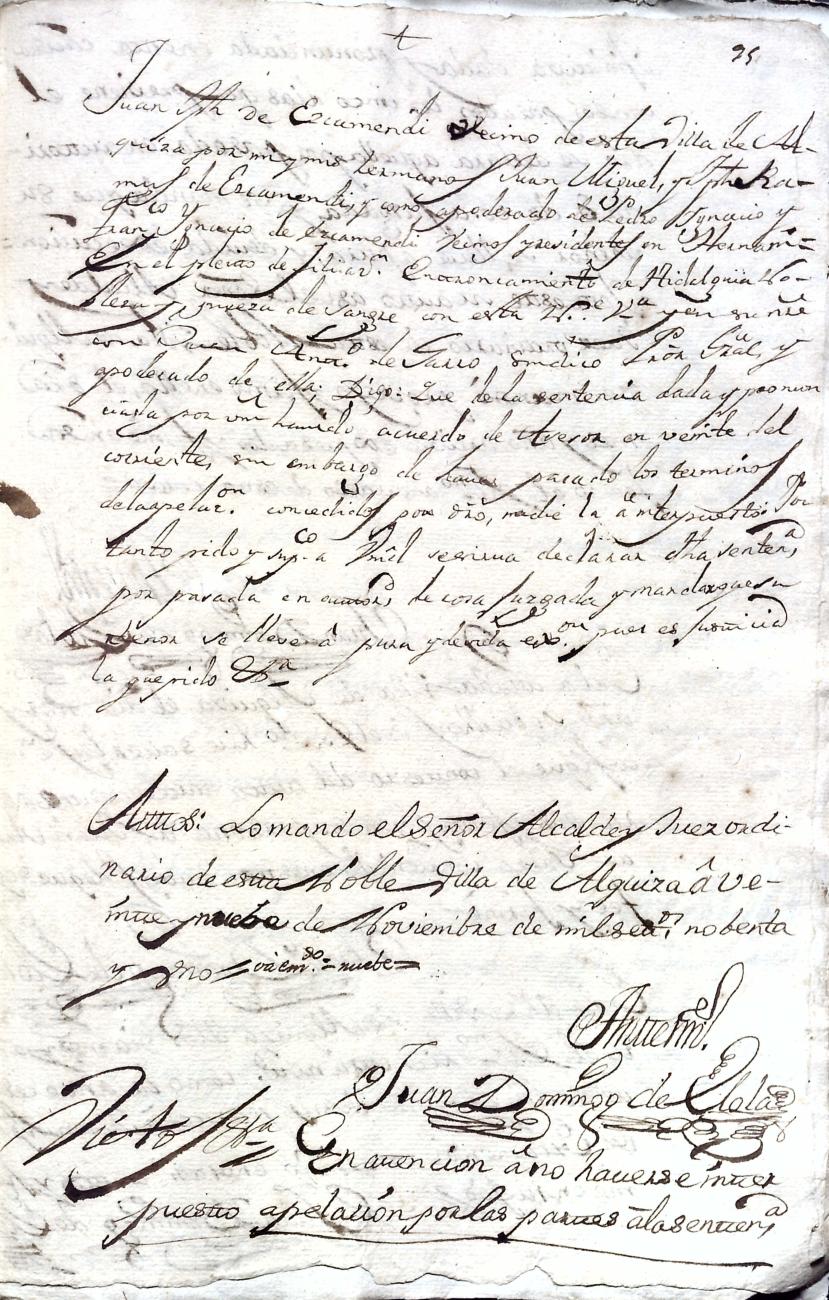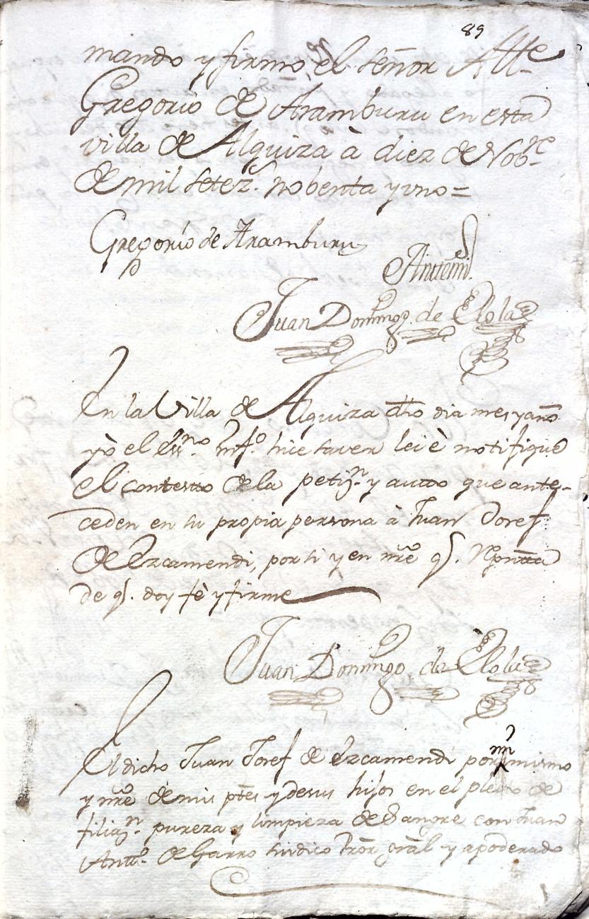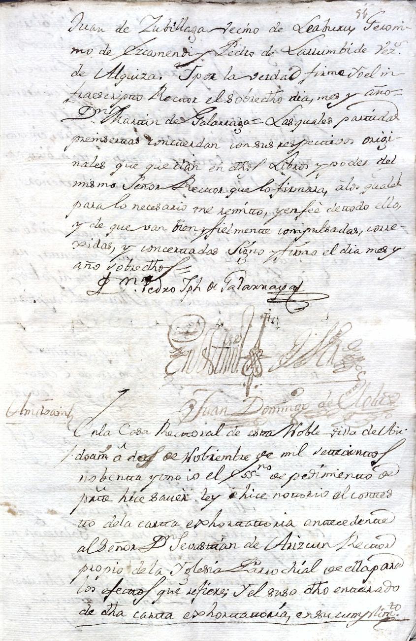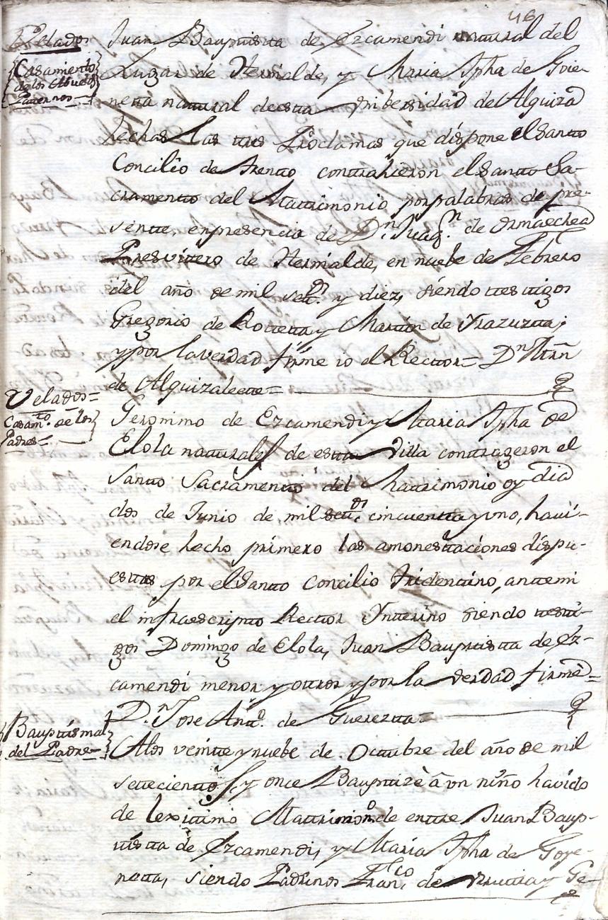 Hidalguias. Hidalguía de Juan José de Ezcamendi y Elola, descendiente de la casa solar de Ezcamendi de Hernialde.