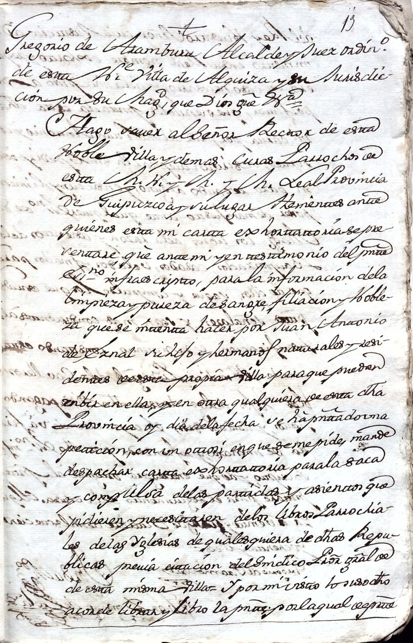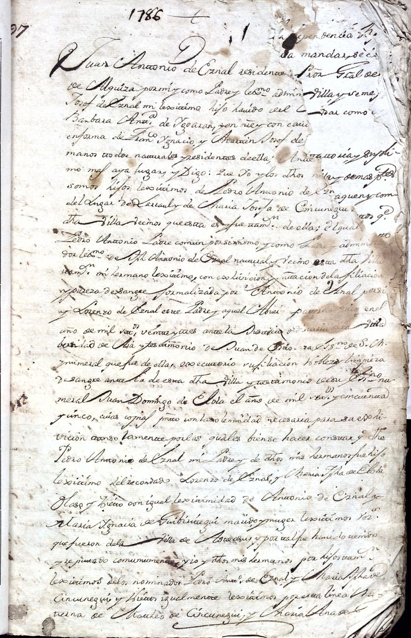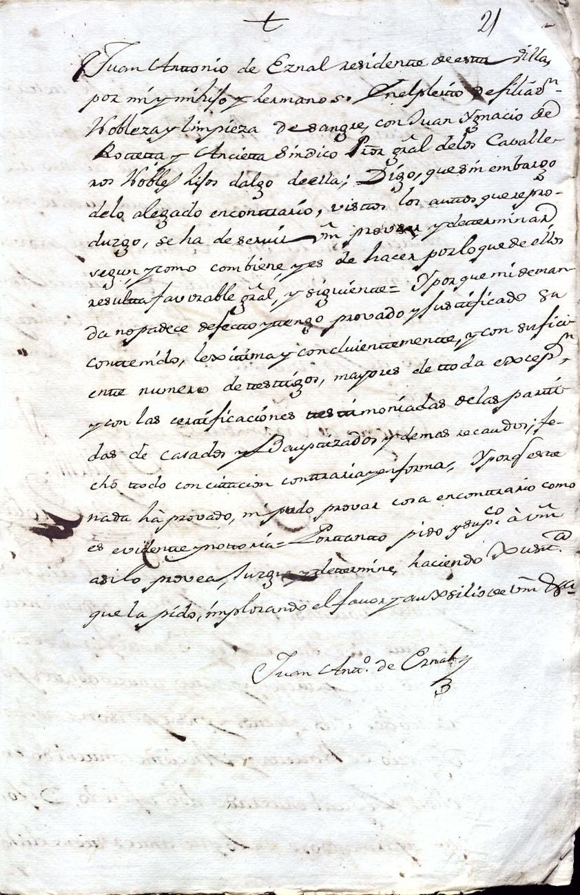 Hidalguias. Filiación de José Eznal e Igoaran, descendiente de la casa solar de Eznal de Aizarna.