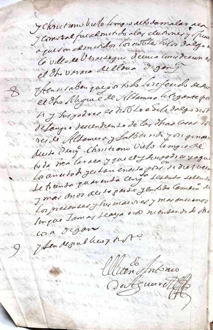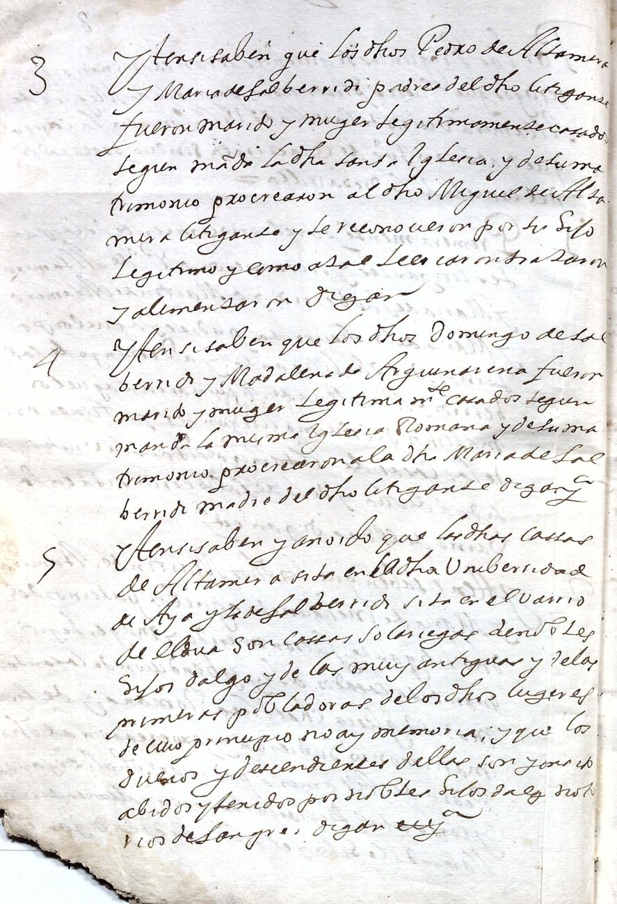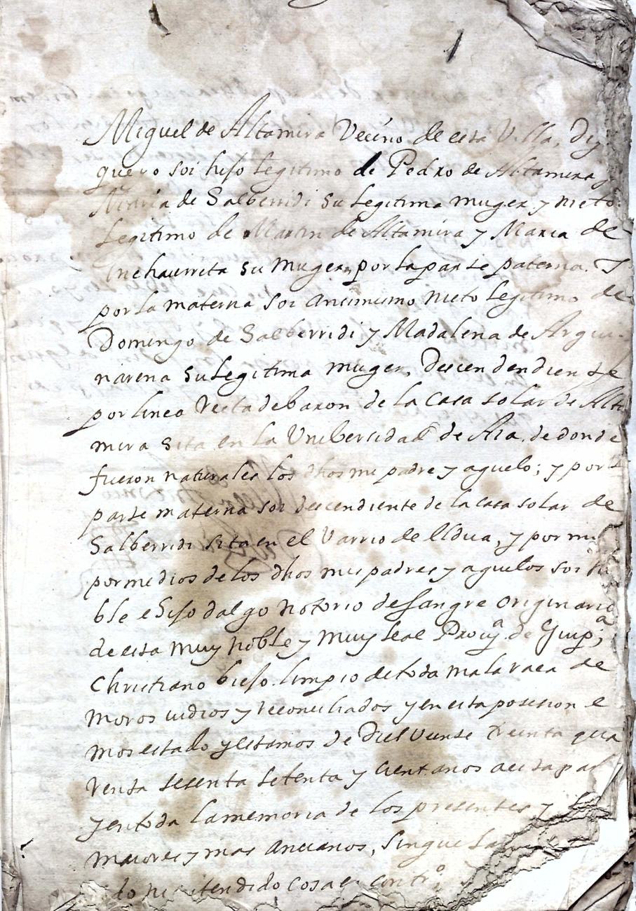 Hidalguias. Hidalguía de Miguel de Altamira y Salberridi, descendiente de las casas solares del mismo nombre sitas en Aya y Elduayen respectivamente.