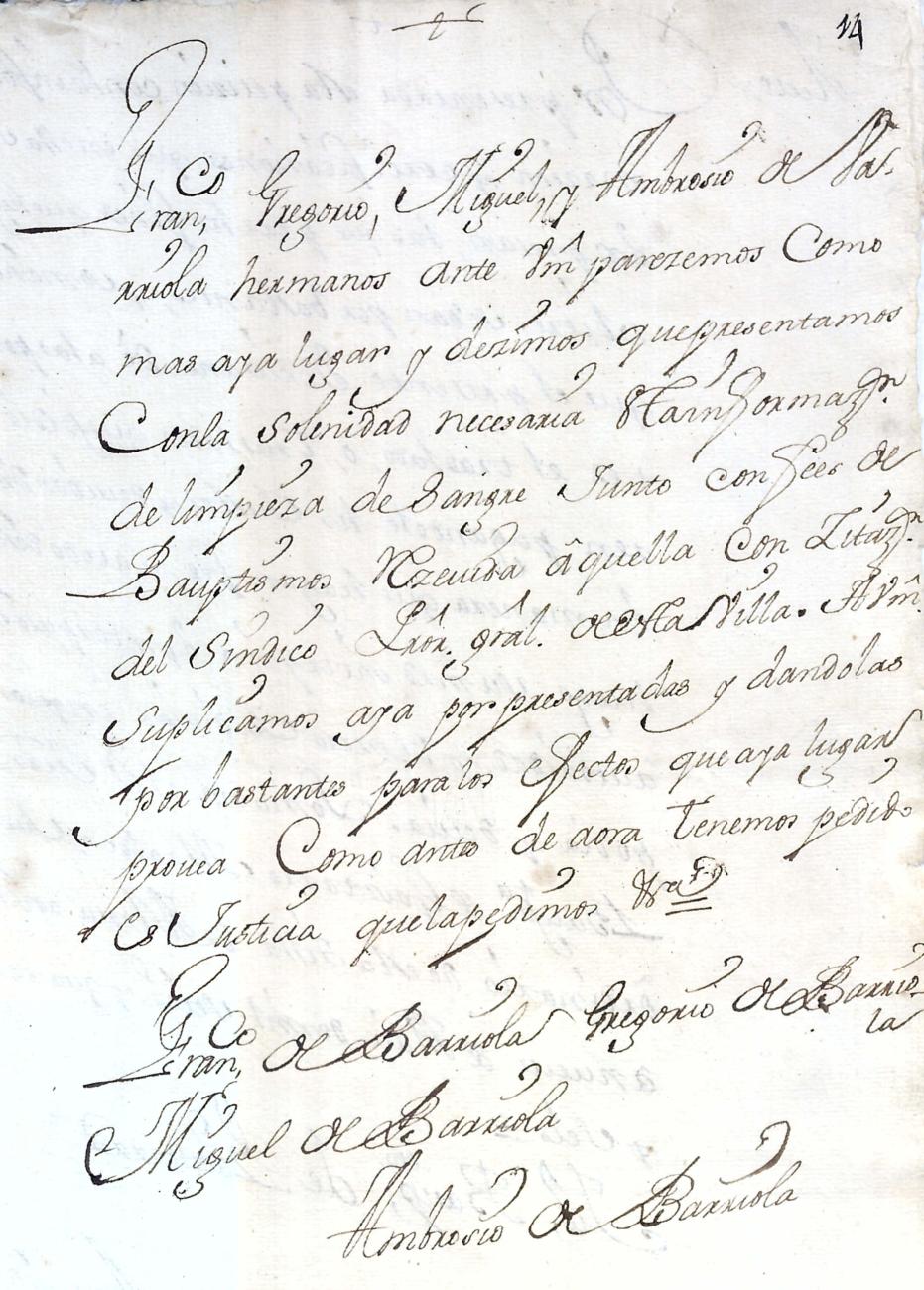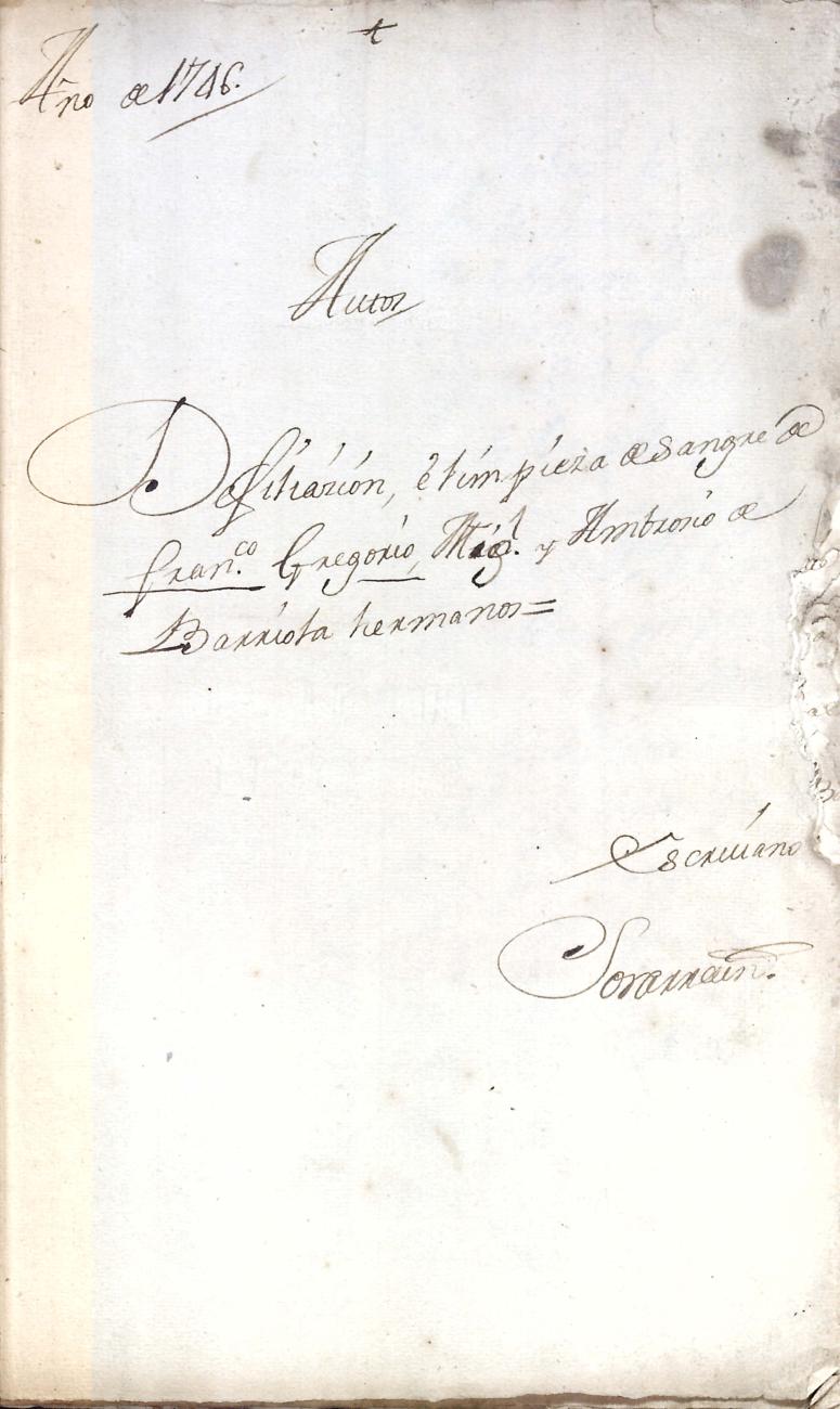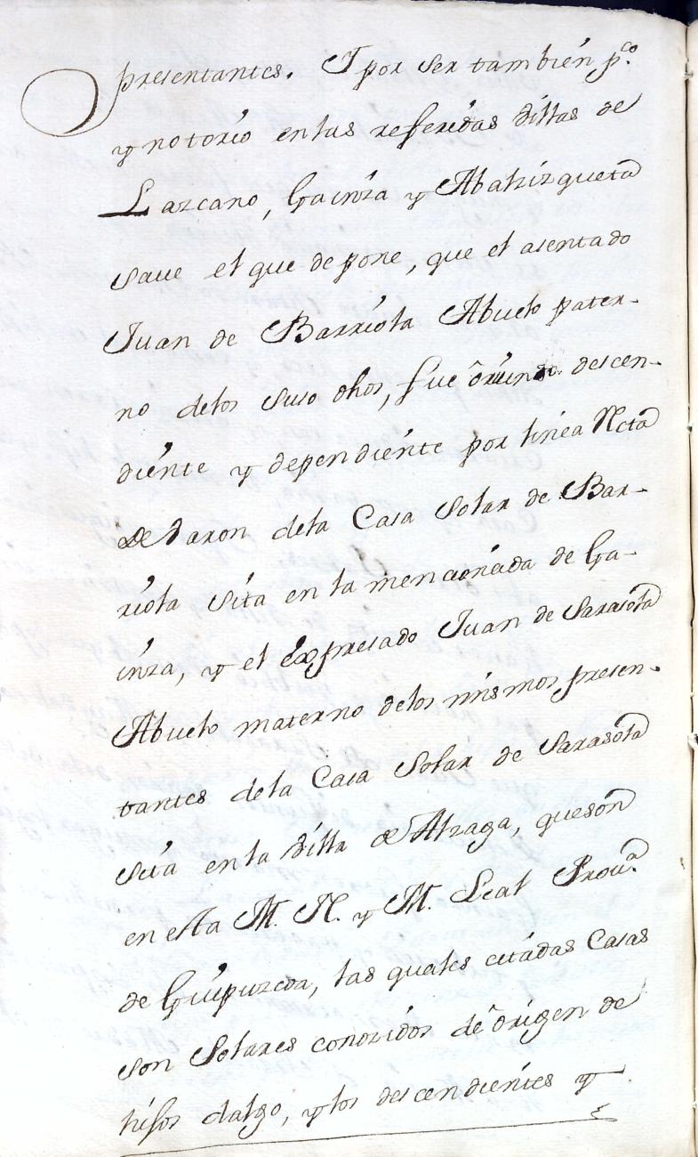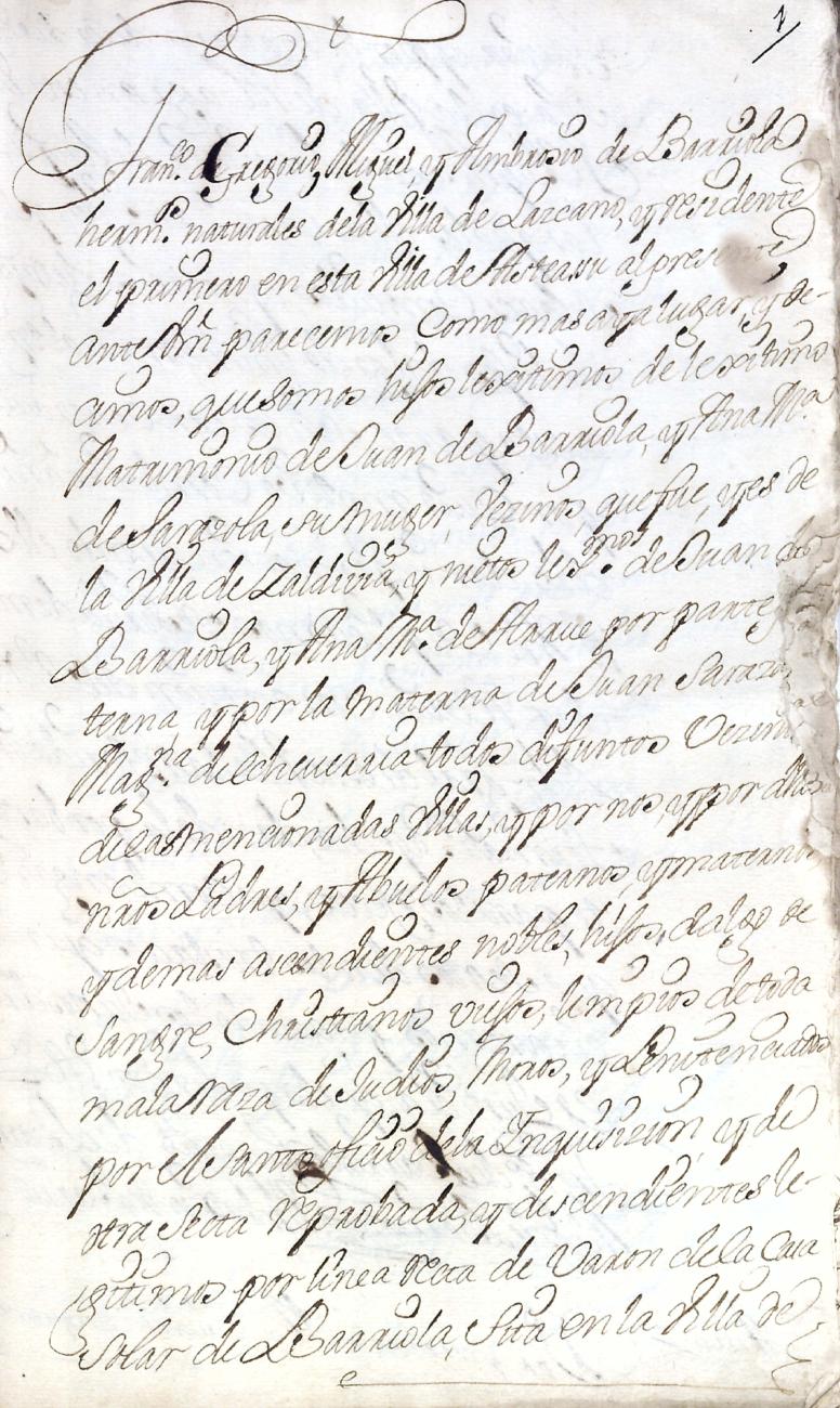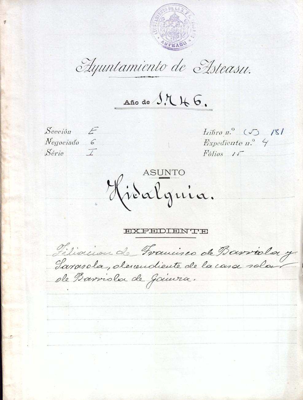 Hidalguias. Filiación de Francisco de Barriola y Sarasola, descendiente de la casa solar de Barriola de Gainza.