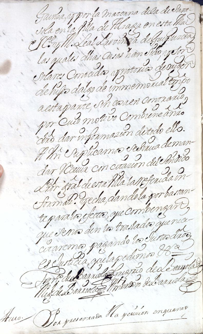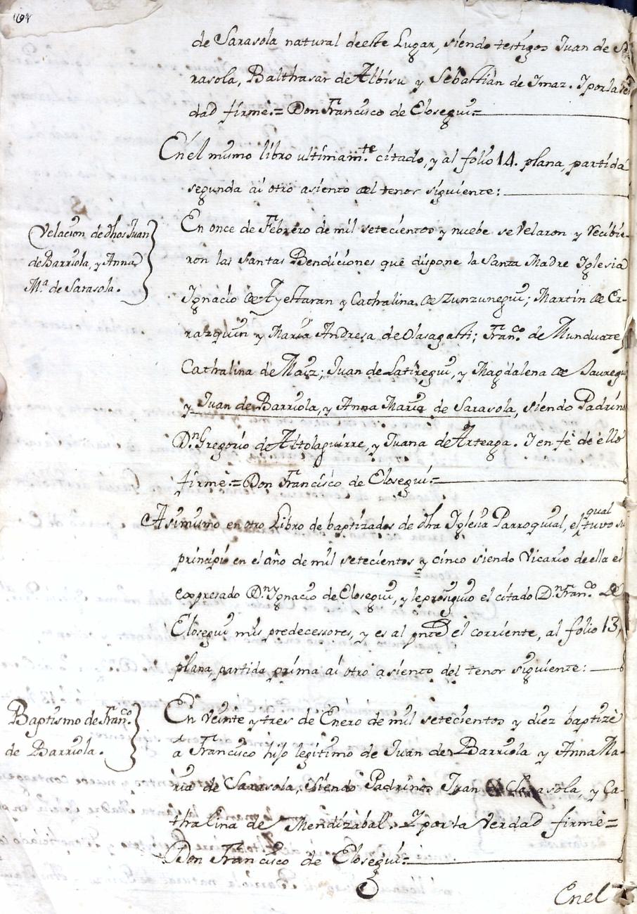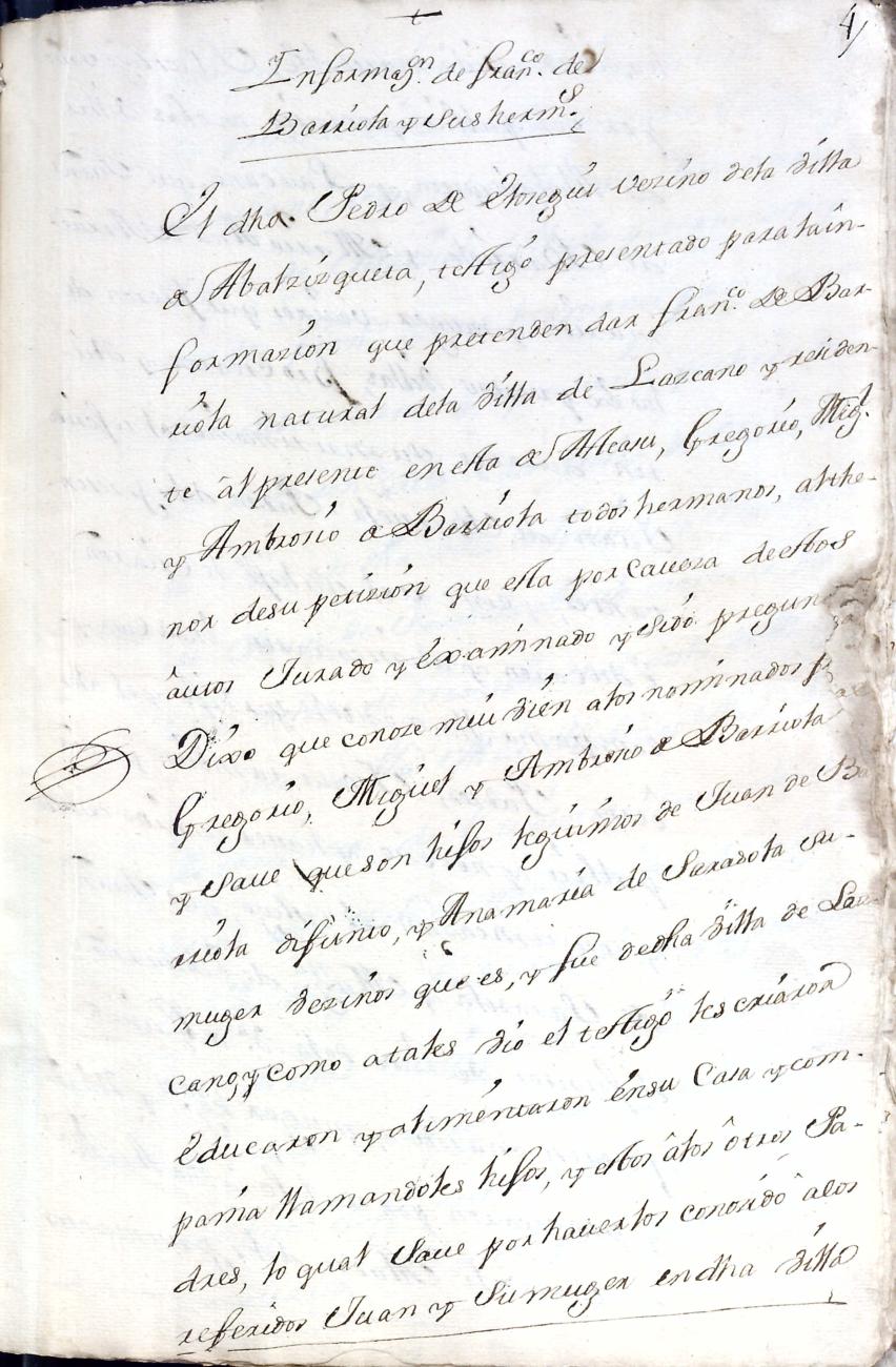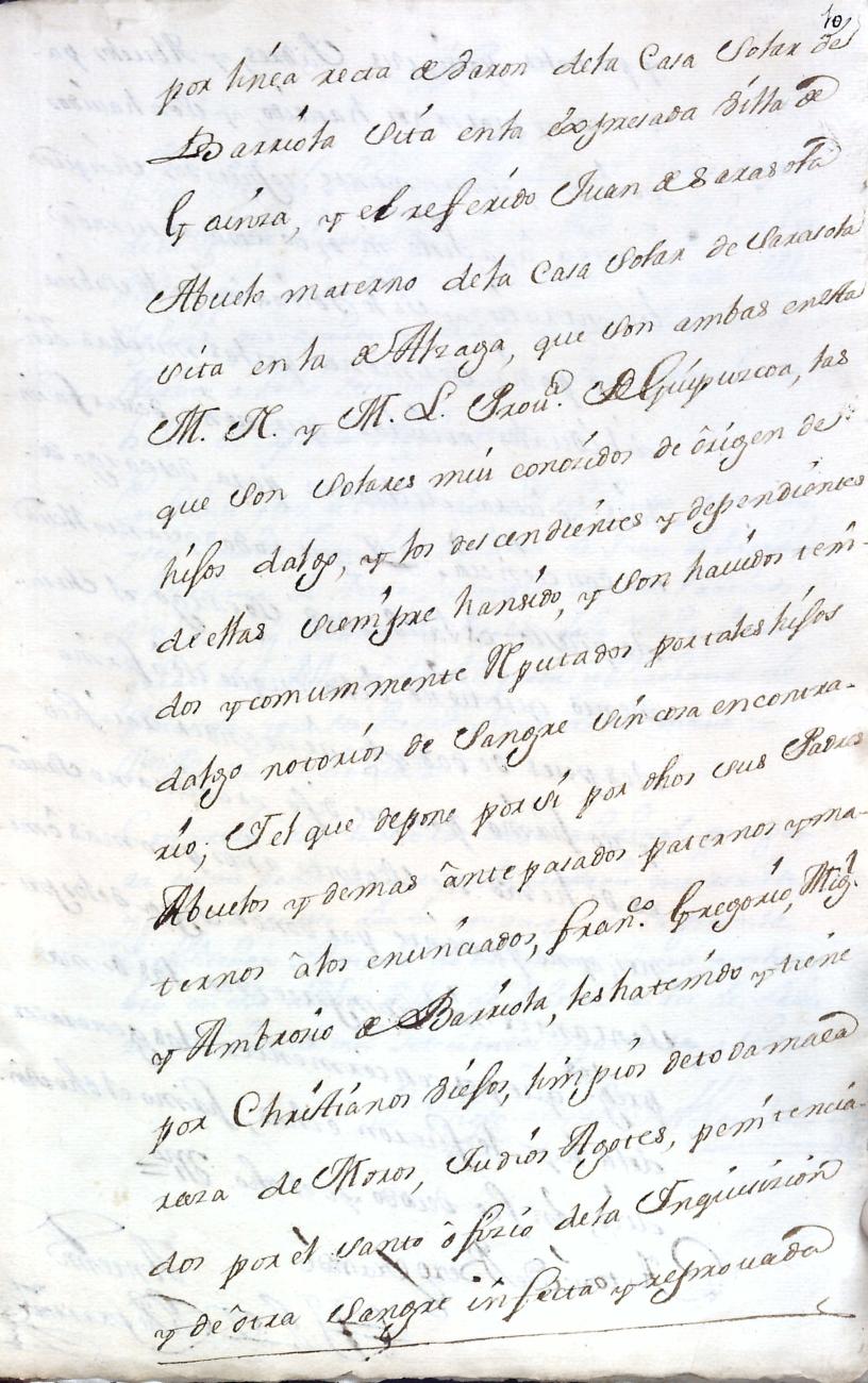 Hidalguias. Filiación de Francisco de Barriola y Sarasola, descendiente de la casa solar de Barriola de Gainza.