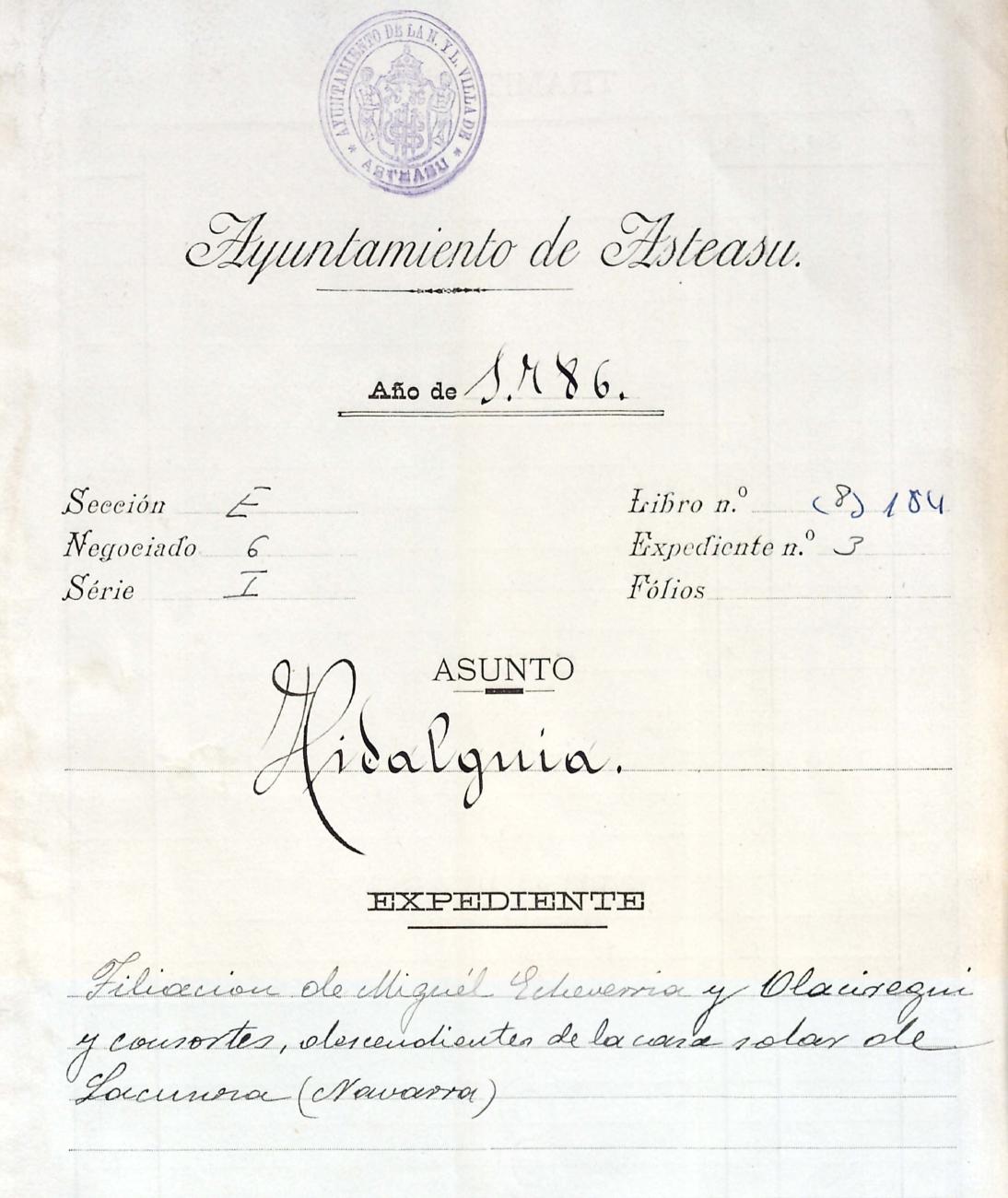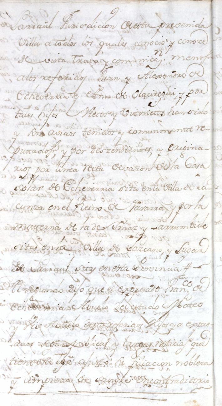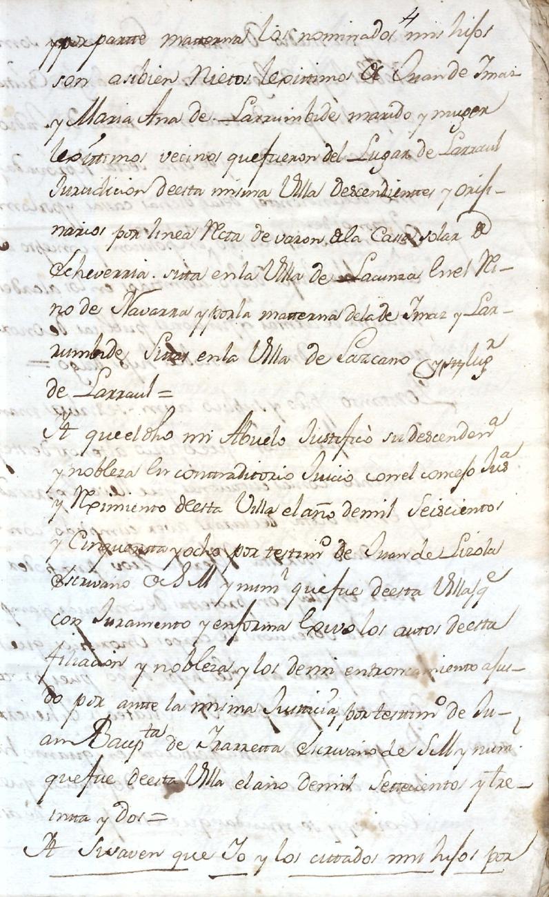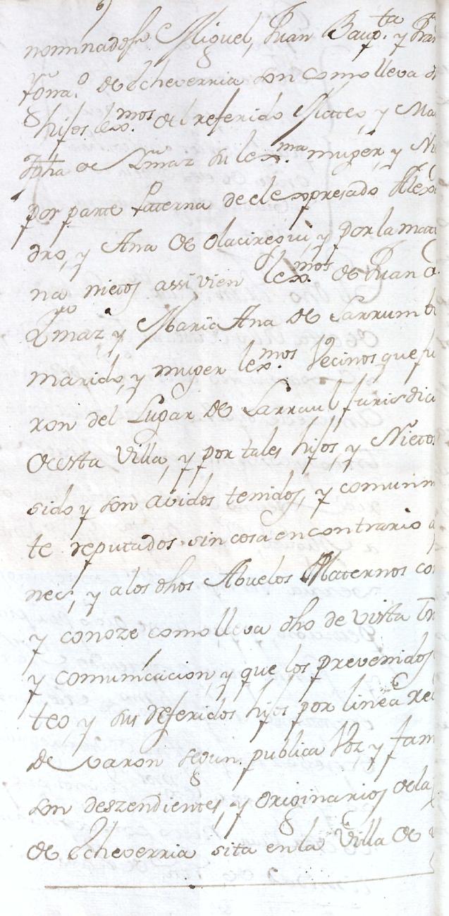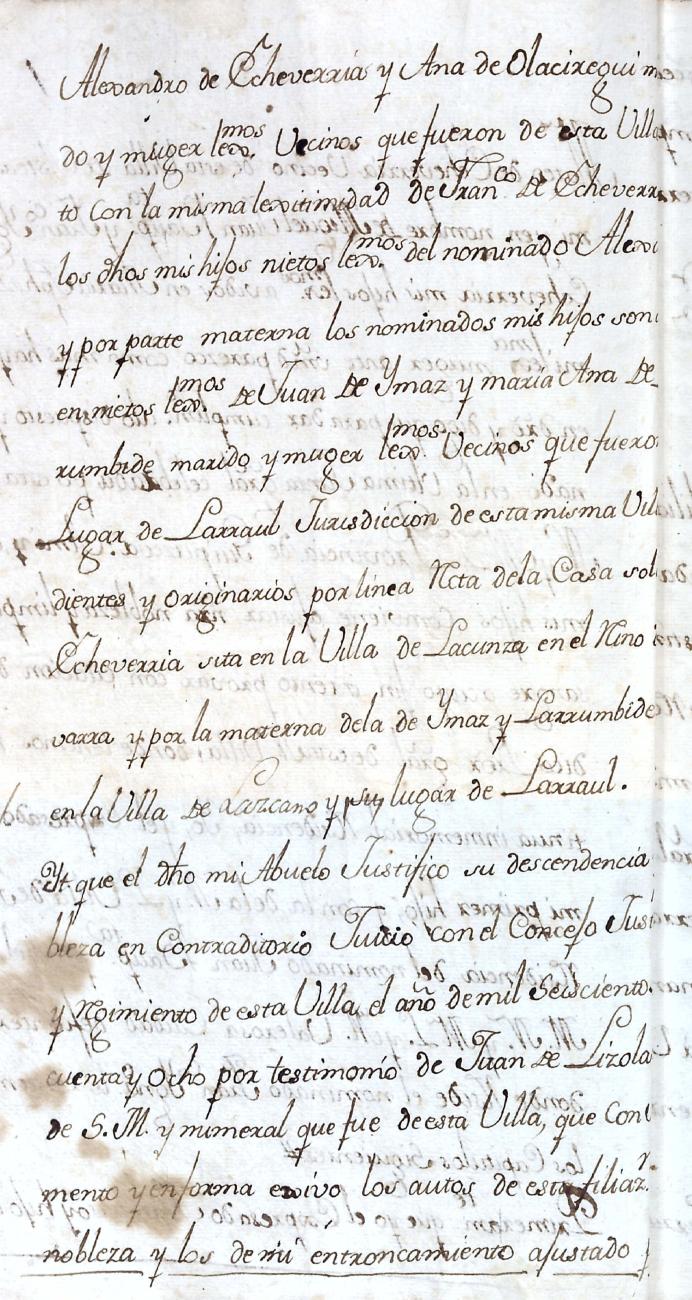 Hidalguias. Filiación de Miguel de Echeverria y Olaciregui y consortes descendientes de la casa solar de Lacunza (Navarra).