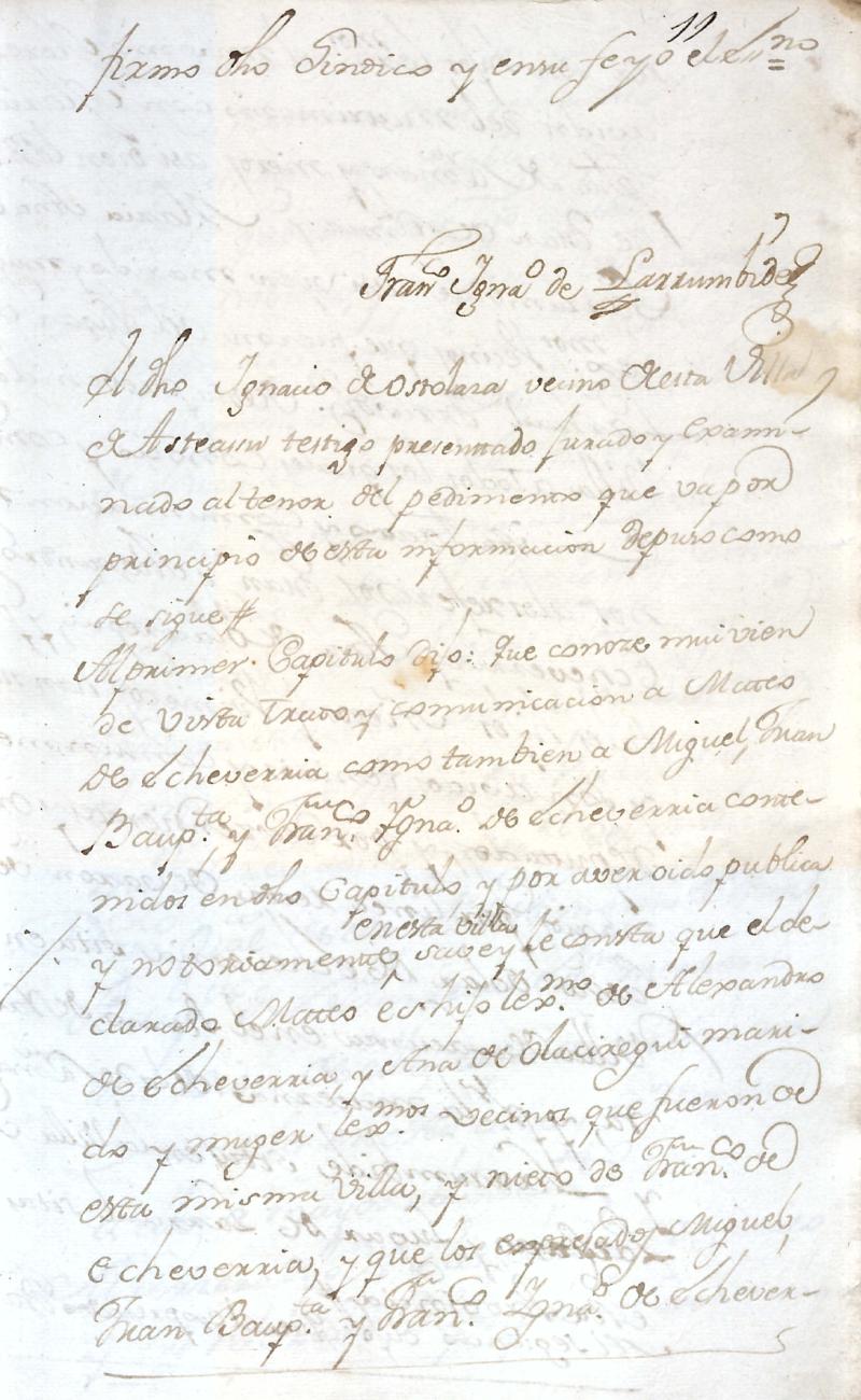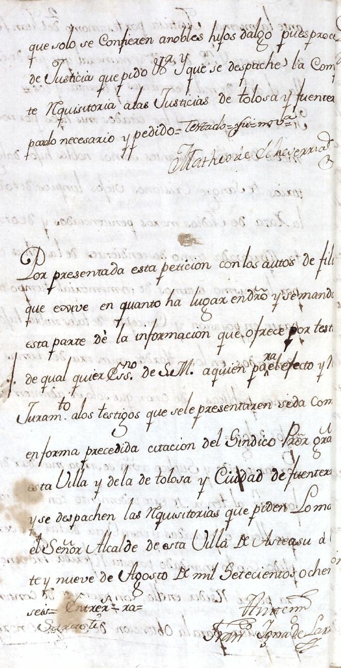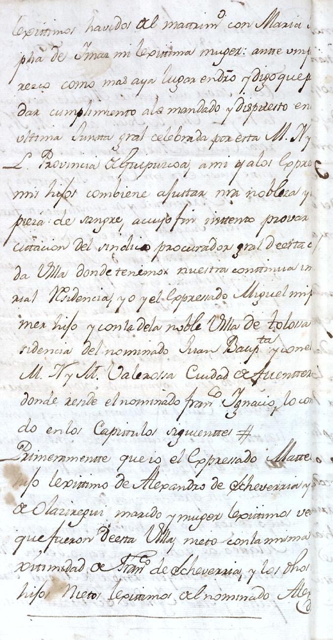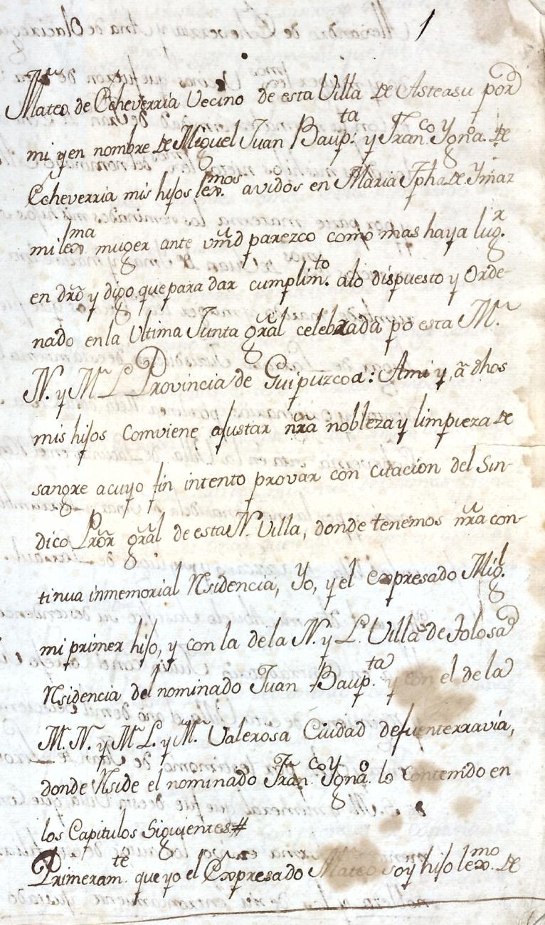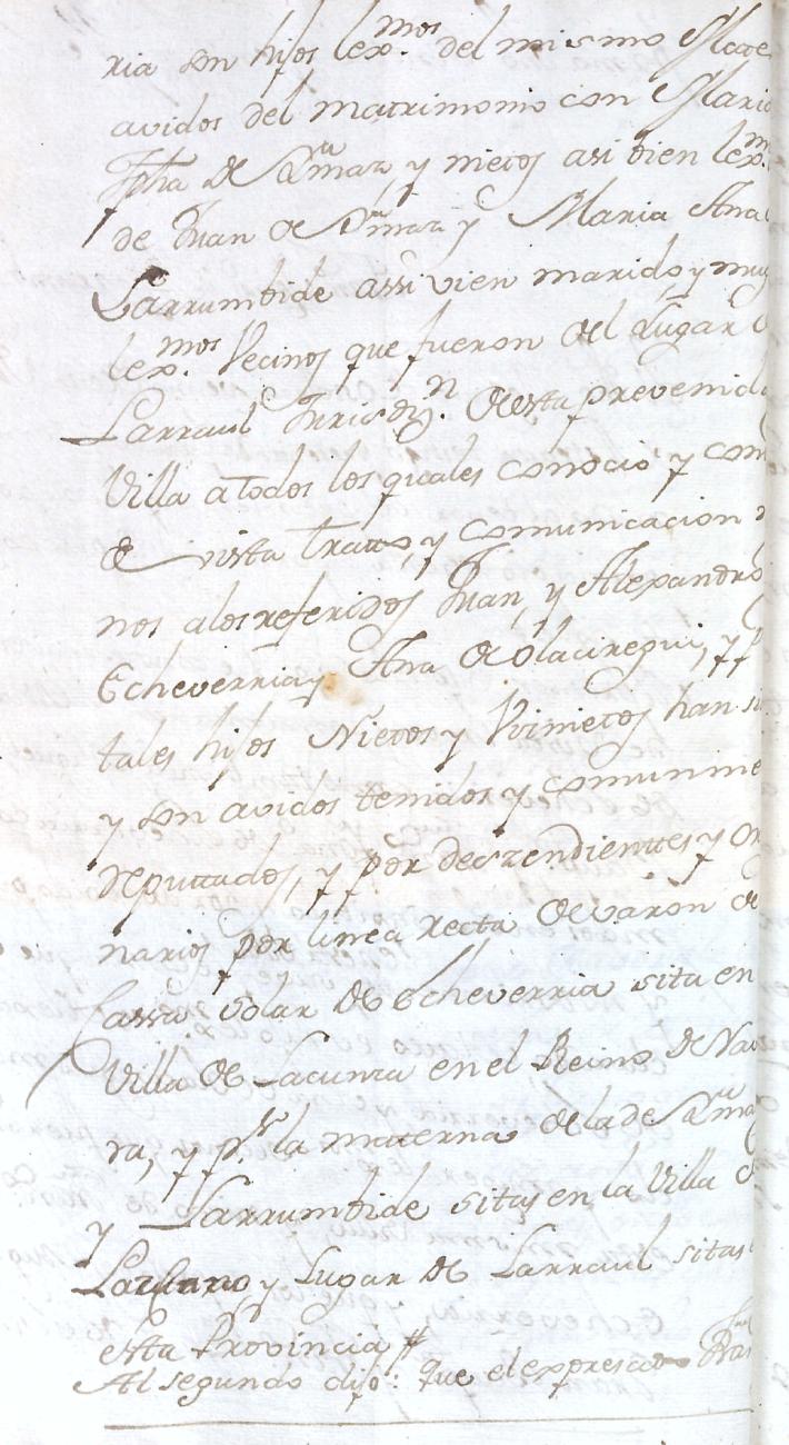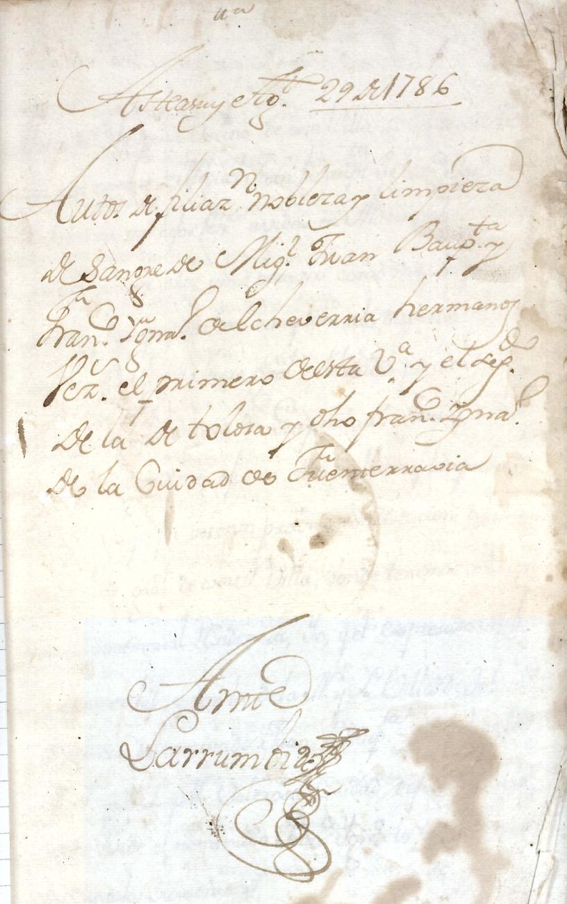 Hidalguias. Filiación de Miguel de Echeverria y Olaciregui y consortes descendientes de la casa solar de Lacunza (Navarra).