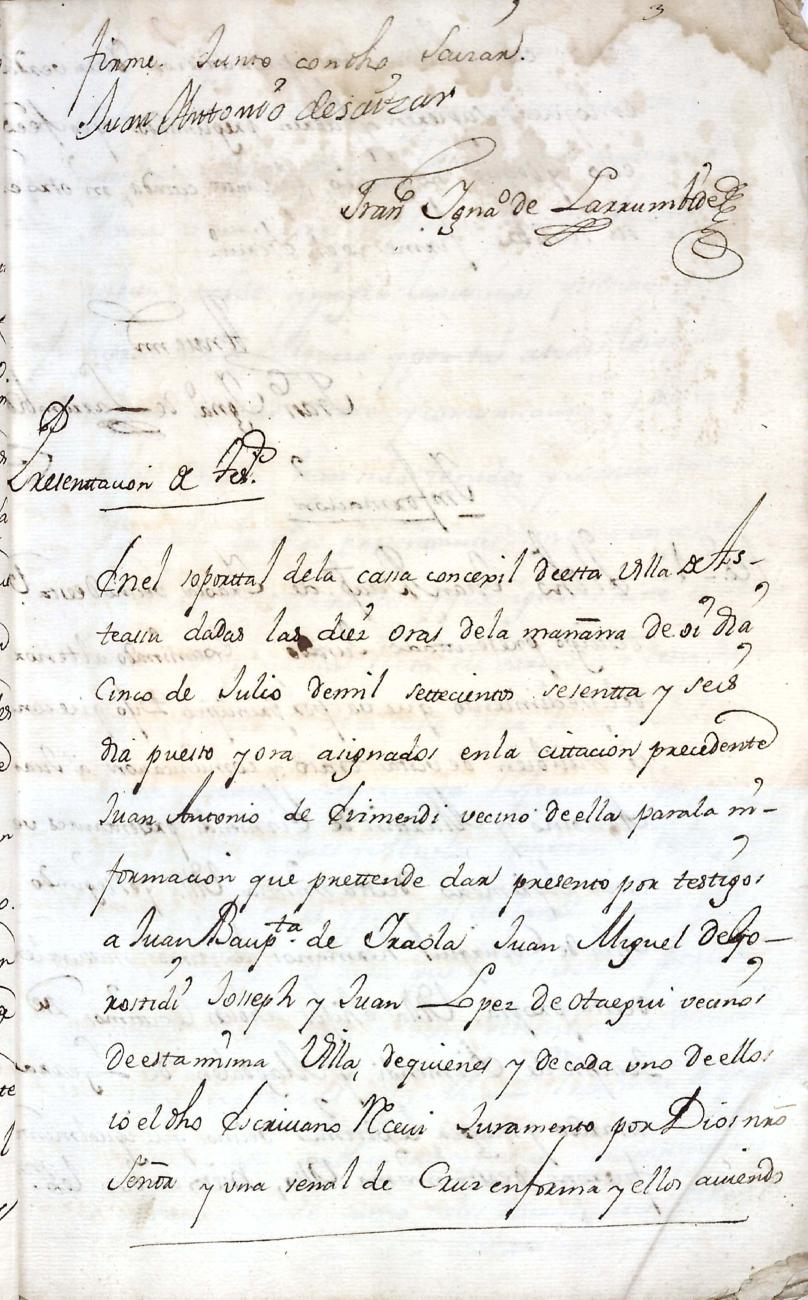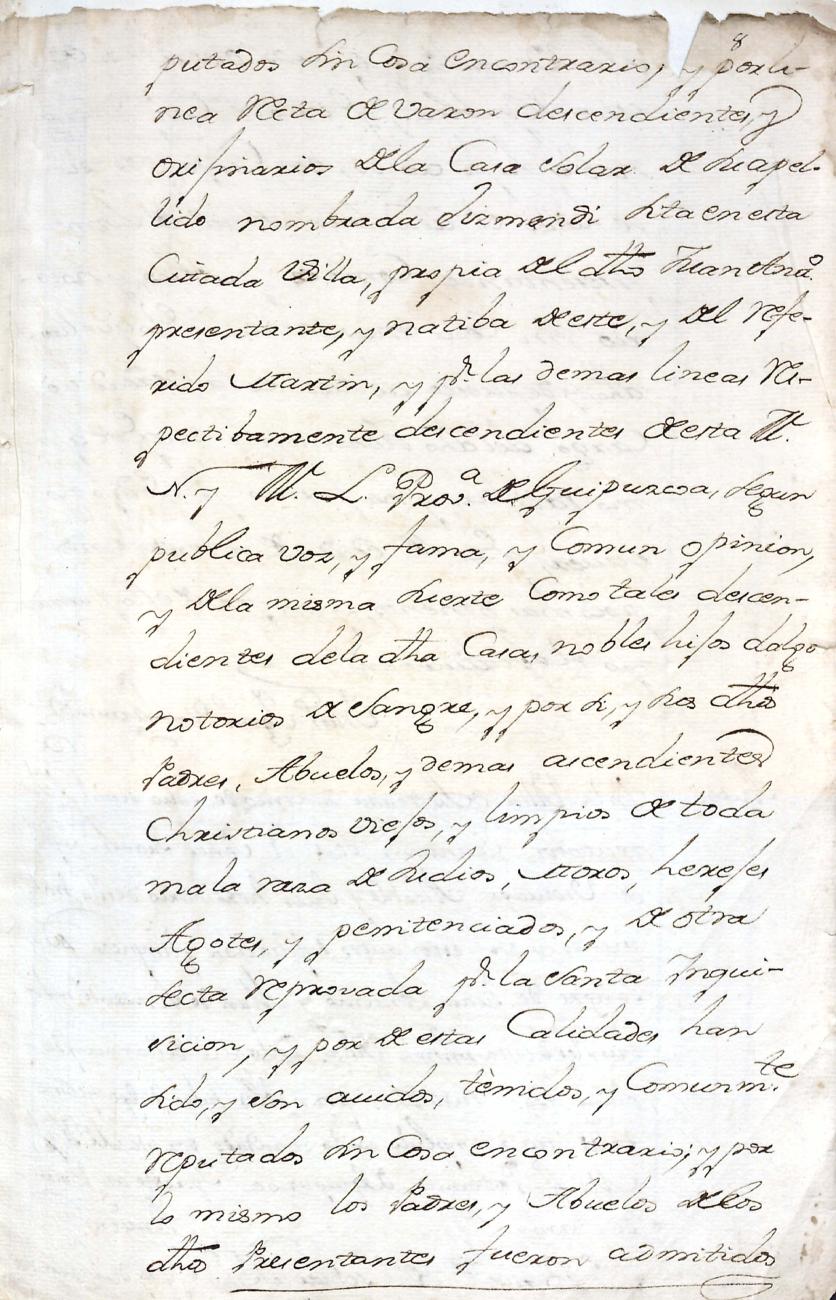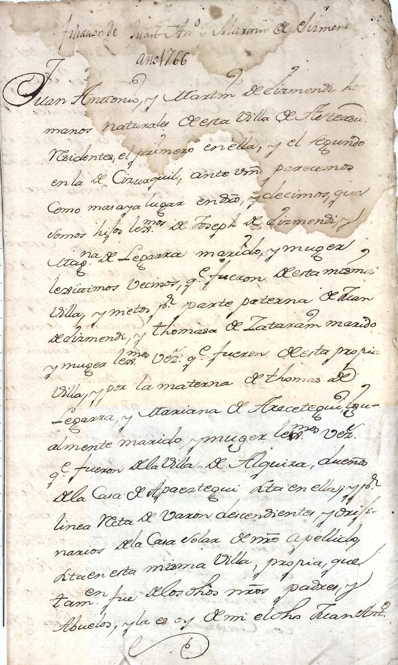 Hidalguias. Filiación de Juan Antonio y Martín de Eizmendi y Legarra, descendiente de la casa solar de Eizmendi de Asteasu.