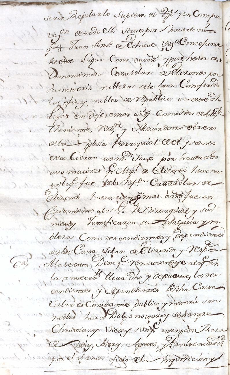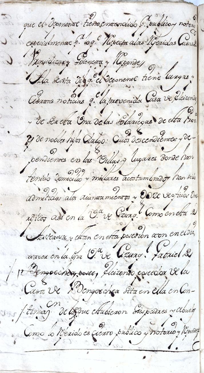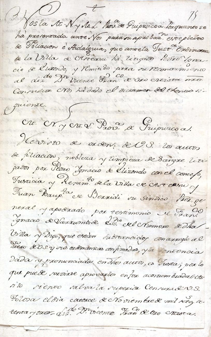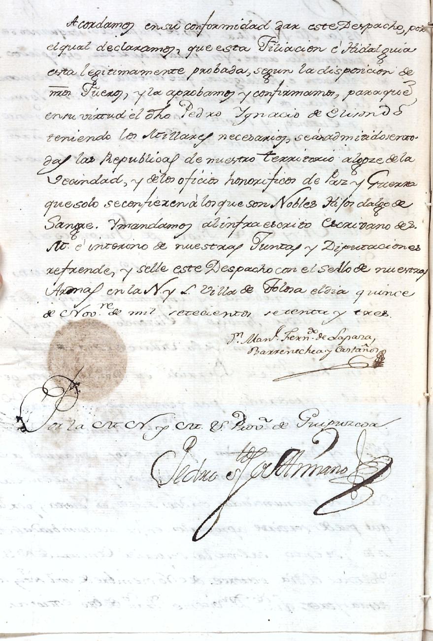 Hidalguias. Hidalguía de Pedro Ignacio de Eleizondo y Urquidizar, descendiente de la casa solar de Eleizondo de Berrobi.