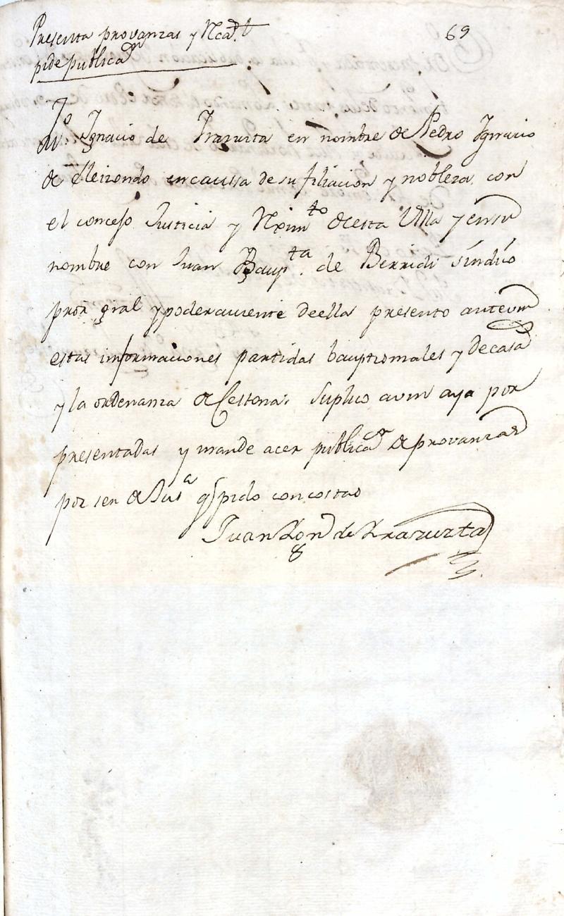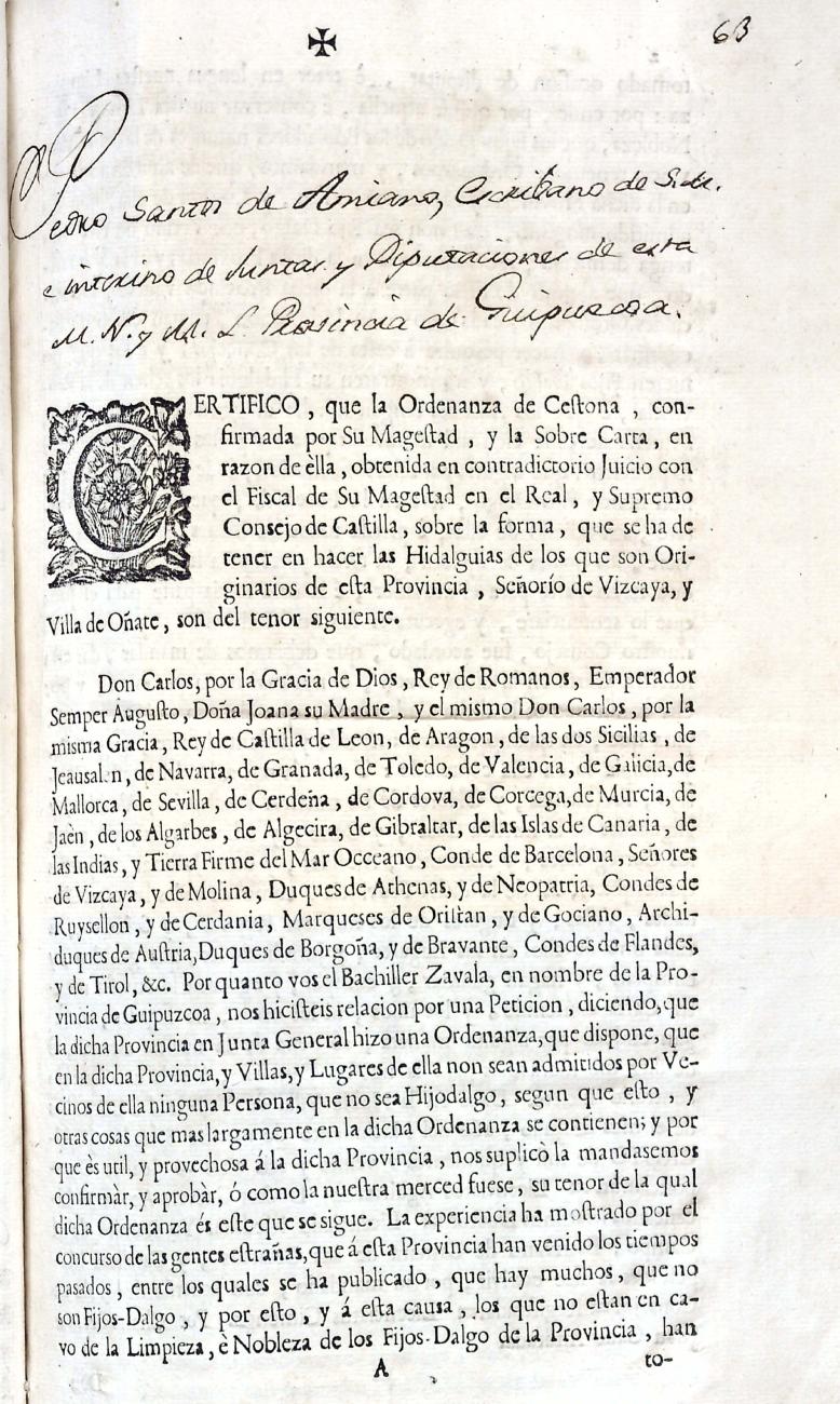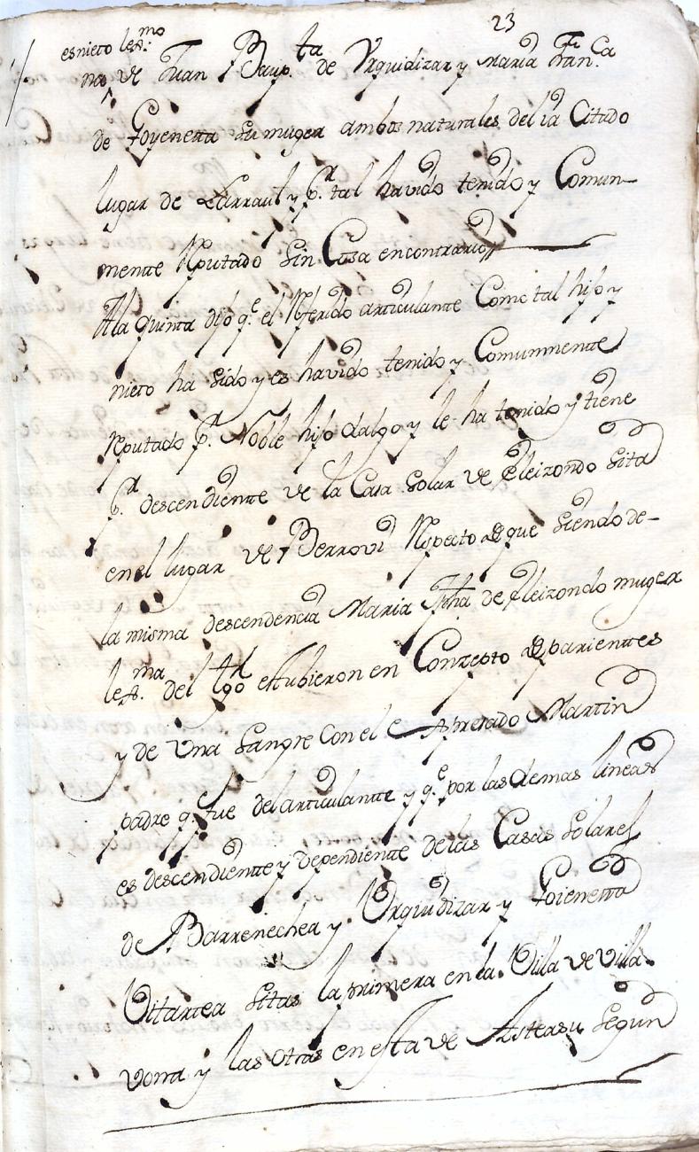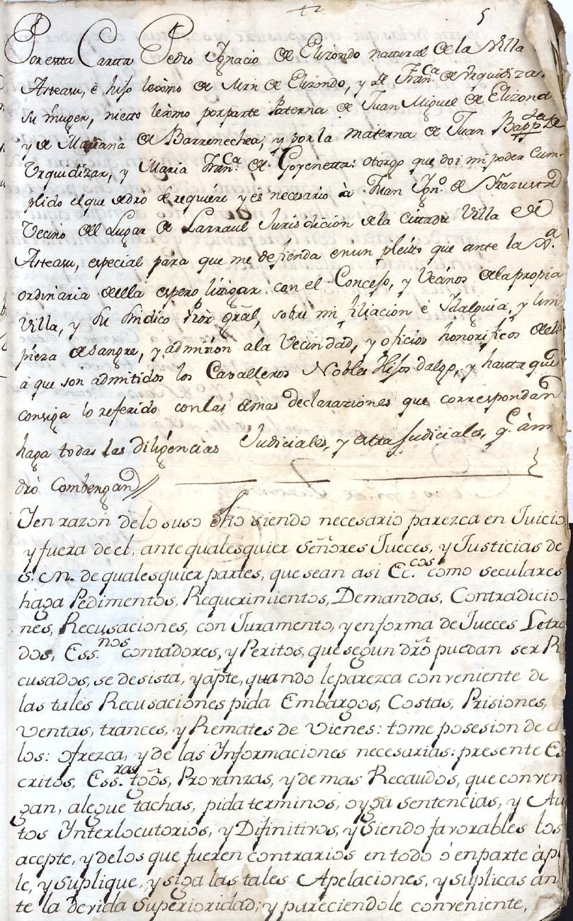 Hidalguias. Hidalguía de Pedro Ignacio de Eleizondo y Urquidizar, descendiente de la casa solar de Eleizondo de Berrobi.