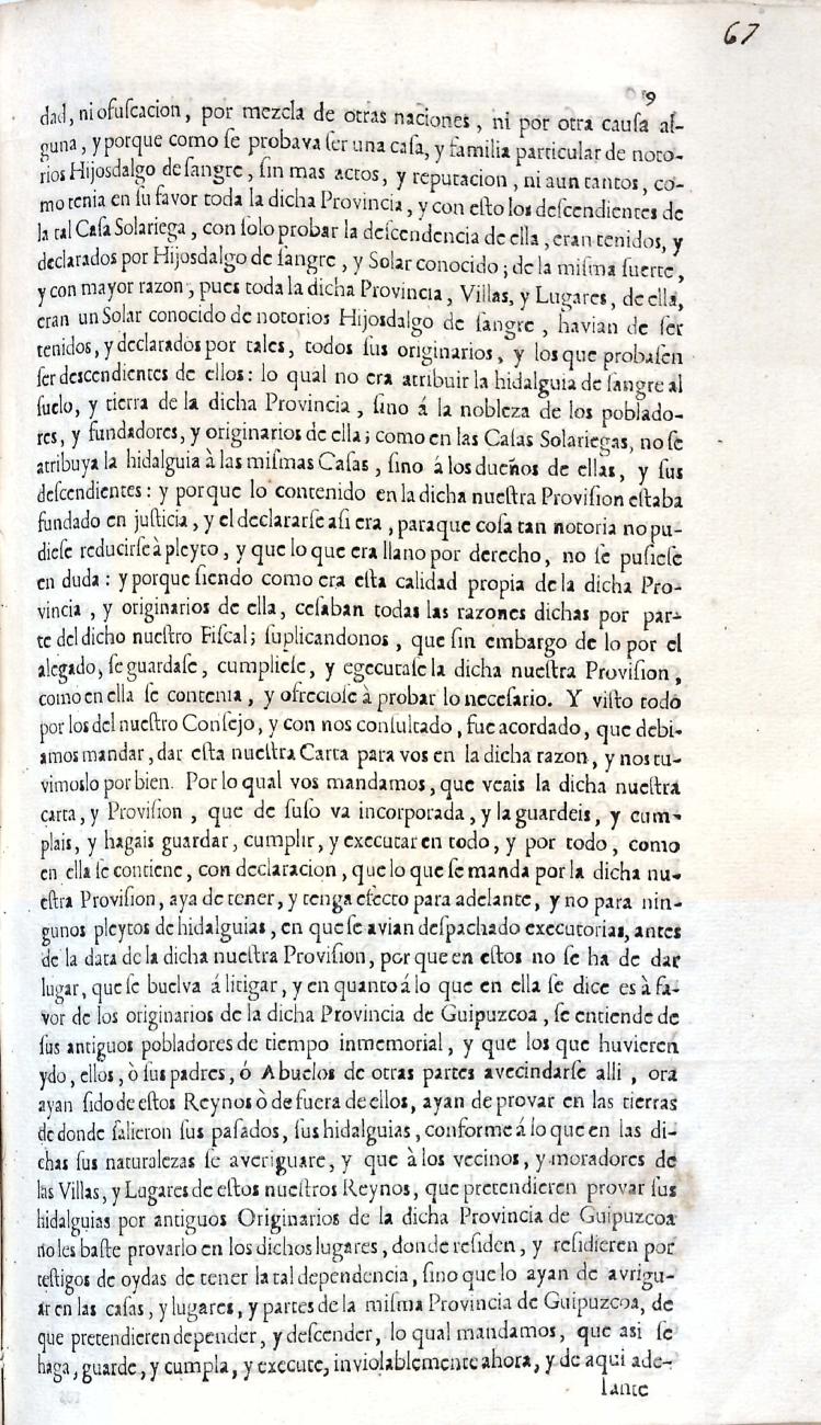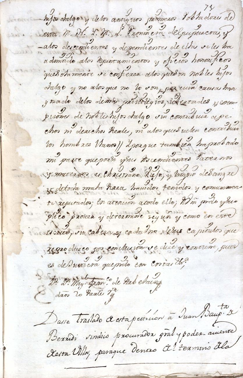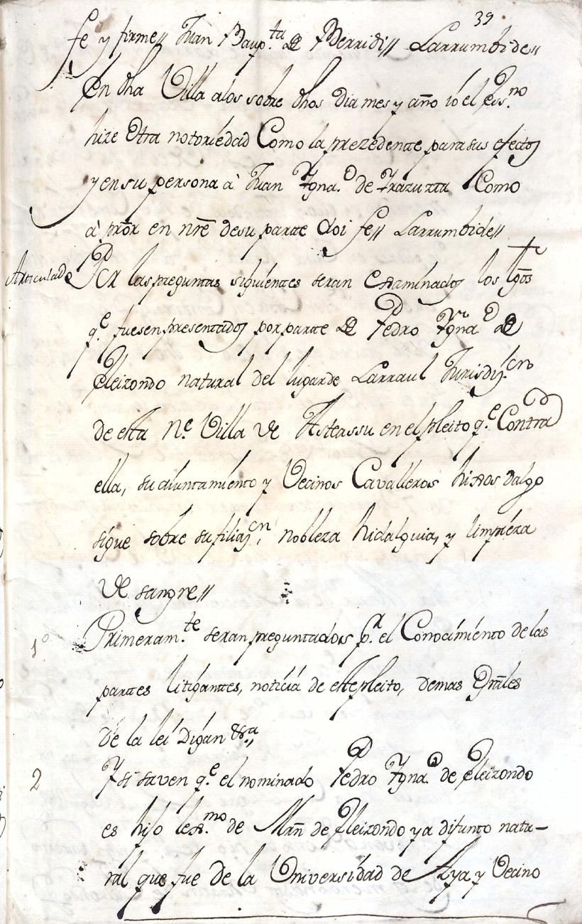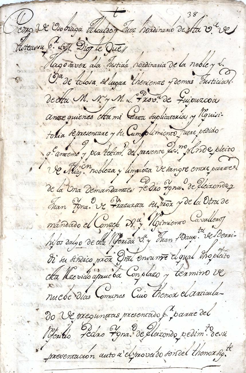 Hidalguias. Hidalguía de Pedro Ignacio de Eleizondo y Urquidizar, descendiente de la casa solar de Eleizondo de Berrobi.