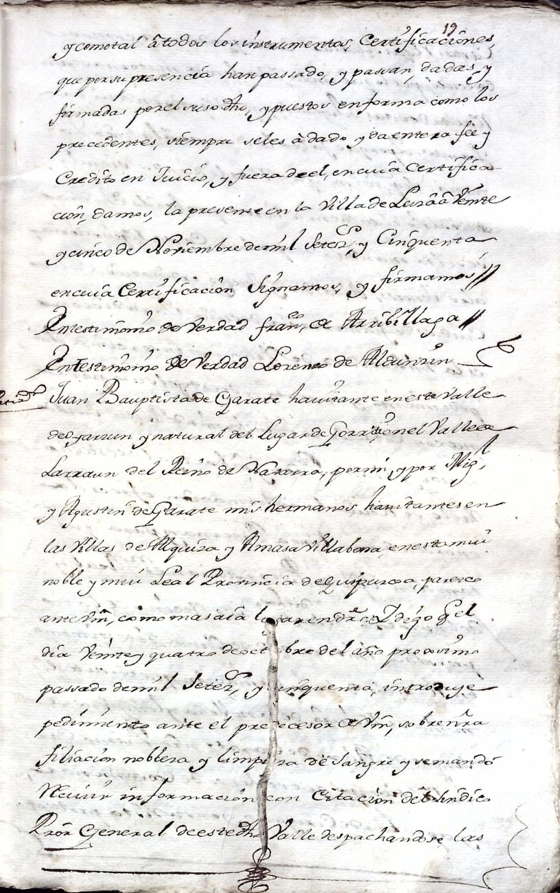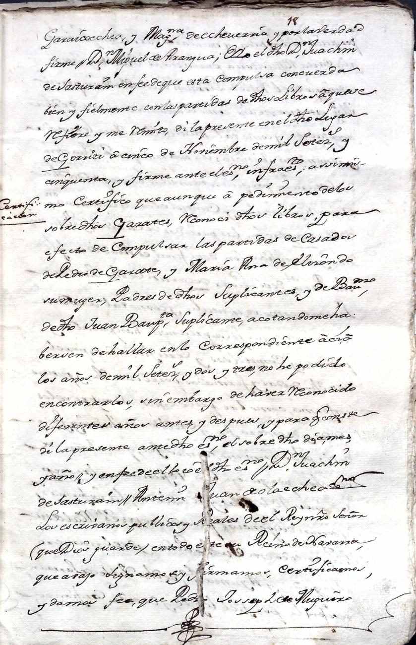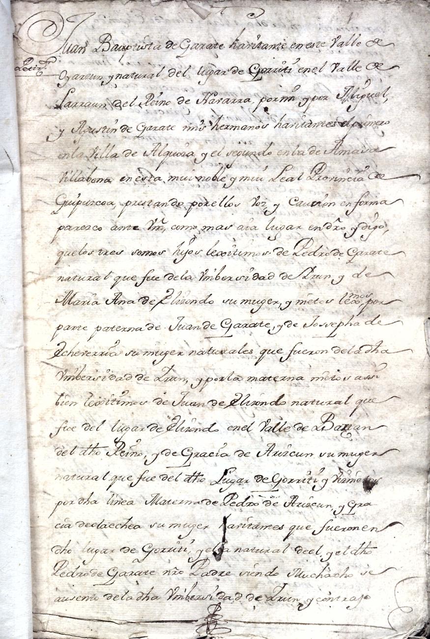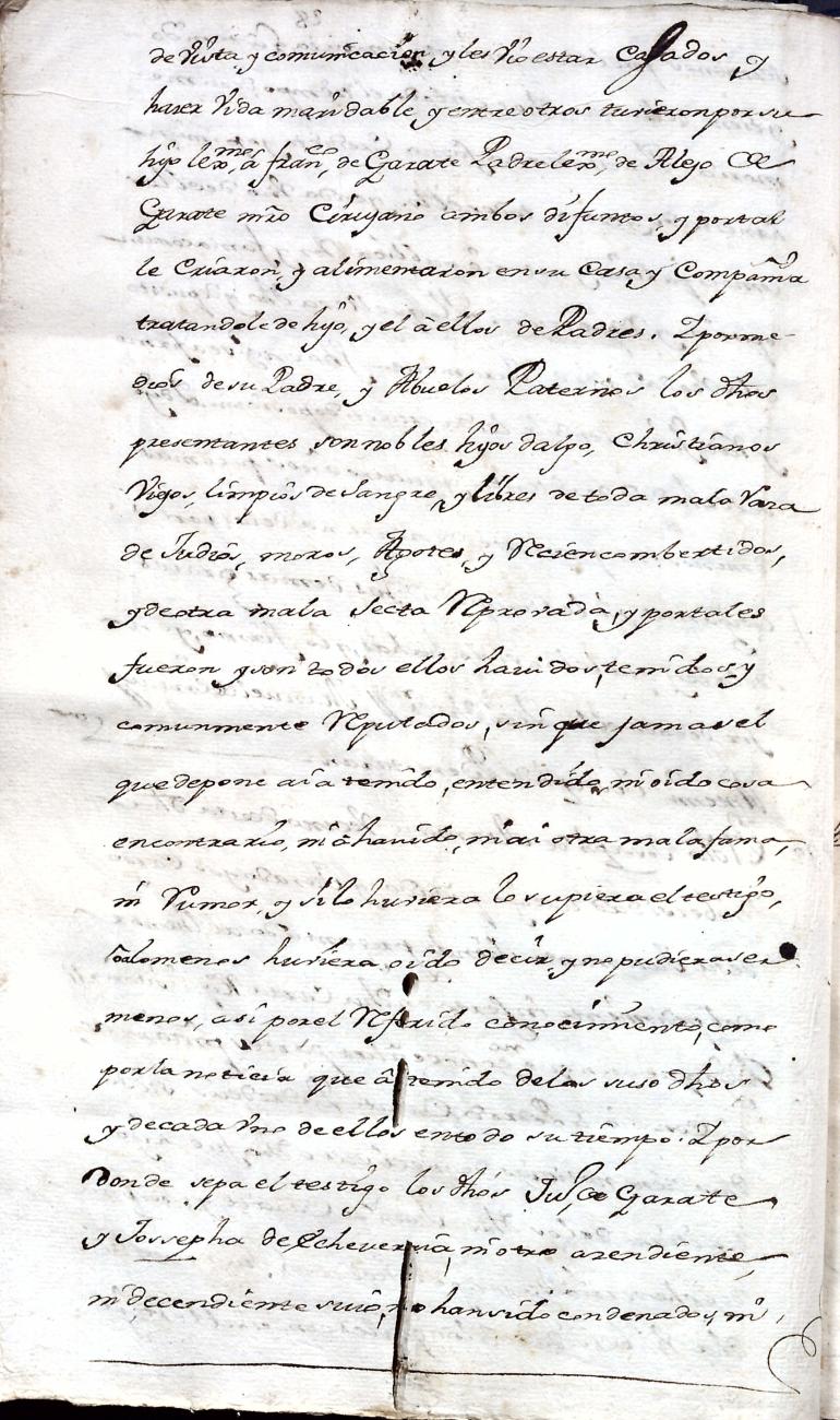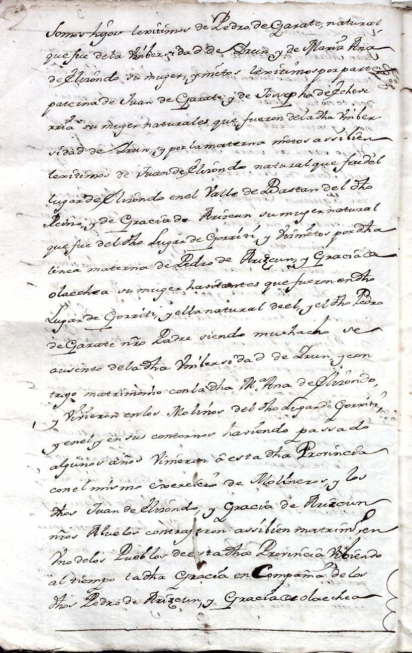 Hidalguias. Filiación de Juan Bautista de Garate y Elizondo y consortes.