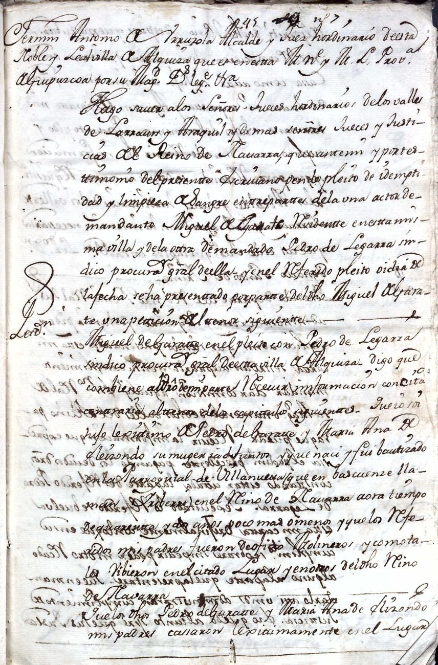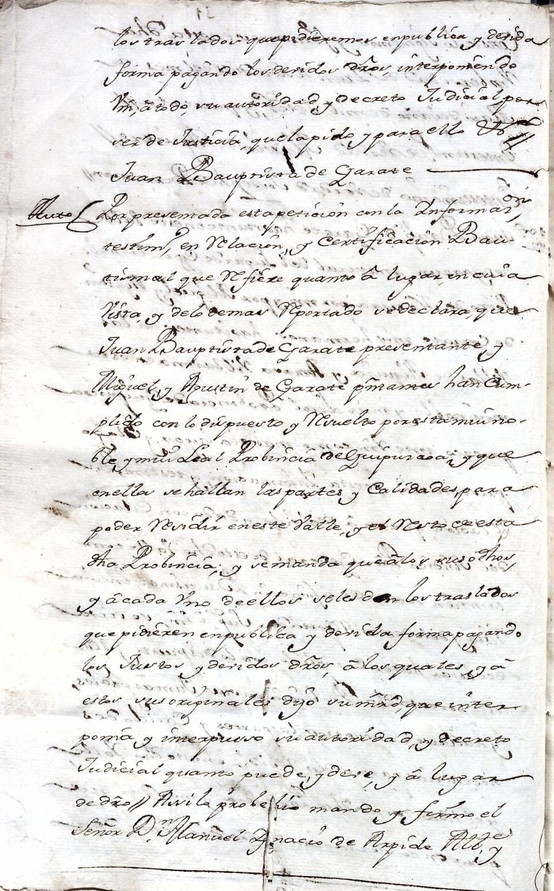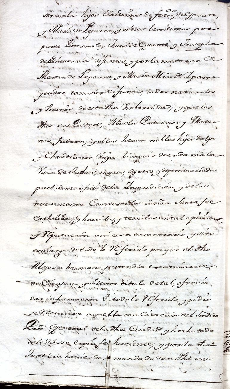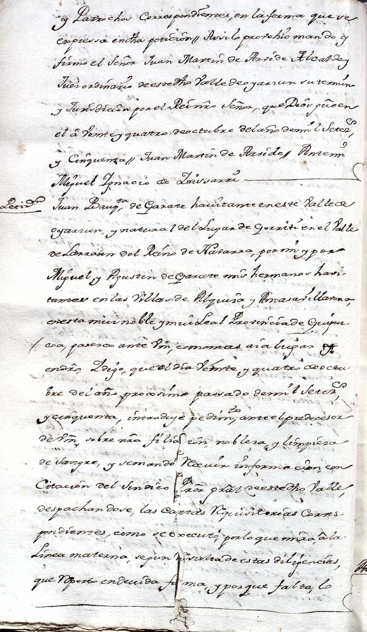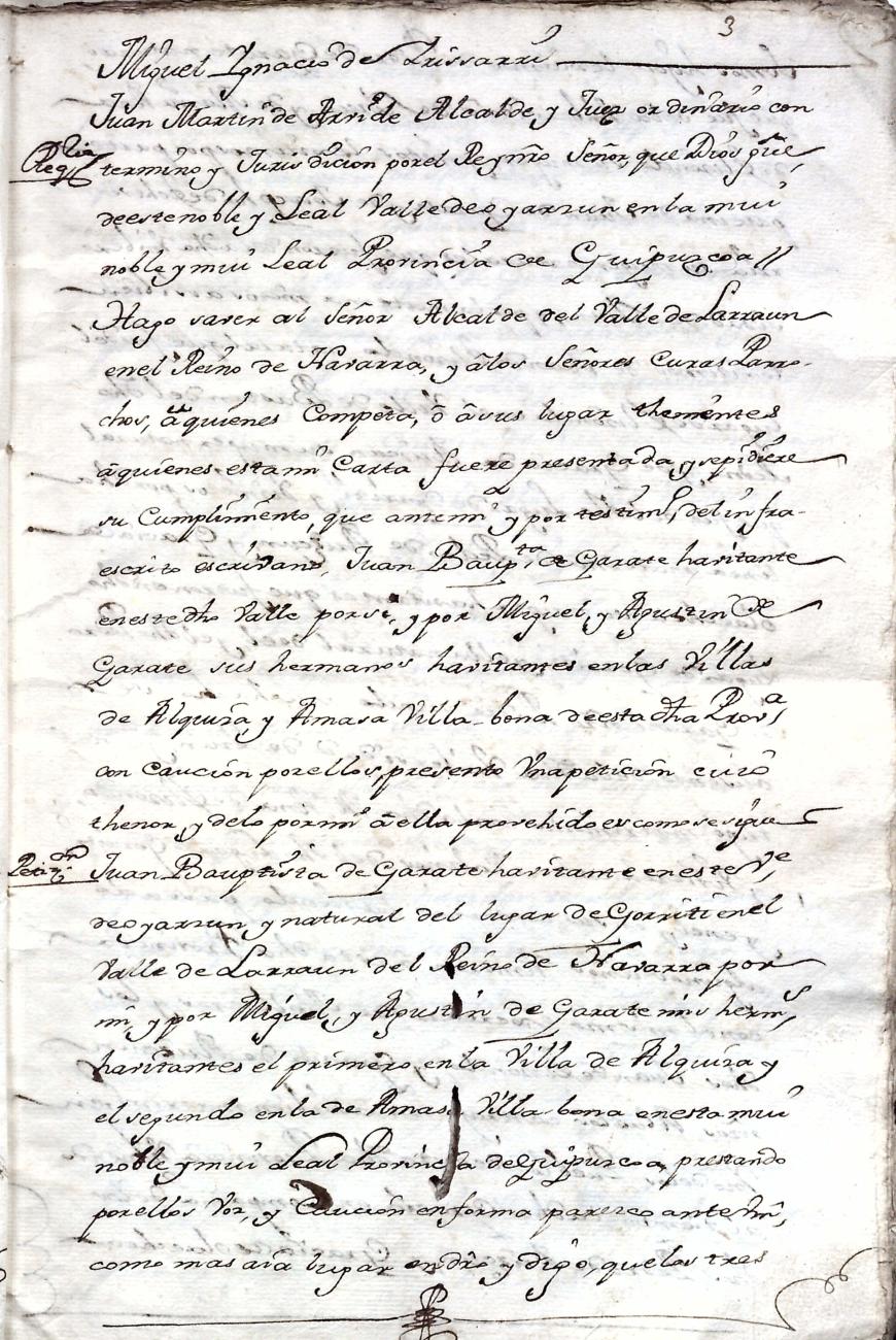 Hidalguias. Filiación de Juan Bautista de Garate y Elizondo y consortes.