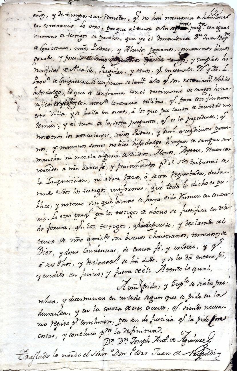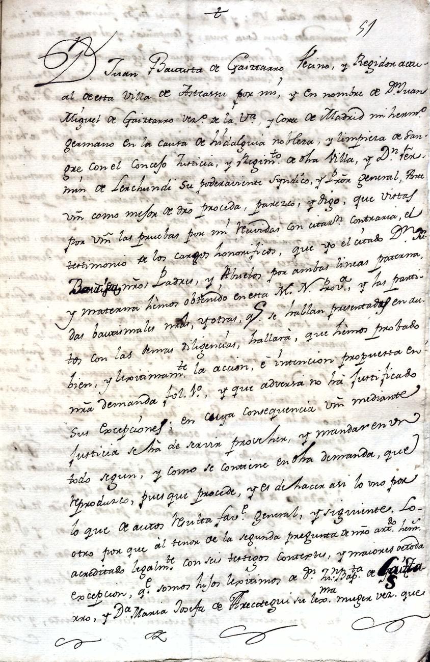 Hidalguias. Entroncamiento de Juan Bautista y Juan Miguel de Gaiztarro y Arezetegui hermanos, descendiente de la casa solar de Gaiztarro de Albistur.