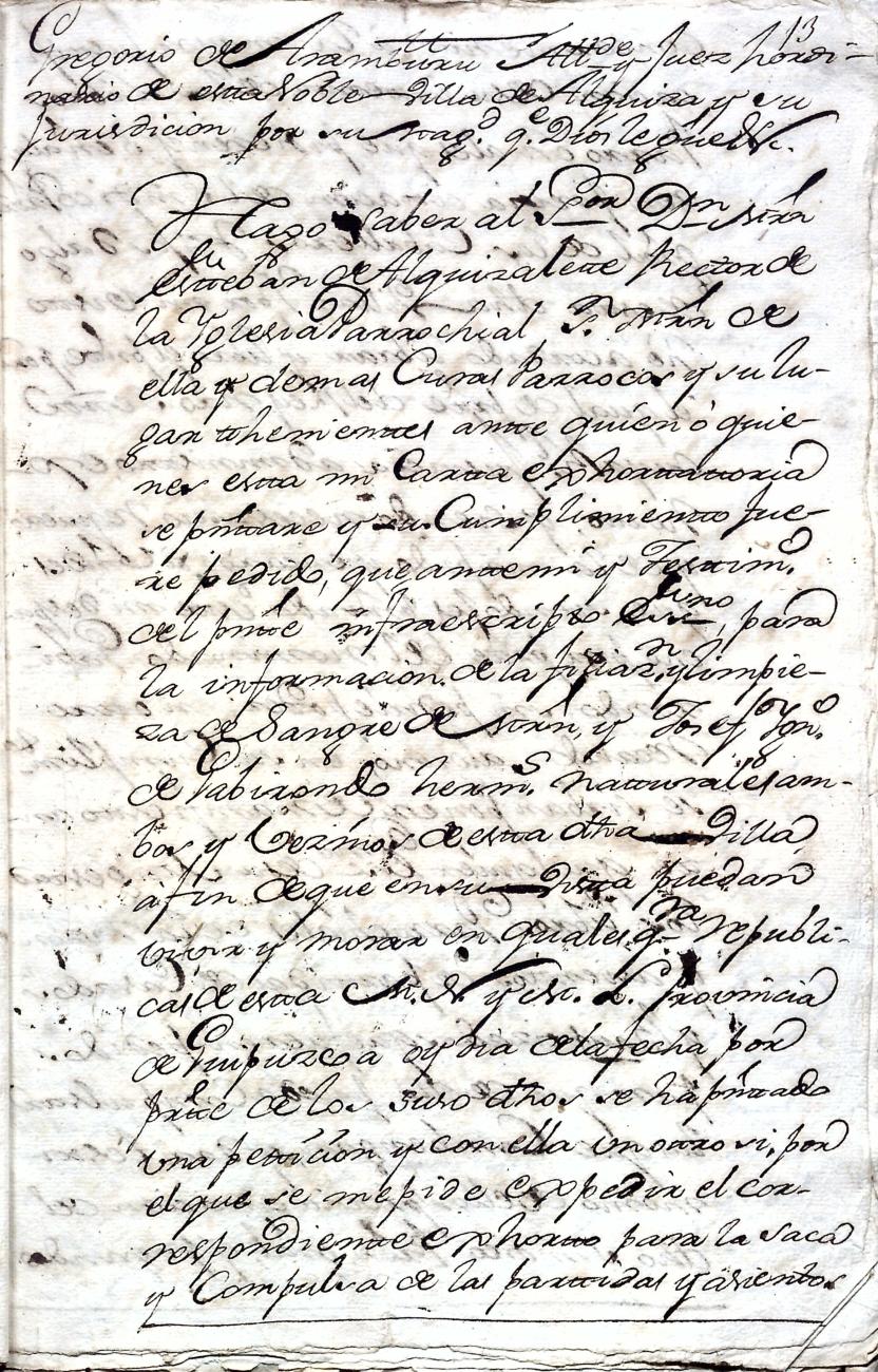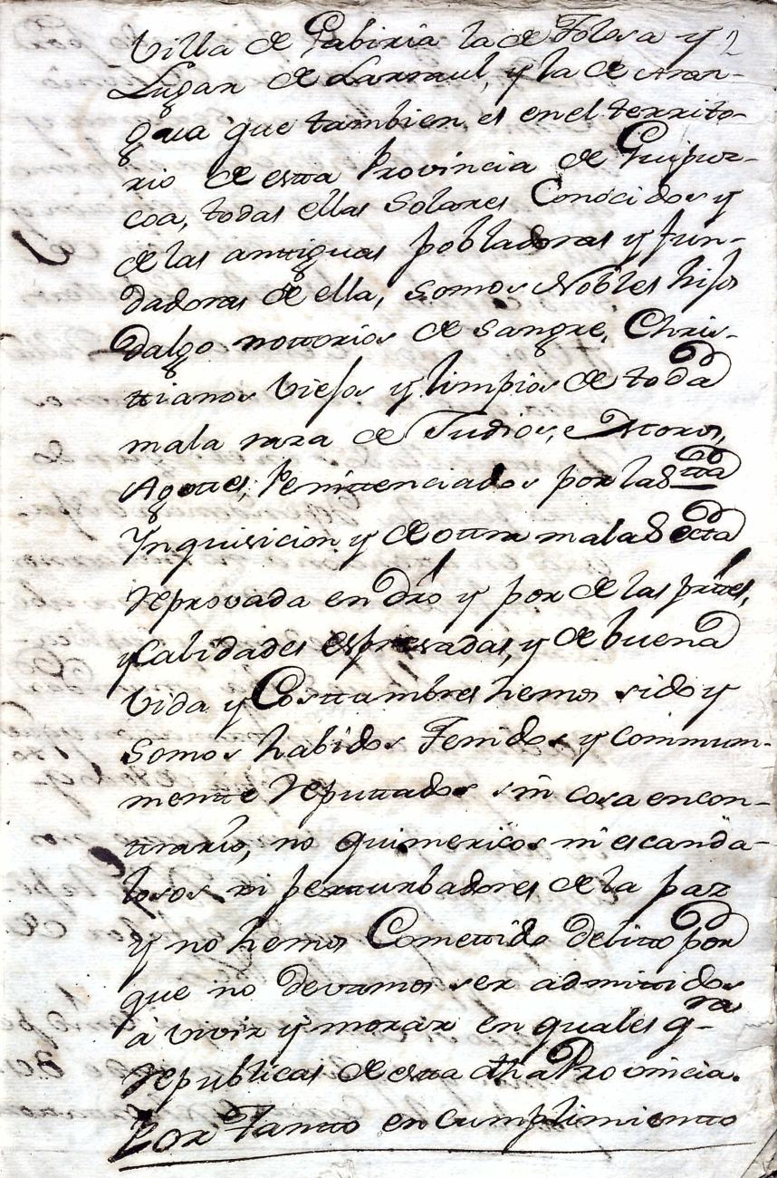 Hidalguias. Filiación de José Martín de Gabirondo y Arangua, descendiente de la casa solar de Gabirondo de Gabiria.