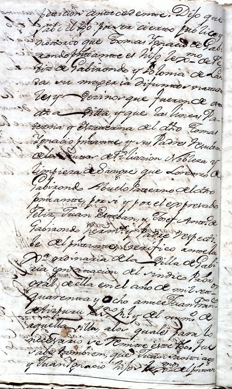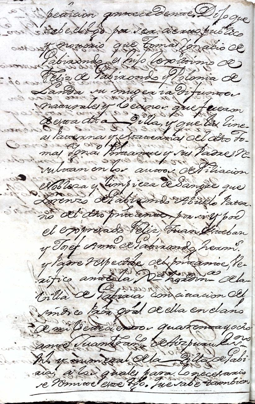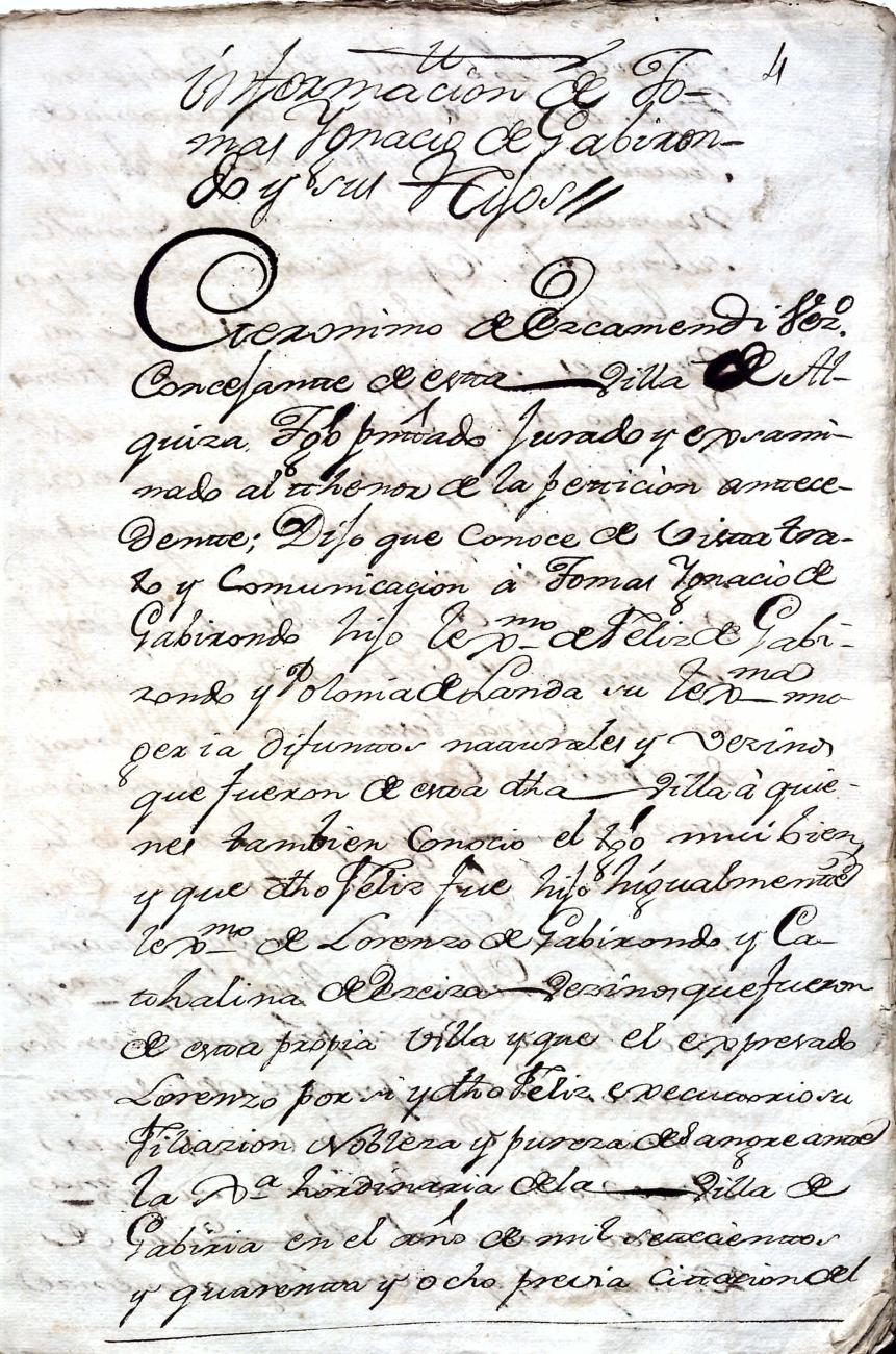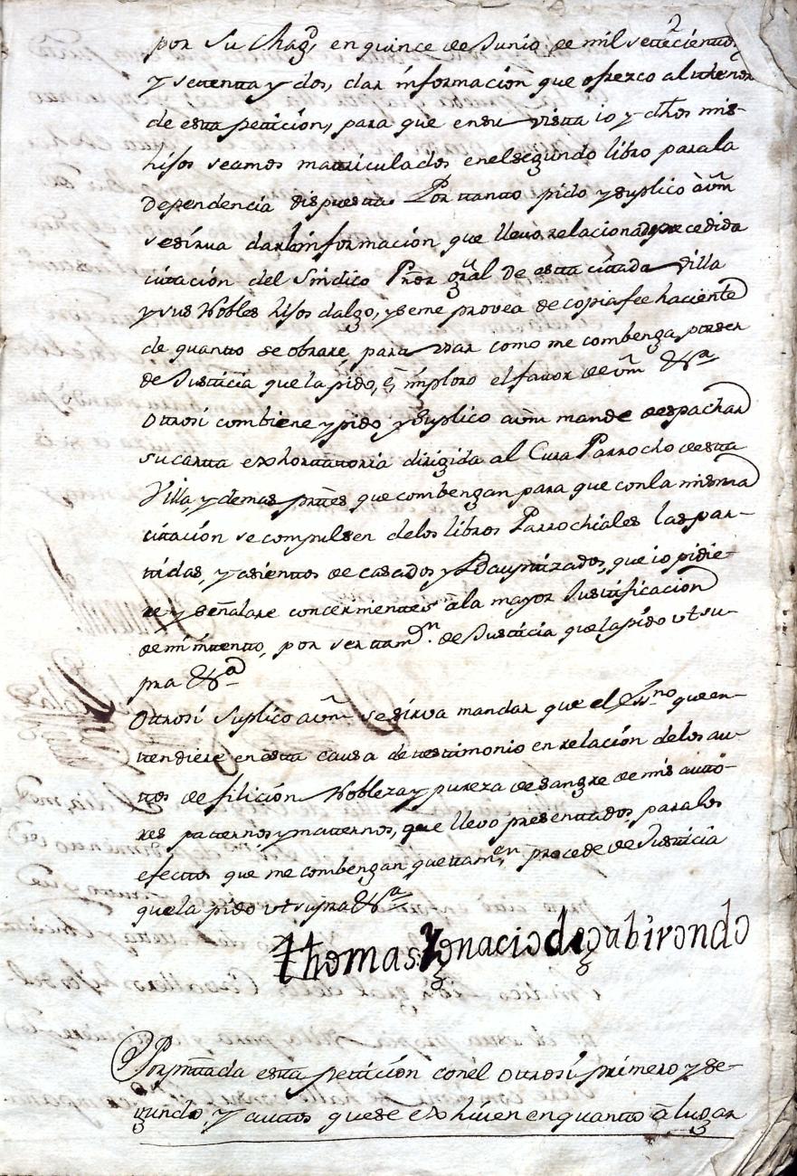 Hidalguias. Filiación de Ignacio de Gabirondo y Landa, descendiente de la casa solar de Gabirondo y Landa de Gabiria y Azpeitia respectivamente.
