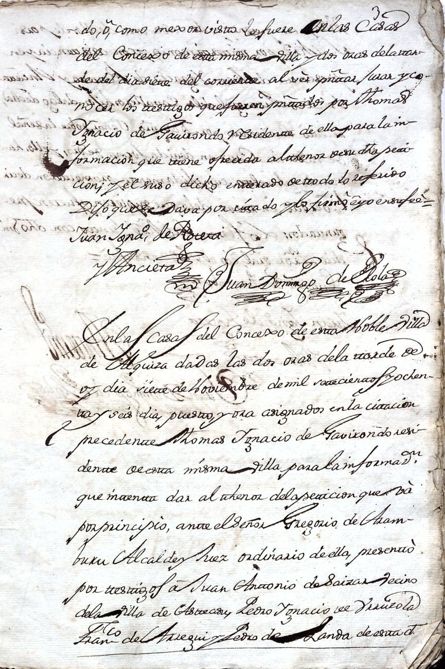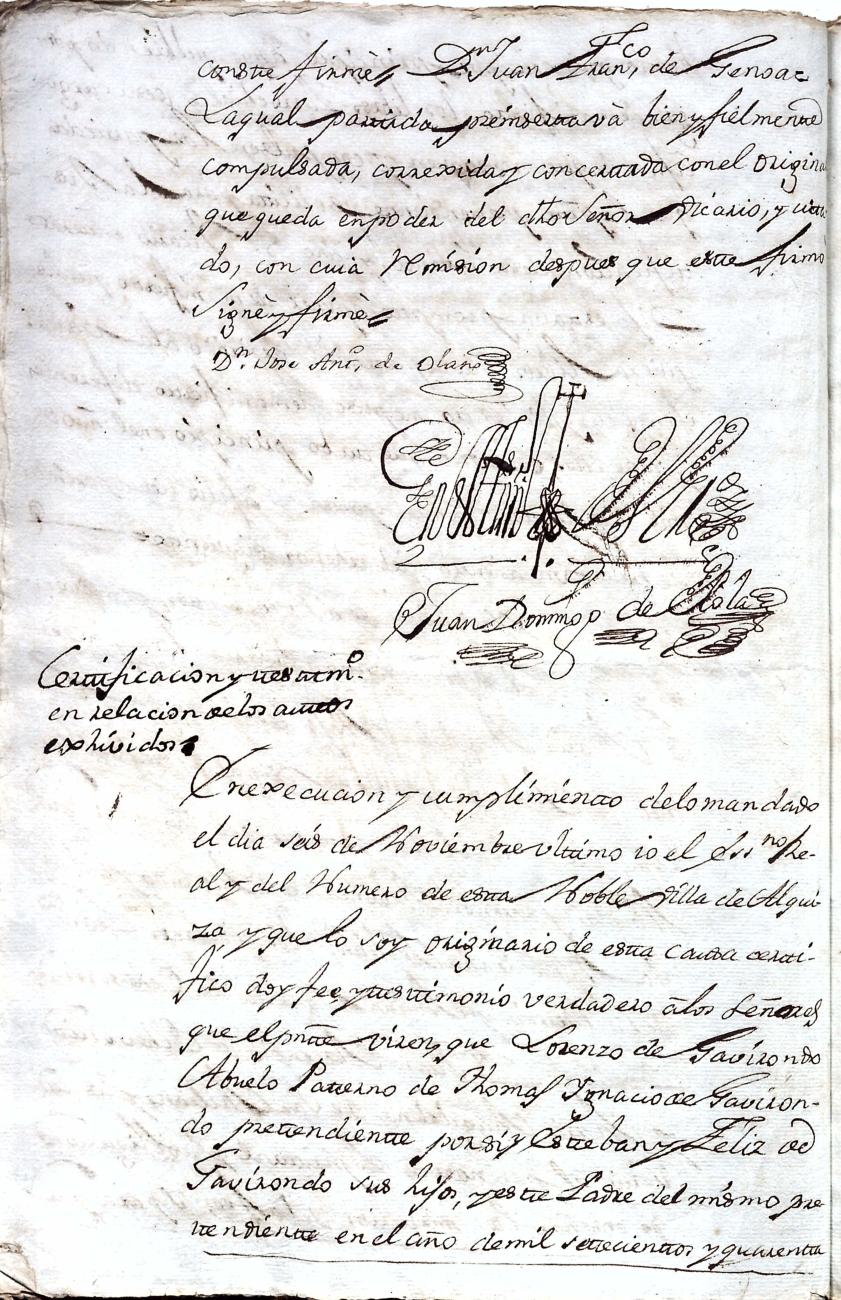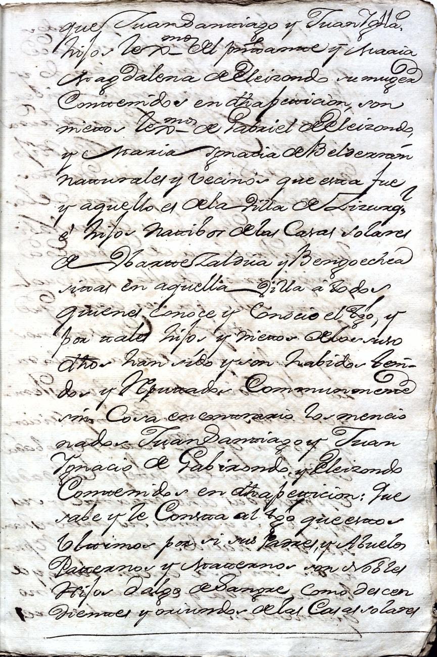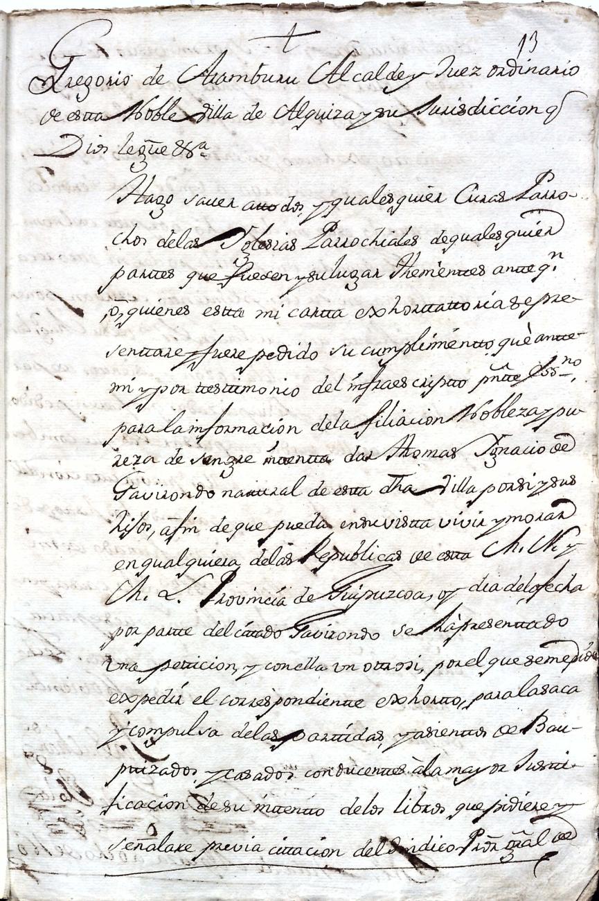 Hidalguias. Filiación de Ignacio de Gabirondo y Landa, descendiente de la casa solar de Gabirondo y Landa de Gabiria y Azpeitia respectivamente.