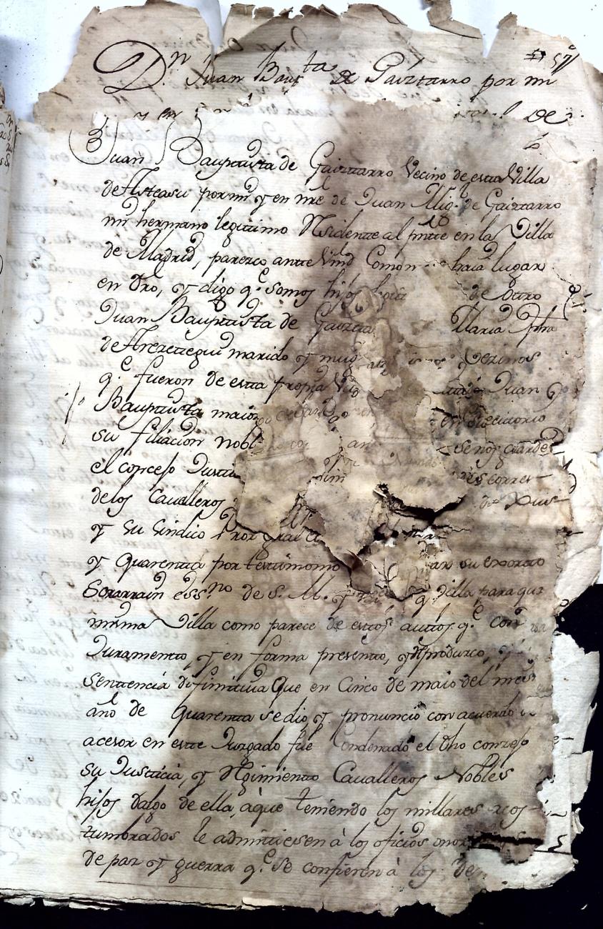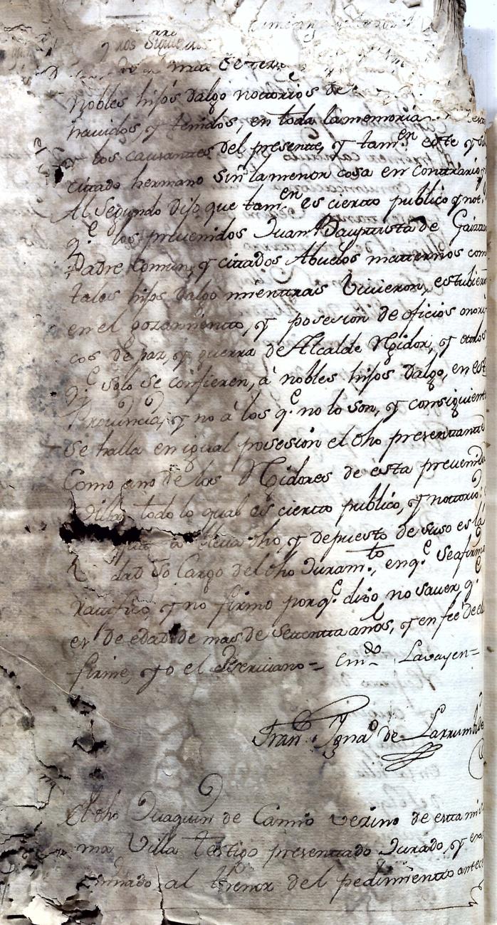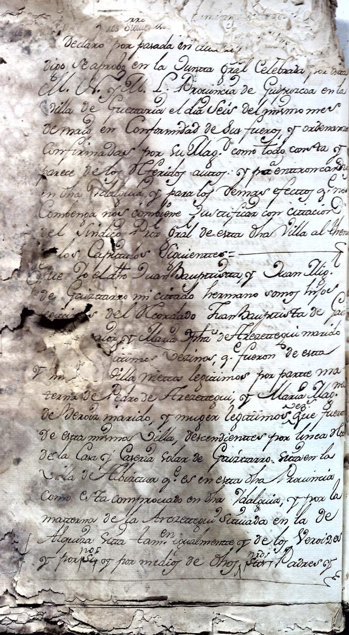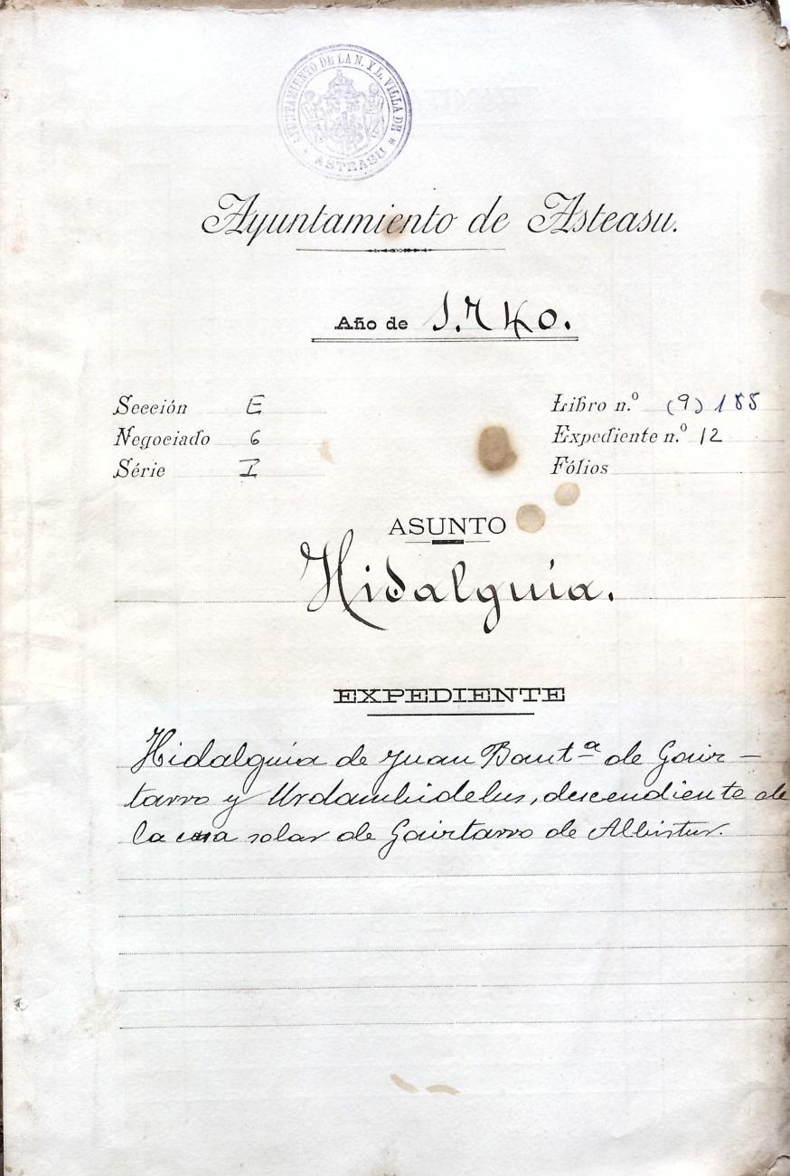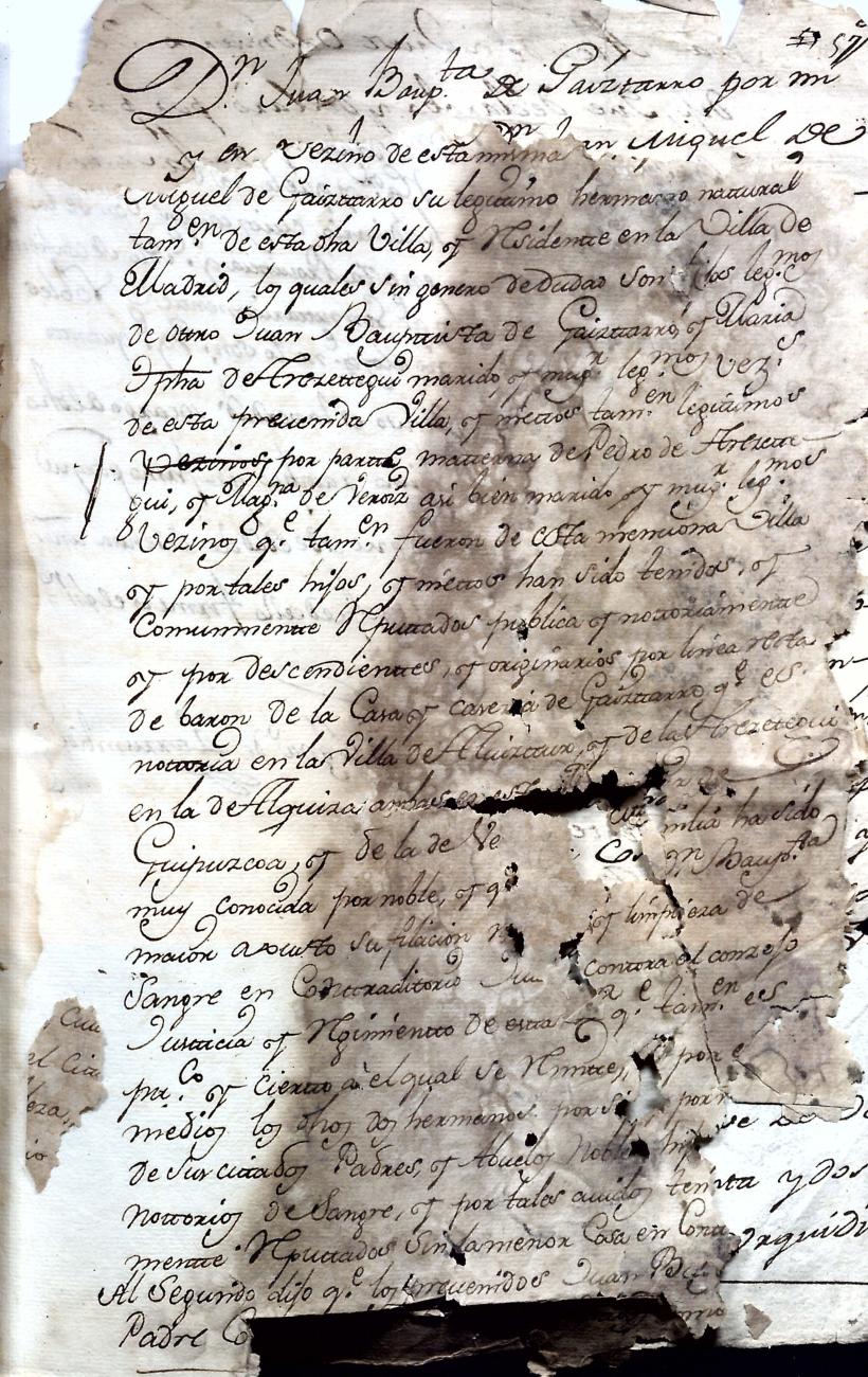 Hidalguias. Hidalguía de Juan Bautista de Gaiztarro y Urdambidelus, descendiente de la casa solar de Gaiztarro y Albistur.