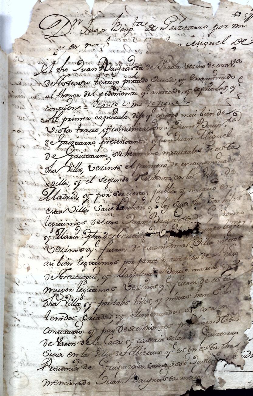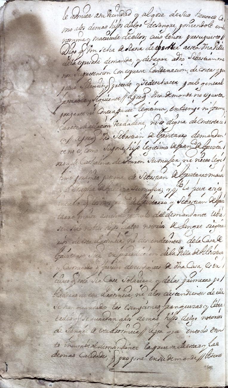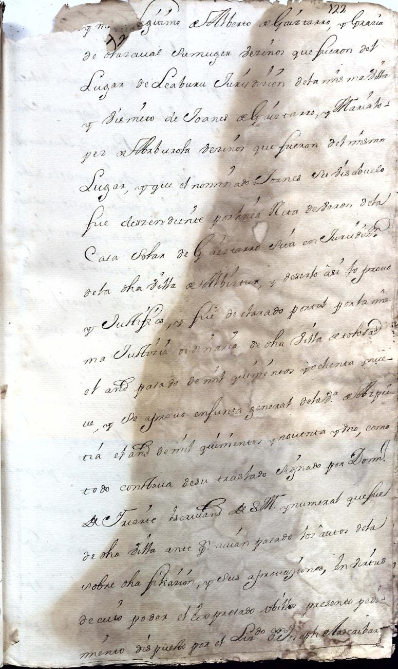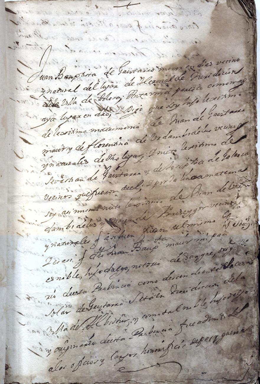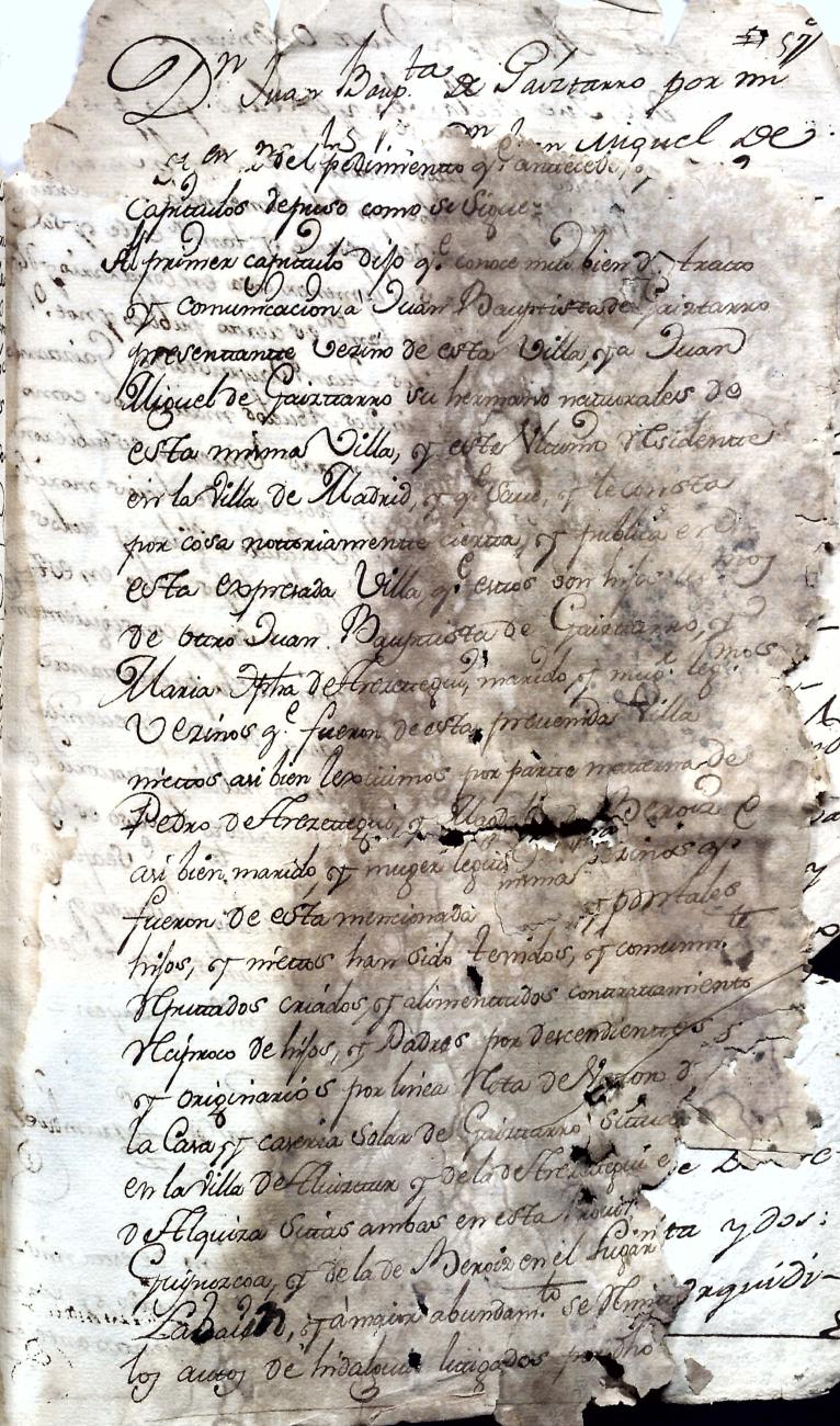 Hidalguias. Hidalguía de Juan Bautista de Gaiztarro y Urdambidelus, descendiente de la casa solar de Gaiztarro y Albistur.
