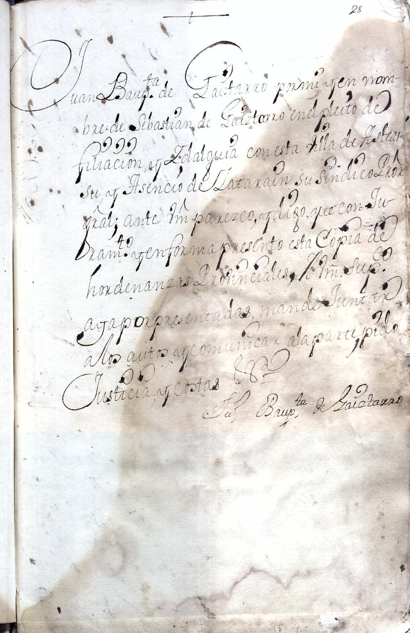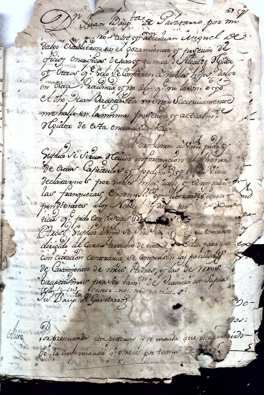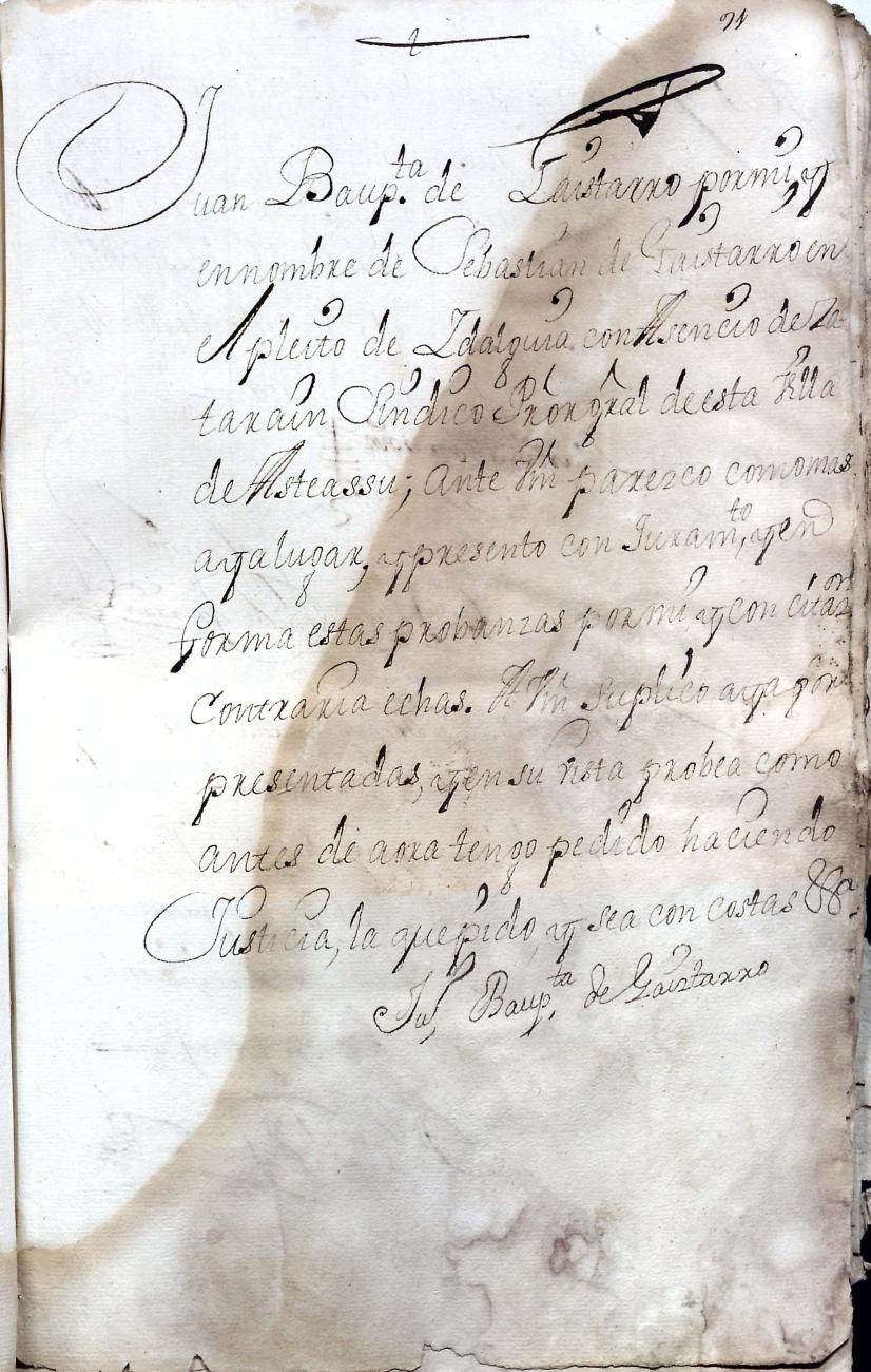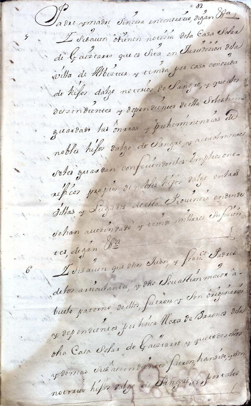 Hidalguias. Hidalguía de Juan Bautista de Gaiztarro y Urdambidelus, descendiente de la casa solar de Gaiztarro y Albistur.