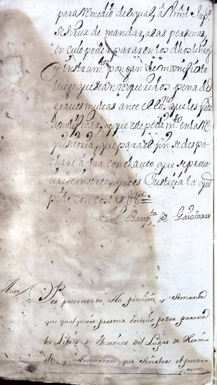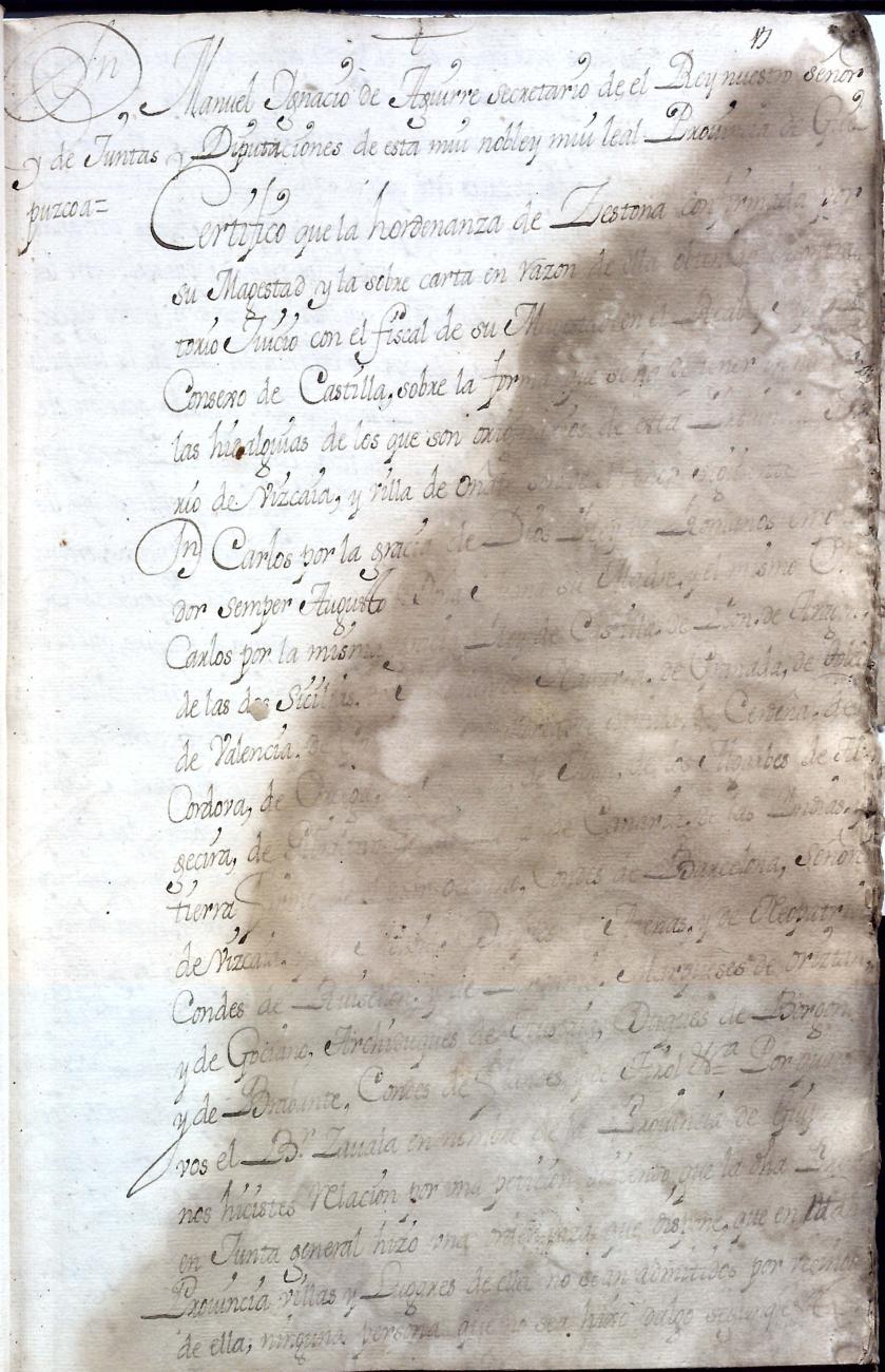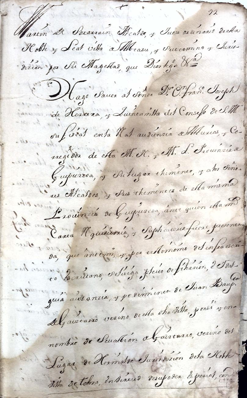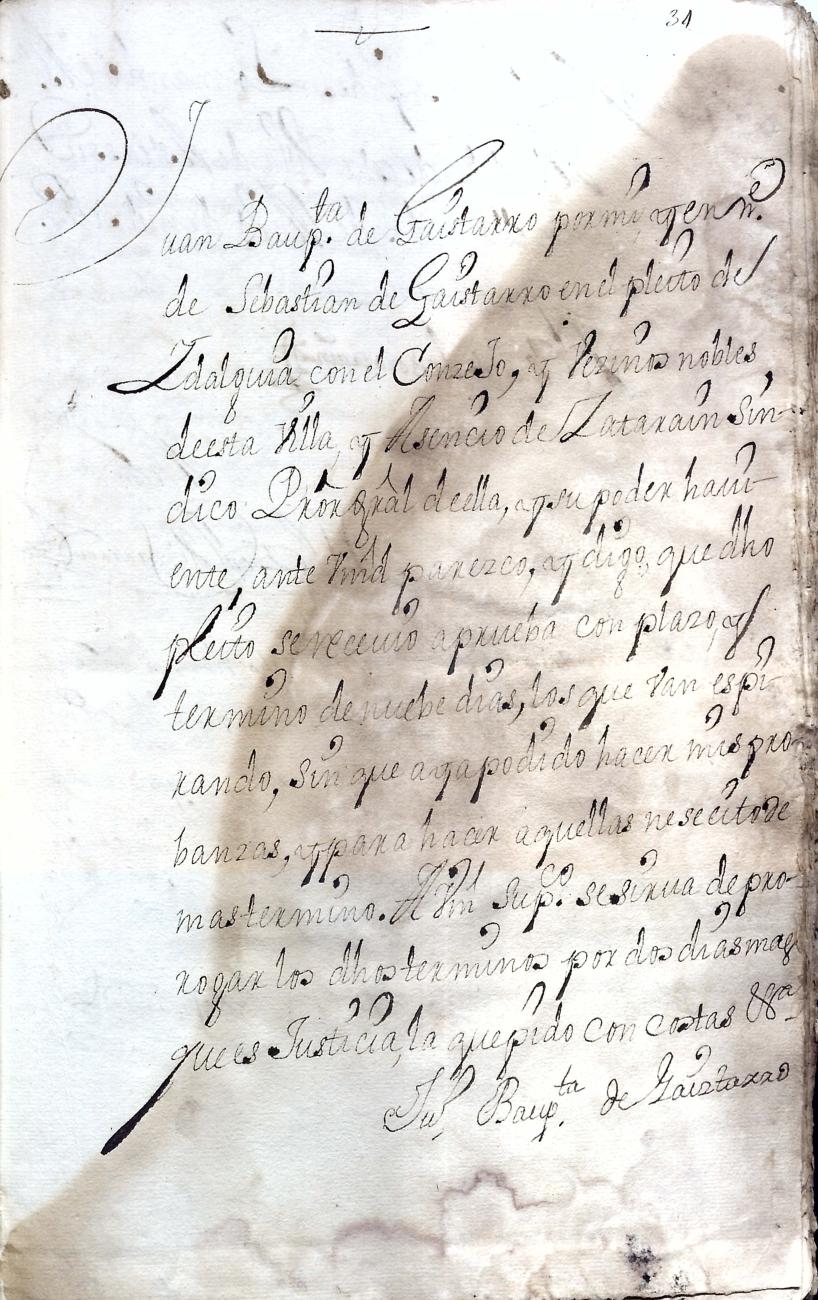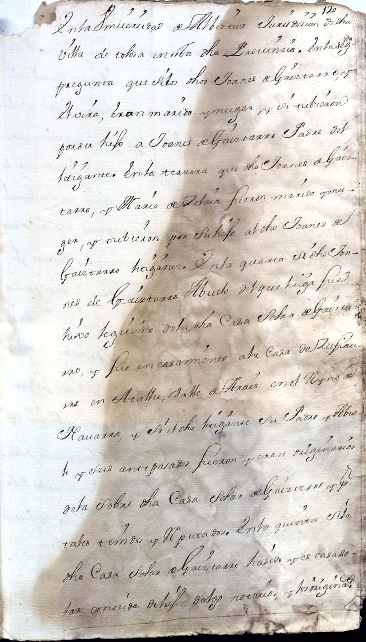 Hidalguias. Hidalguía de Juan Bautista de Gaiztarro y Urdambidelus, descendiente de la casa solar de Gaiztarro y Albistur.
